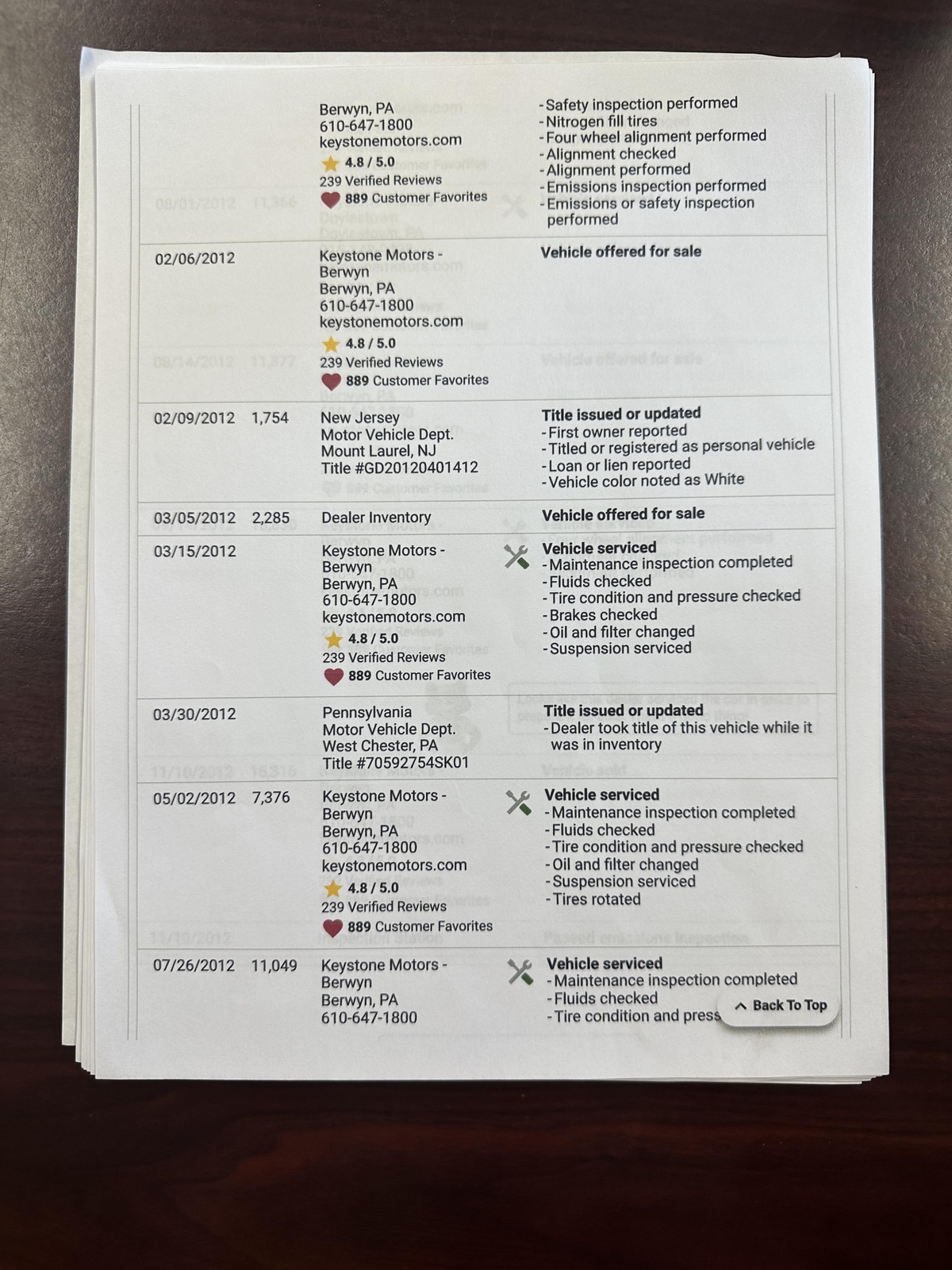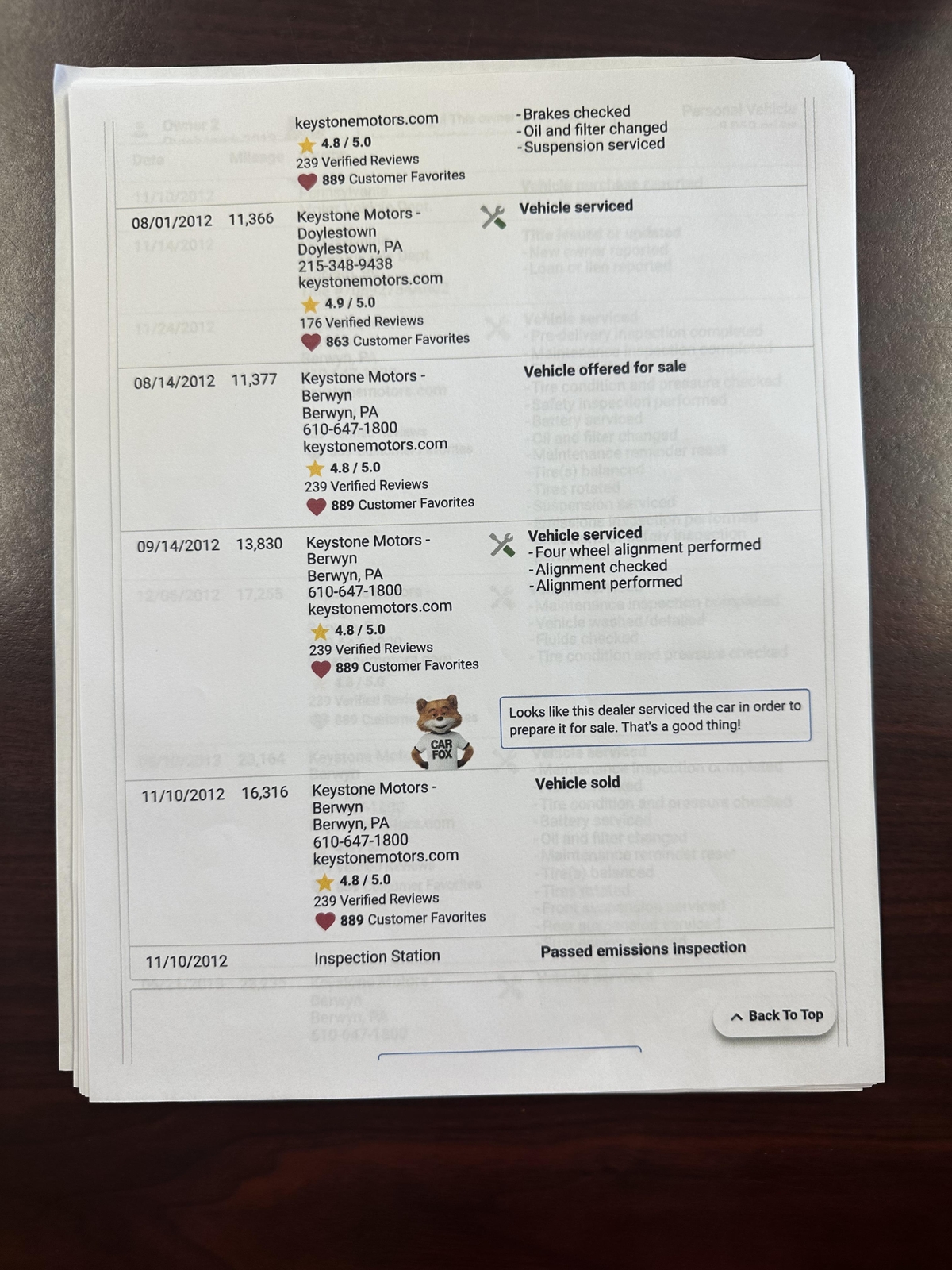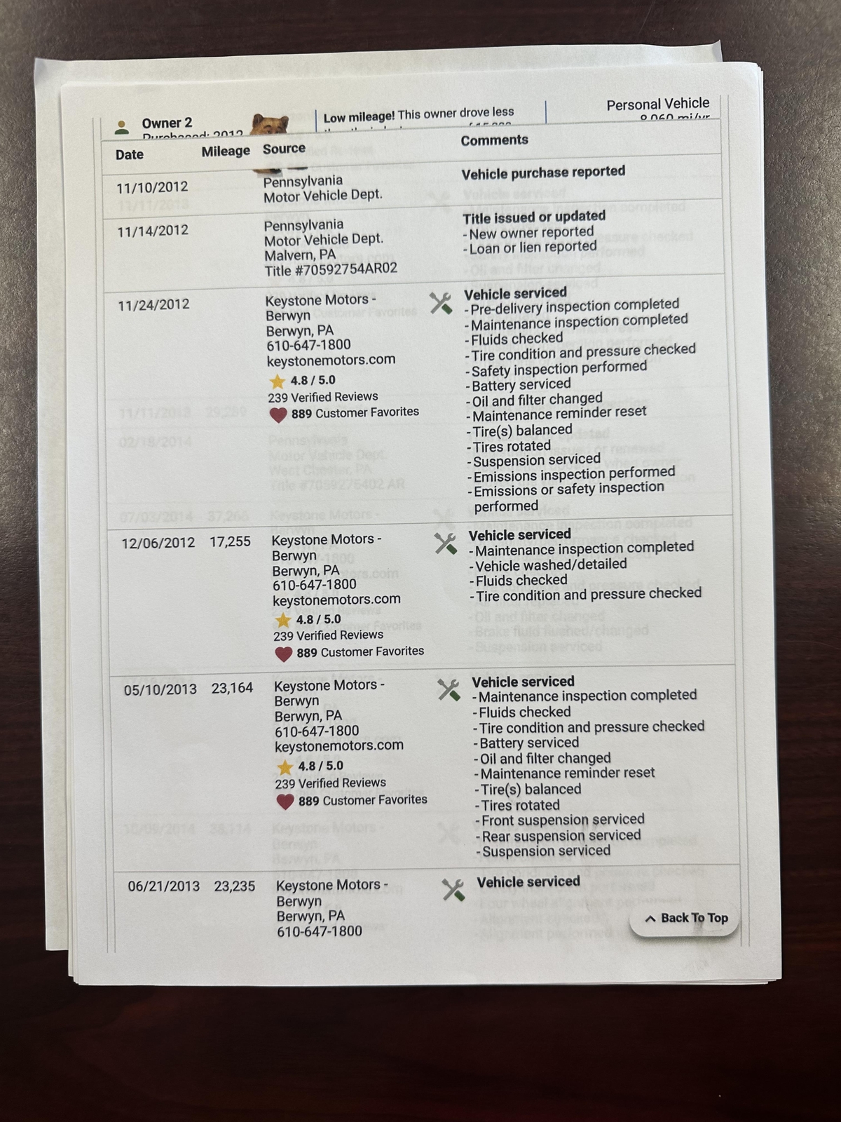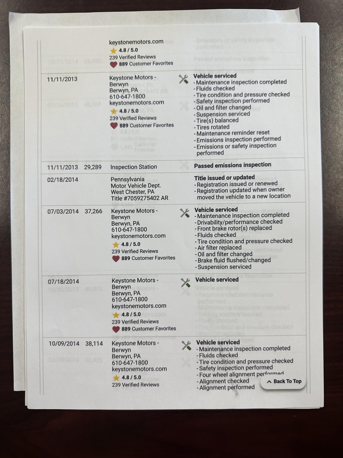 VEHICLE WITH HIGH MILES. WE RECOMMEND