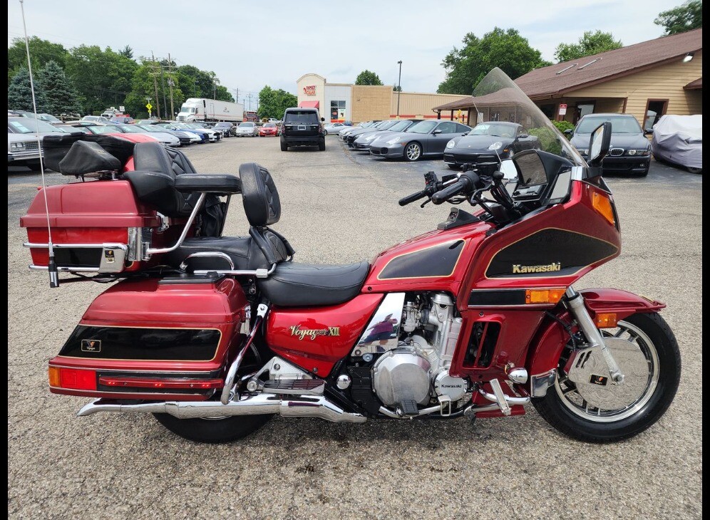 JUST FULLY SERVICED INCLUDING NEW TIRE! Super clean condition garage kept Kawasaki Voyager VII 1200 Touring bike. Runs and rides amazing with a smooth running engine and smooth shifting transmission. Adjustable air suspension front and rear. AM/FM radio with front and rear speakers works great (screen is dark and can't really be read). Driver backrest, Passenger arm rests, luggage bag, rear speaker covers, Chrome rotor covers, Trailer hitch, Highway pegs, and more. You really must see this bike to believe just how clean it is especially for the year and mileage. A super clean retro touring bike at a great price point! In stock and ready to ride home TODAY!!