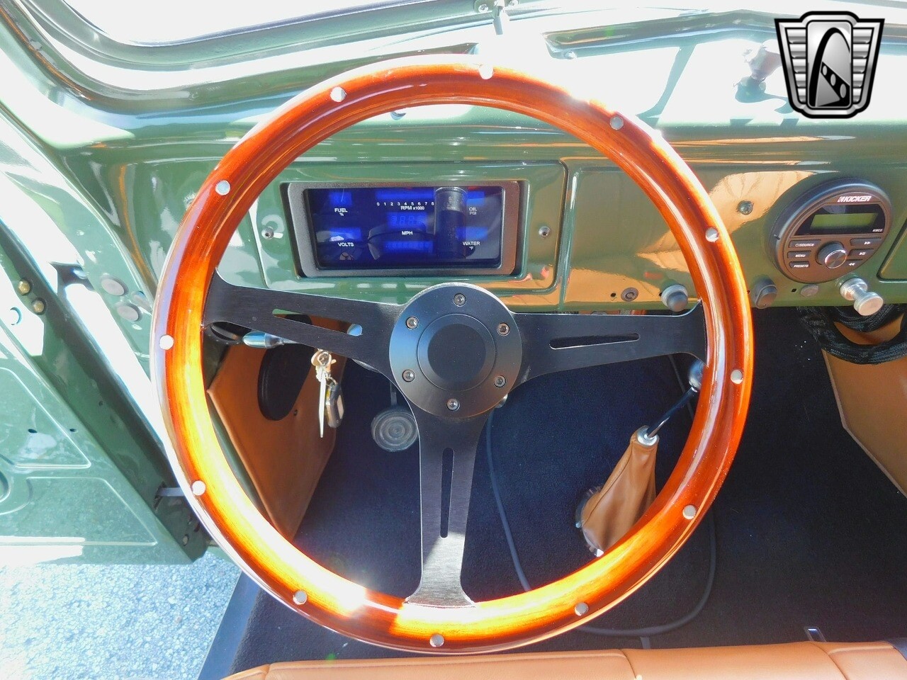In summary, the 1946 International KB-1 Restomod is a unique blend of classic design and modern functionality. With its eye-catching green exterior, luxurious brown leather interior, and a host of convenient features, it offers a driving experience like no other. [ omitted ].