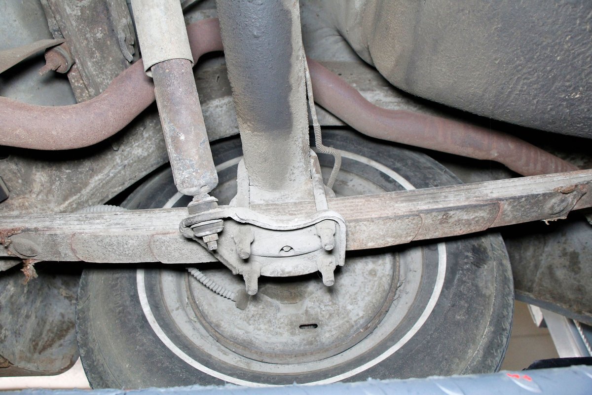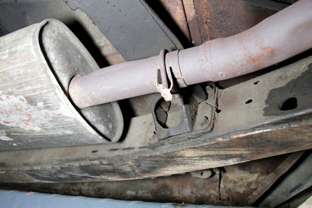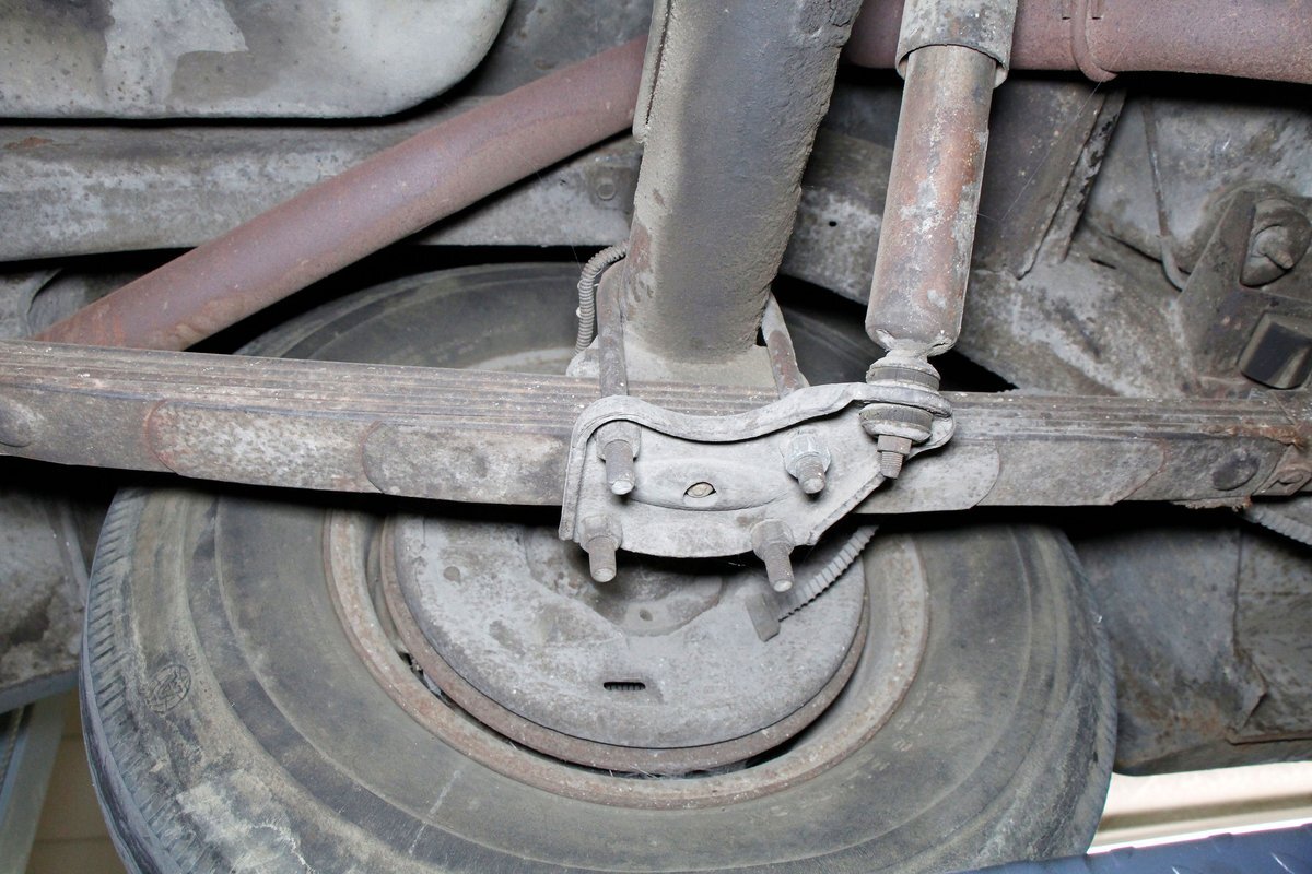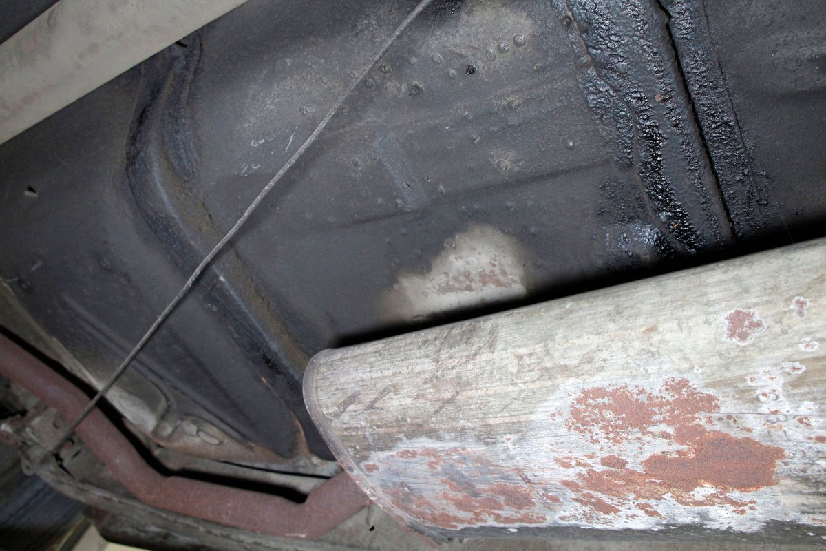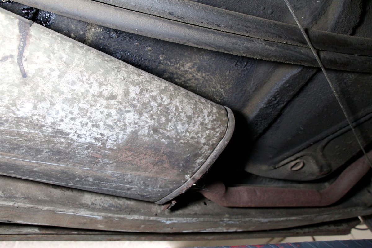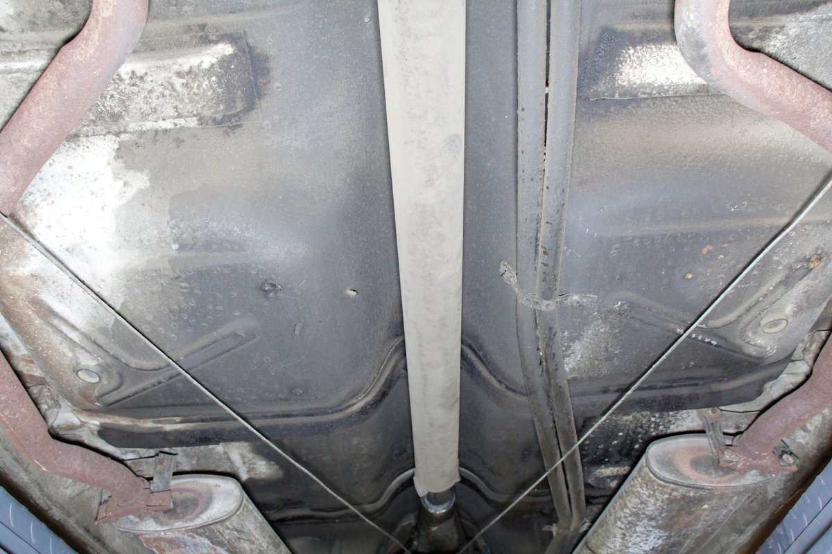 Underneath looks quite good with some surface rust, a solid frame, as well as floor pans. Some rot on the inner rockers can be noted throughout the sides where they greet the frame. This car sports power drum braking all around as well as independent coil sprung front suspension and rear leaf springs. We note an electric fuel pump has been added to ensure reliable fuel delivery