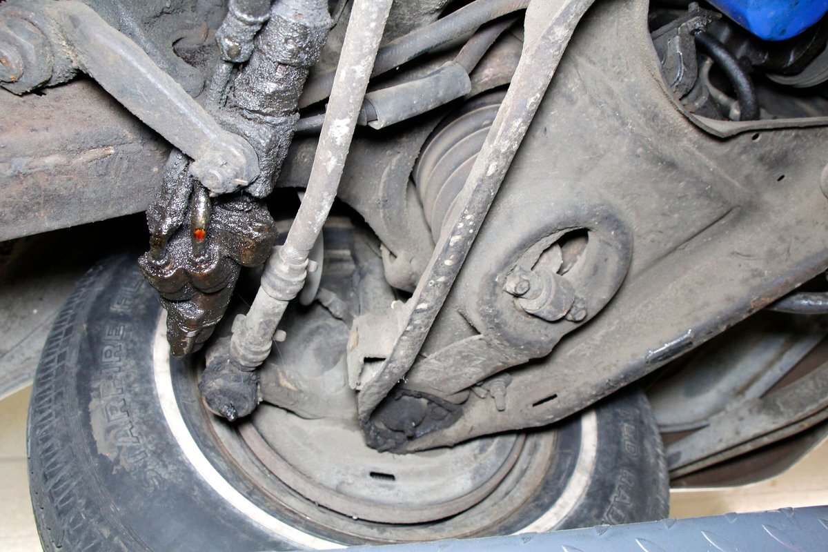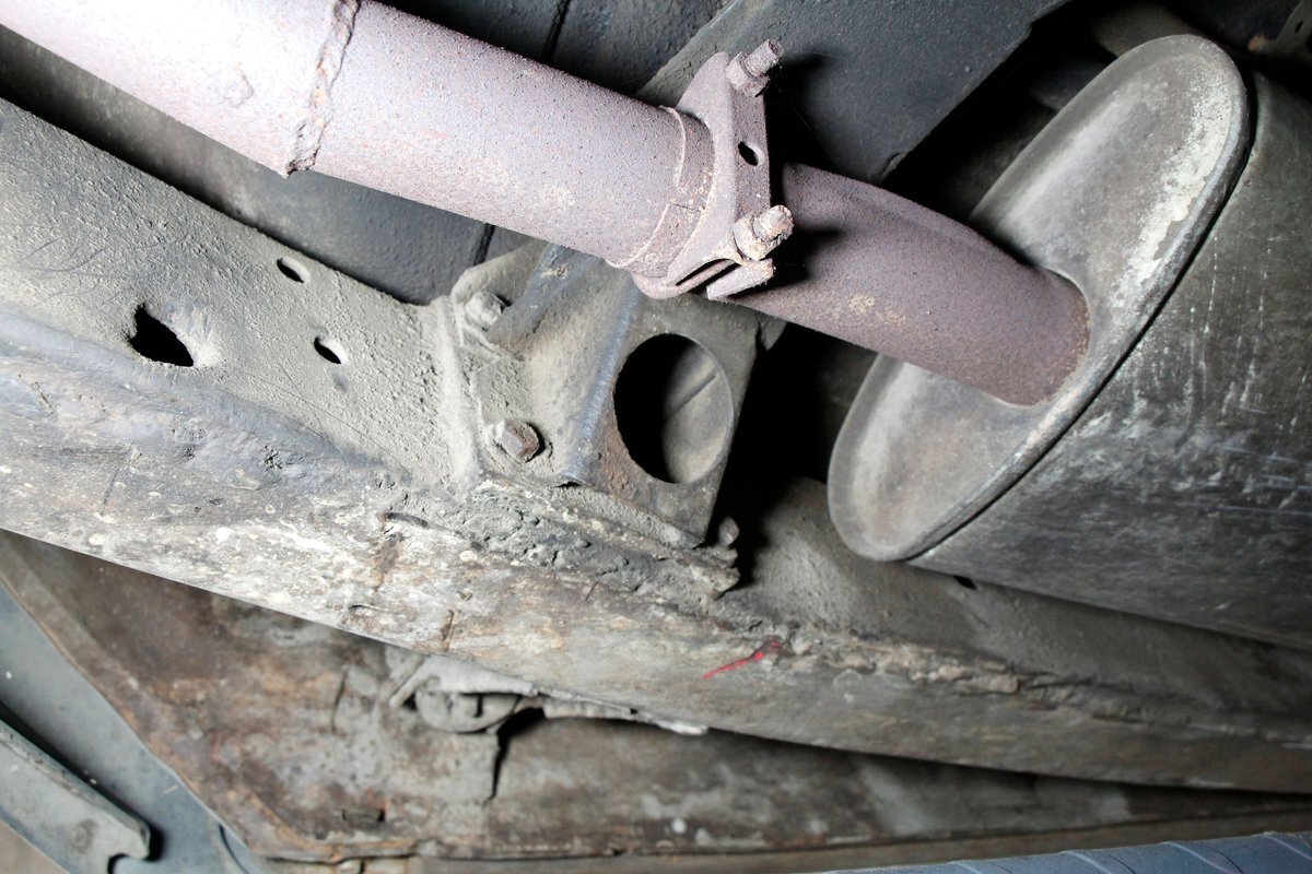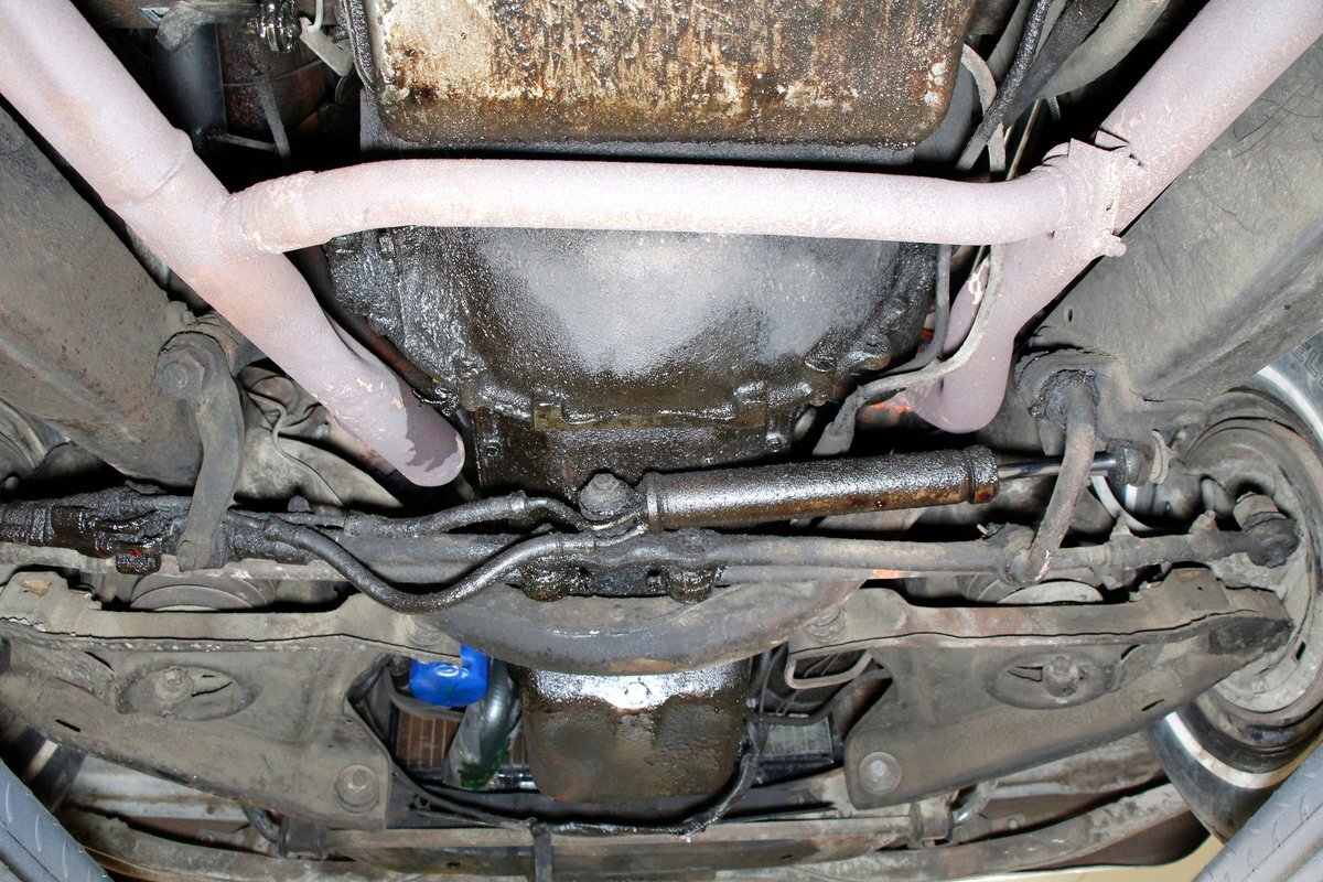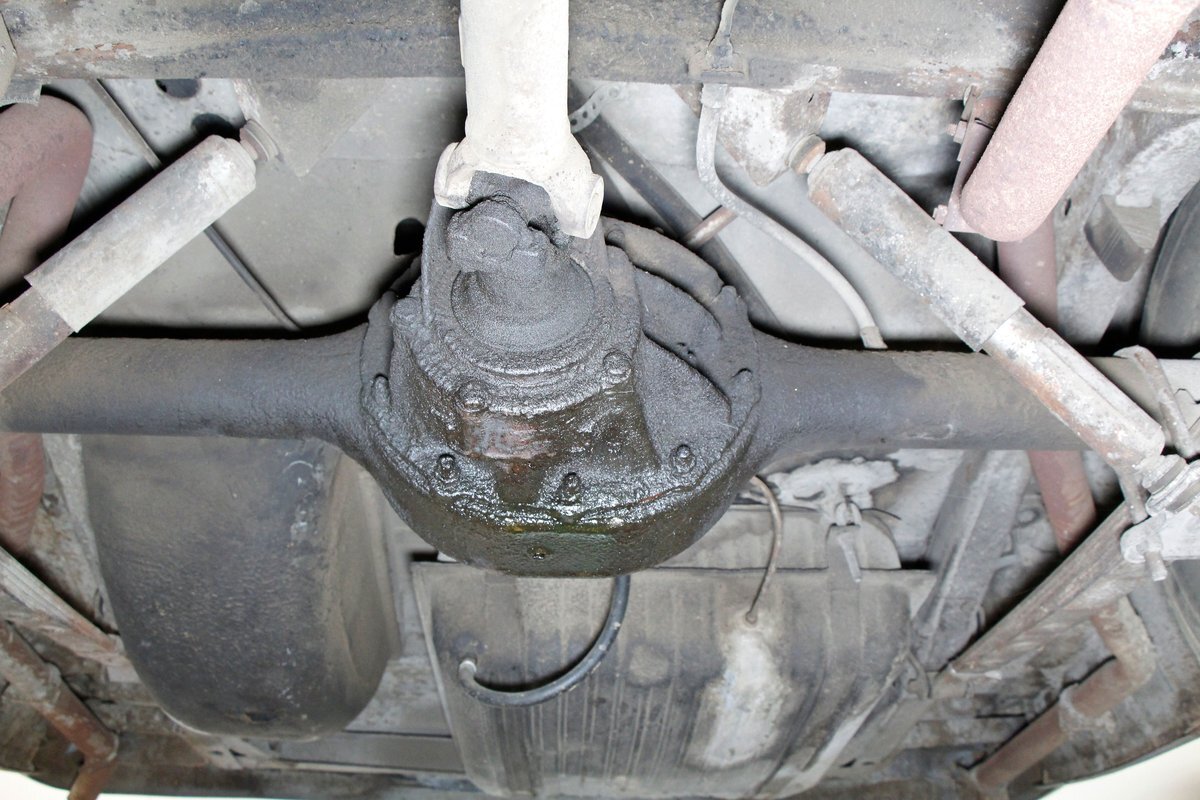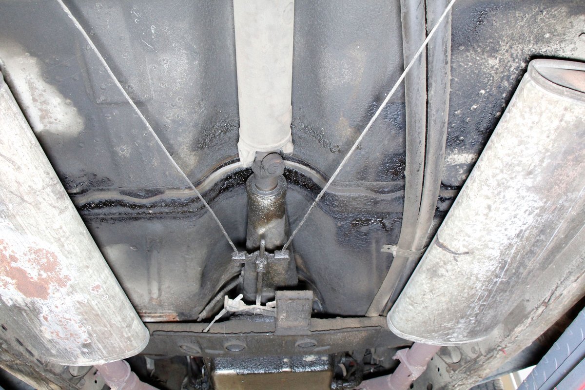 Underneath looks quite good with some surface rust, a solid frame, as well as floor pans. Some rot on the inner rockers can be noted throughout the sides where they greet the frame. This car sports power drum braking all around as well as independent coil sprung front suspension and rear leaf springs. We note an electric fuel pump has been added to ensure reliable fuel delivery
