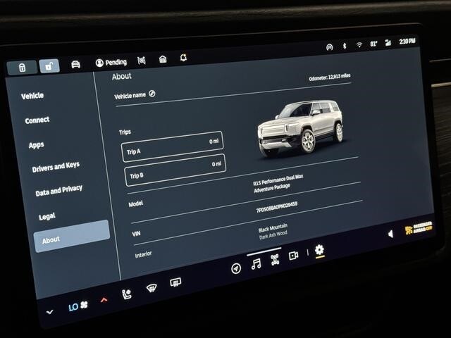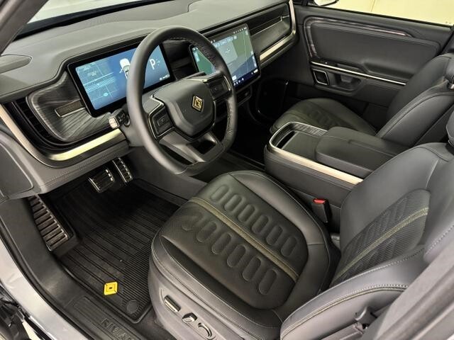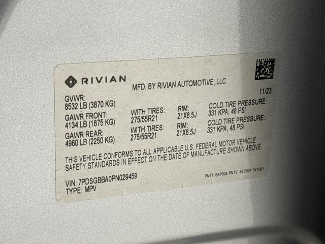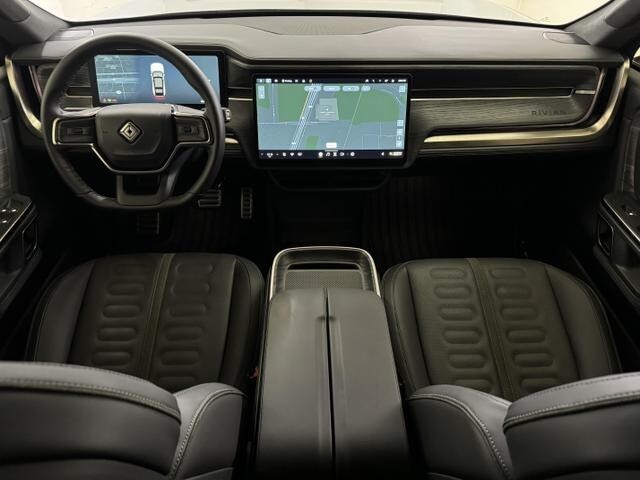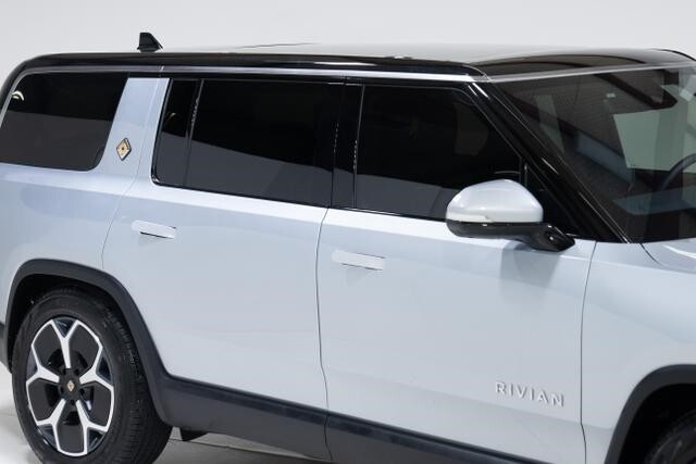 Have a look at this One Owner Owner, Low Miles, Extra Clean, Adult Owned, Accident Free, & Non Smoker 2023 Rivian R1S Performance Dual Max Adventure AWD SUV with LA Silver Exterior Paint over Black Mountain Interior Upholstery.