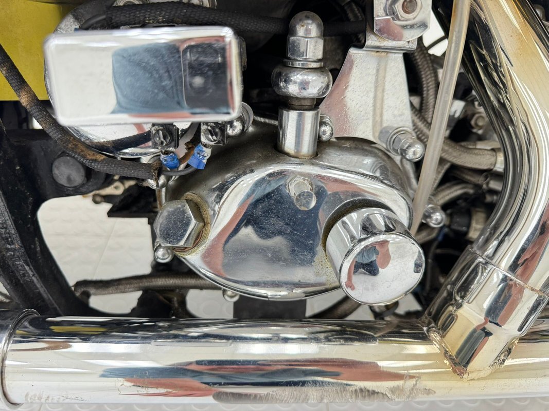 A 1200cc V-twin rated at 57.5 horsepower sits between your knees and is fed by a 1-barrel carburetor and moves via a 4-speed manual transmission, chain driven to the rear wheel. The bike has dual exhaust which flows straight back via chrome pipes.