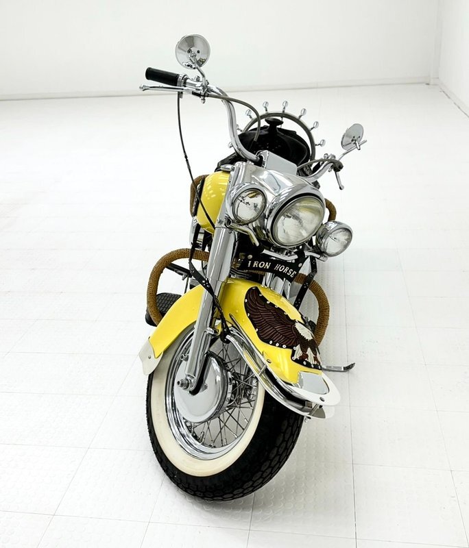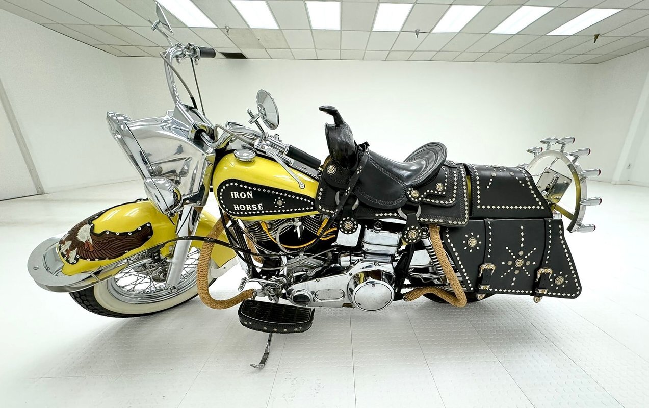 For consignment, a 1971 Harley Davidson show bike built by famed vintage bike builder, William Eggers. Our consignor tells us this bike has been featured at one time or another in every motorcycle magazine in the country. And for good reason, not only does the bike have custom leatherwork to the extent rarely seen, but it has extra lights and other features that make it a standout. Named "The Iron Horse" this bike deserves to be shown, ridden in parades, and maybe even residing in a museum!