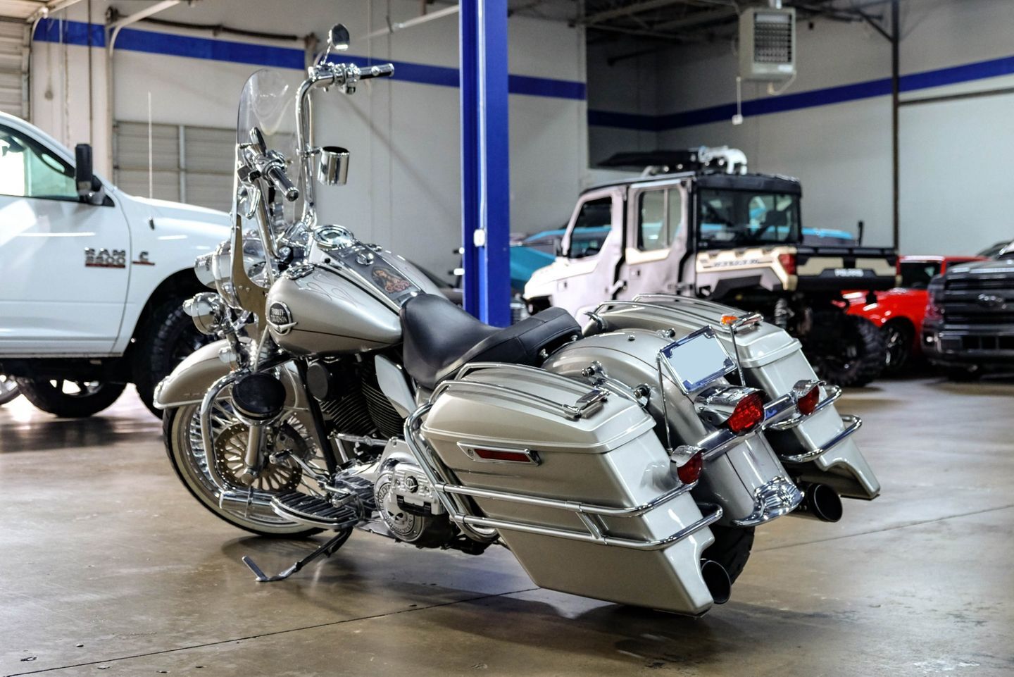 This motorcycle is not just about looks and power. It's also about the experience. The Road King is designed for those who love the thrill of the open road and the freedom that comes with it. The motorcycle's spacious seating and ergonomic design ensure a comfortable ride, whether you're cruising down the highway or navigating city streets.