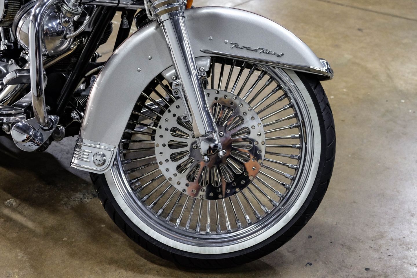 The Road King is a motorcycle that commands attention. Its sleek design and iconic Harley-Davidson detailing make it a standout on the road, while its powerful engine delivers an exhilarating ride. The 21" front spoke wheel not only adds to the motorcycle's aesthetic appeal but also ensures a smooth and comfortable ride, even on longer journeys. The 16" rear spokes, on the other hand, provide a robust foundation for the motorcycle, enhancing its stability and handling.