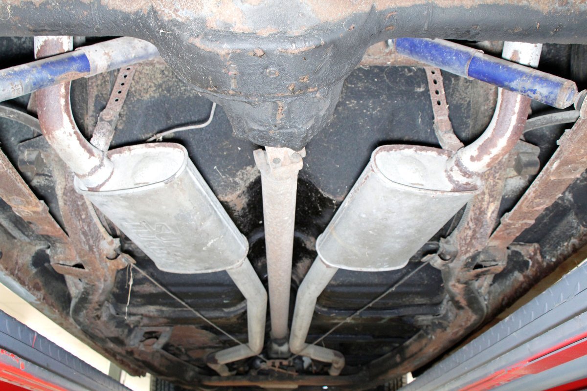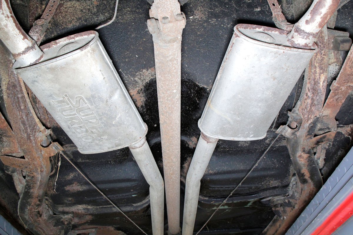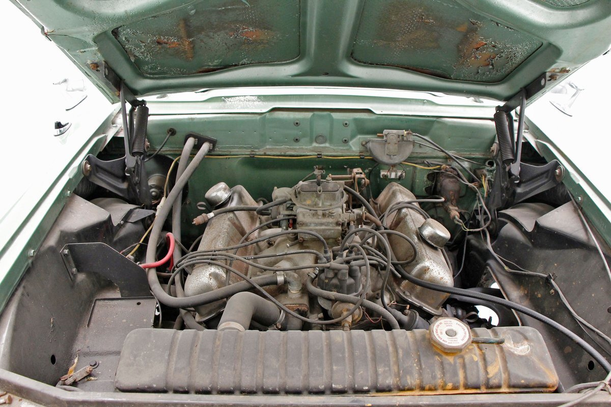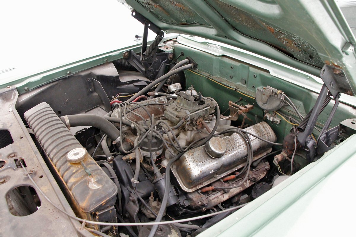 Under the revised for '58 rear hinged hood is an unrestored 332ci V8 that has a single Holley 4-barrel carburetor on top. A Mile-O-Matic 2-speed automatic is the column version previously mentioned. On the back is a Ford 9-inch 2.91 rear axle.