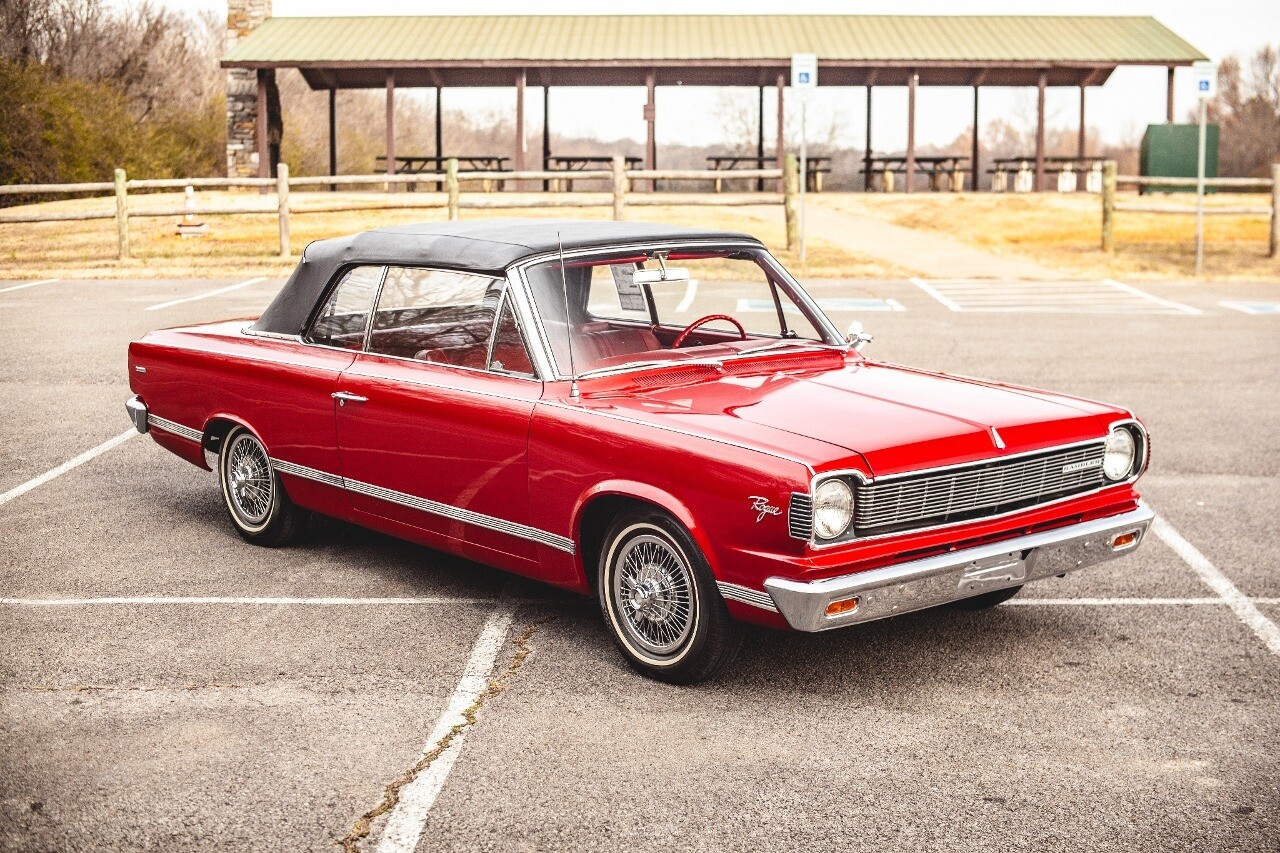 Gateway Classic Cars of Nashville is proud to digitally present this classic 1967 Rambler ROGUE. This vintage beauty sports a vibrant red exterior that is sure to turn heads wherever you go. The black interior adds a touch of sophistication and elegance, making it a stylish blend of style and comfort.