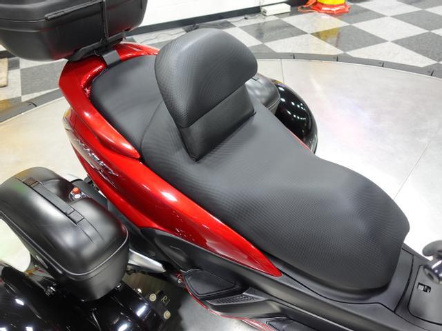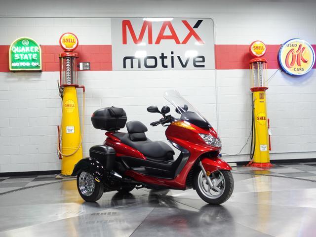 This immaculate 2006 Yamaha Majesty YP400 Scooter is easy and fun to ride, and is now available from the MaxMotive Pittsburgh Showroom. Powered by a 400cc dual overhead cam fuel injected engine, it has plenty of performance all the way to 90mph. The Continuously Variable Automatic Transmission adjusts to all conditions without the need for the rider to shift. The paint is a beautiful Deep Red Metallic that gives the bike an upscale look with black trim and seat. There’s plenty of storage and room for a passenger as well. The Tow Pac trike conversion adds storage capacity and helps rideability especially in the city, while front and rear disc brakes provide safe, sure stops. This well-cared-for 2006 Yamaha Majesty YP400 maxi-scooter is a great way to enjoy the open road. Please see the detailed photos at