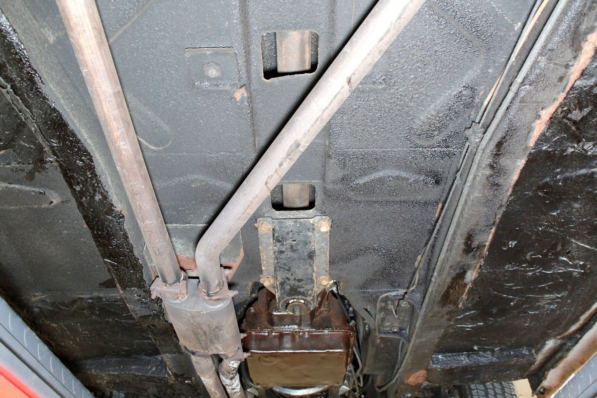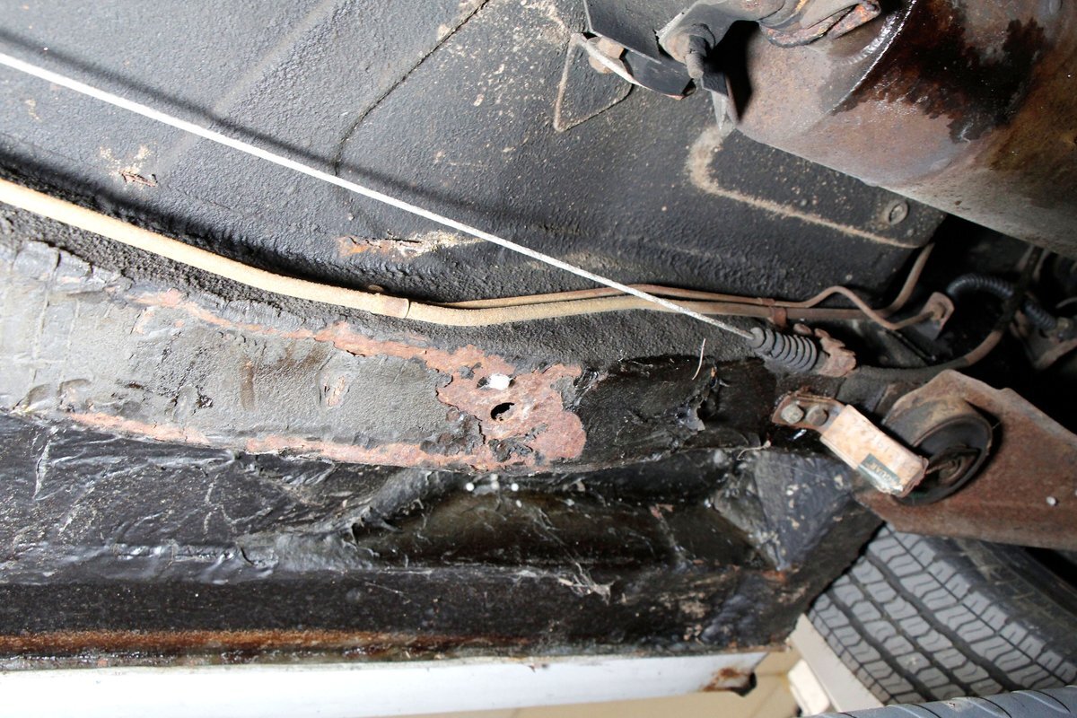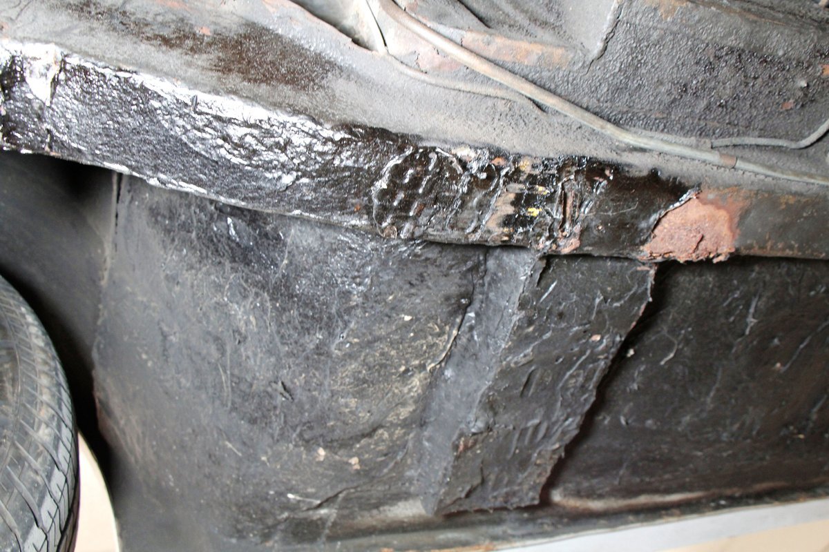 Showing some surface rust showing, and plenty of tar and pitch applied on some of the frame and rocker panels, we can only surmise what is under this material. Floorpans are sturdy, independent coil spring suspension is all around and power disc brakes for the stopping power.