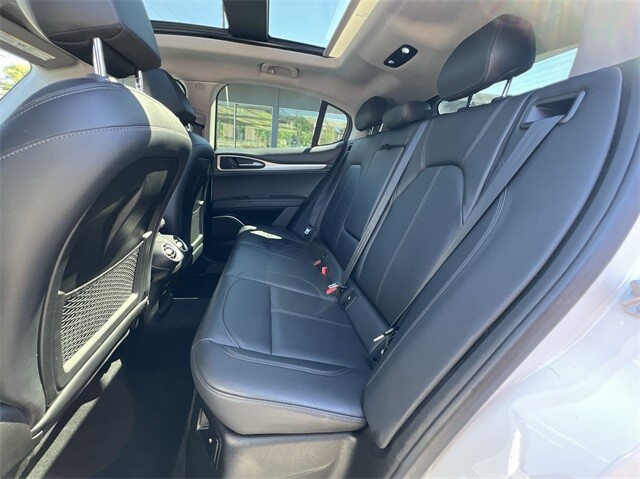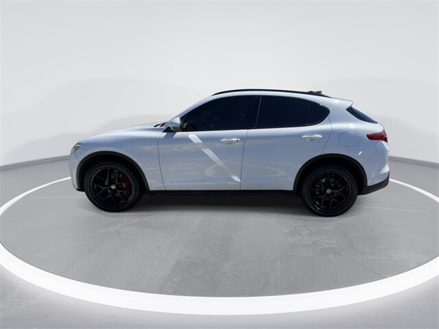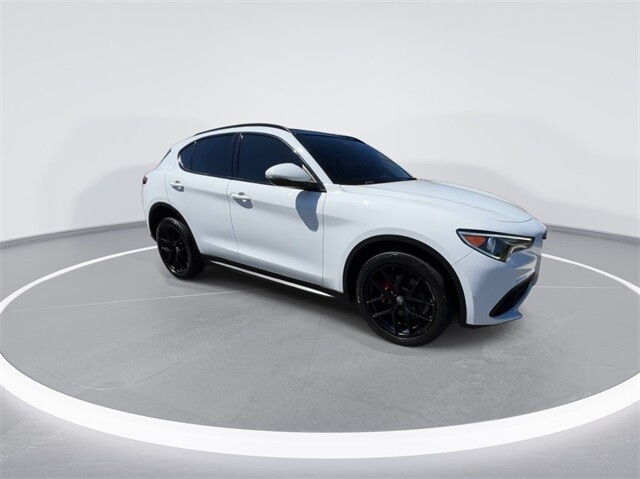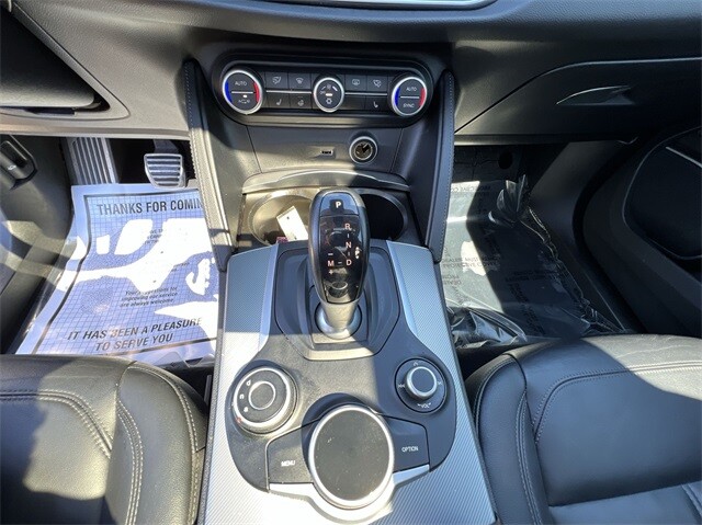 This Stelvio Base is nicely equipped with Cold Weather Package (Heated Front Seats, Heated Steering Wheel, and Heated Washer Nozzles), Quick Order Package 22J Sport (Aluminum Interior Trim, Aluminum Steering Column Mounted Paddle Shifters, Black Roof Rails, Bright Aluminum Pedals, Colored Brake Calipers, Gloss Black Window Surround Moldings, Sport Leather-Wrapped Steering Wheel, Sport Tuned Front Dampers, Tire Service Kit, and Wheels: 19 x 8.0 Sport 5-Hole Aluminum), 1-Year SiriusXM Radio Service, 8.8 Widescreen Color Display, Auto-dimming Rear-View mirror, Automatic temperature control, Brake assist, Compass, Dual-Pane Sunroof, Electronic Stability Control, Four wheel independent suspension, Front dual zone A/C, Fully automatic headlights, Garage door transmitter, Gloss Black Shark Fin Antenna, HD Radio, High intensity discharge headlights: Bi-Xenon, Illuminated entry, Memory seat, Outside temperature display, Overhead console, Panic alarm, ParkView Rear Back-Up Camera, Power door mirrors, Power driver seat, Power Liftgate, Power passenger seat, Power steering, Power windows, Radio: AM/FM/HD Bluetooth w/Nav 8.8, Rain sensing wipers, Rear audio controls, Rear fog lights, Rear window defroster, Rear window wiper, Remote keyless entry, Security system, SiriusXM Satellite Radio, Speed control, Speed-sensing steering, Steering wheel mounted audio controls, Traction control, Turn signal indicator mirrors, 3.73 Axle Ratio, 4-Wheel Disc Brakes, 8 Speakers, ABS brakes, Air Conditioning, Alloy wheels, AM/FM radio, Bumpers: body-color, Delay-off headlights, Driver door bin, Driver vanity mirror, Dual front impact airbags, Dual front side impact airbags, Forward Collision Warning, Front anti-roll bar, Front Bucket Seats, Front Center Armrest, Front reading lights, Gloss Red Calipers w/White Script, Heated door mirrors, Knee airbag, Leather Seats, Leather Shift Knob, Low tire pressure warning, Navigation System, No Satellite Coverage HI/AK/PR/VI/GU, Occupant sensing airbag, Overhead airbag, Passenger door bin, Passenger vanity mirror, Radio data system, Radio: AM/FM w/Bluetooth 6.5, Rear anti-roll bar, Rear reading lights, Rear seat center armrest, Roof rack: rails only, Speed-Sensitive Wipers, Split folding rear seat, Spoiler, Sport steering wheel, Tachometer, Telescoping steering wheel, Tilt steering wheel, Trip computer, Variably intermittent wipers, Wheels: 18 x 8.0 5-Spoke Aluminum, and Wheels: 20 x 8.5 Sport Aluminum.