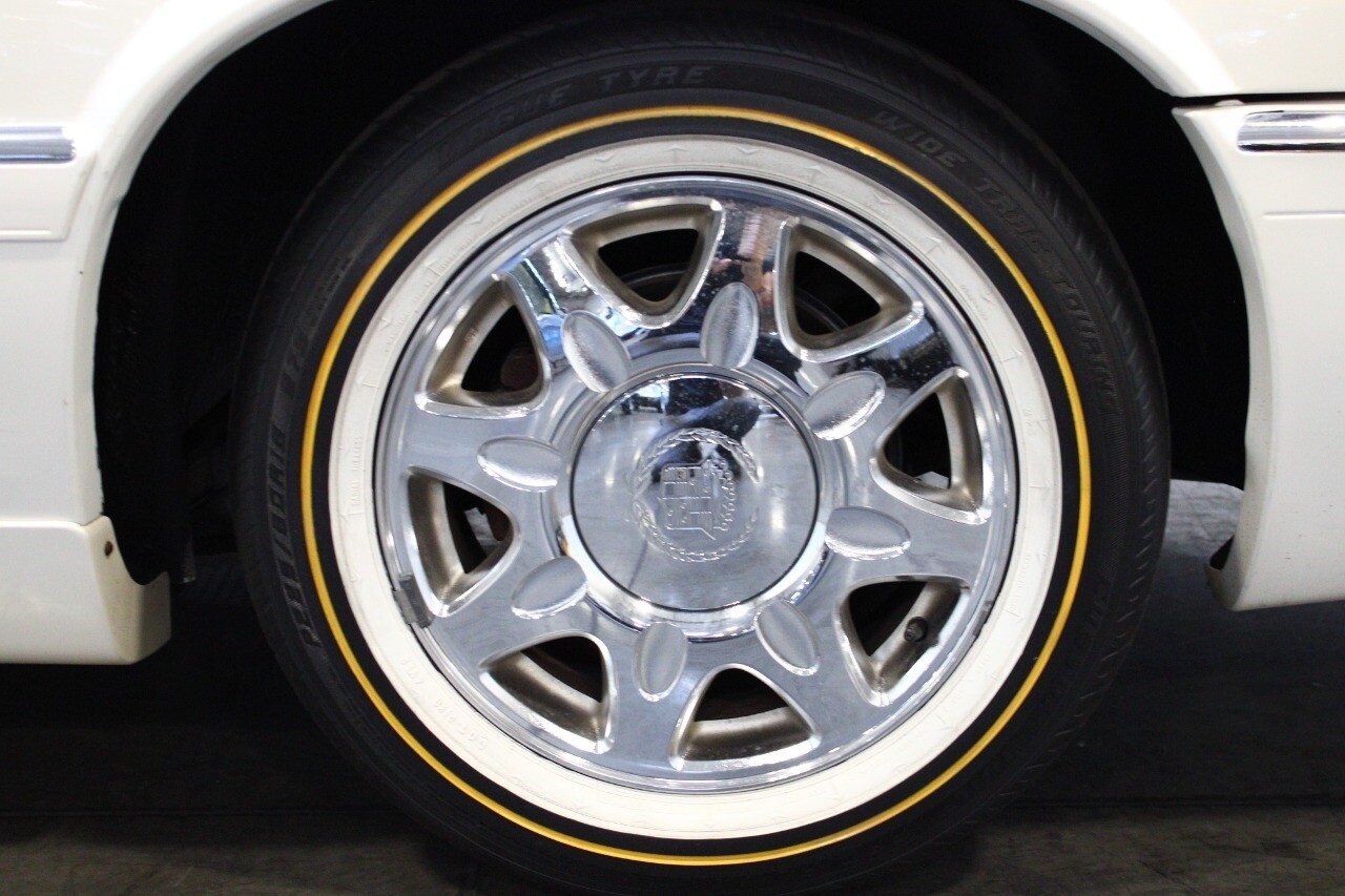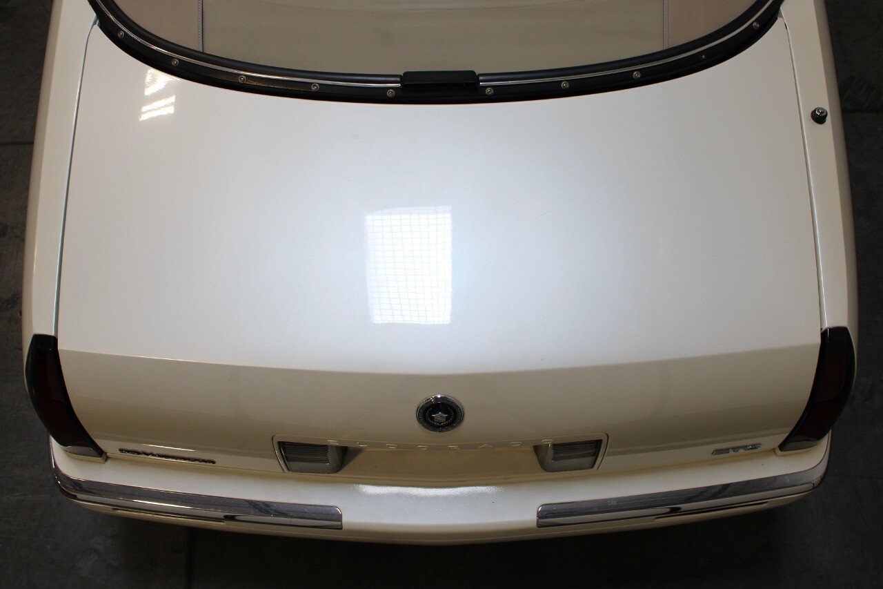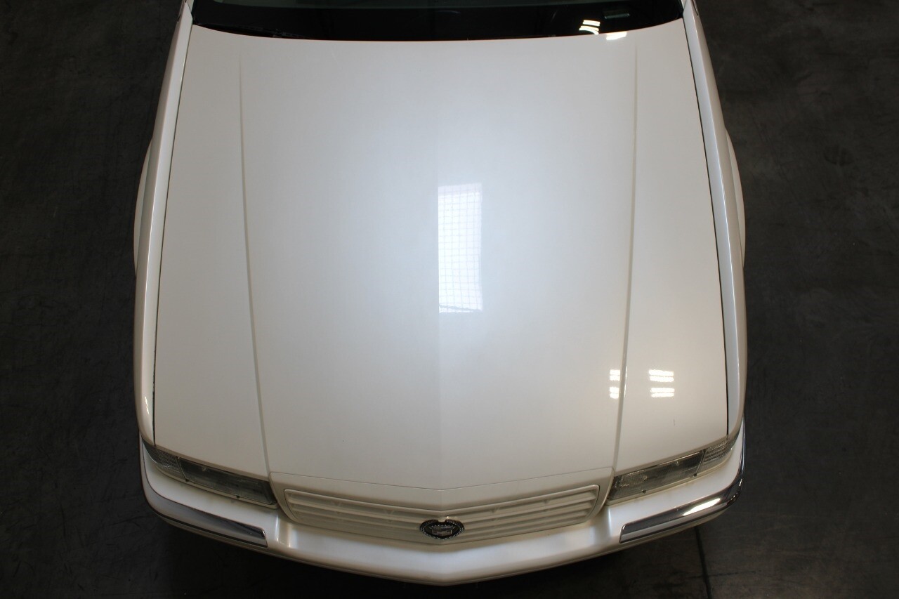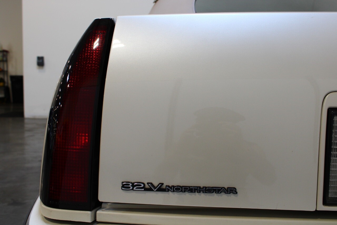 Introducing the 1997 Cadillac Eldorado Convertible, a timeless classic that combines luxury, power, and style. This elegant vehicle boasts a striking white diamond pearl metallic exterior, a color that exudes sophistication and class. The beautiful exterior is complemented by a luxurious beige leather interior, offering an inviting and comfortable driving environment.