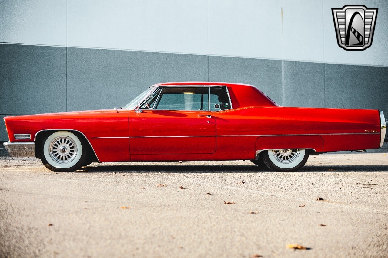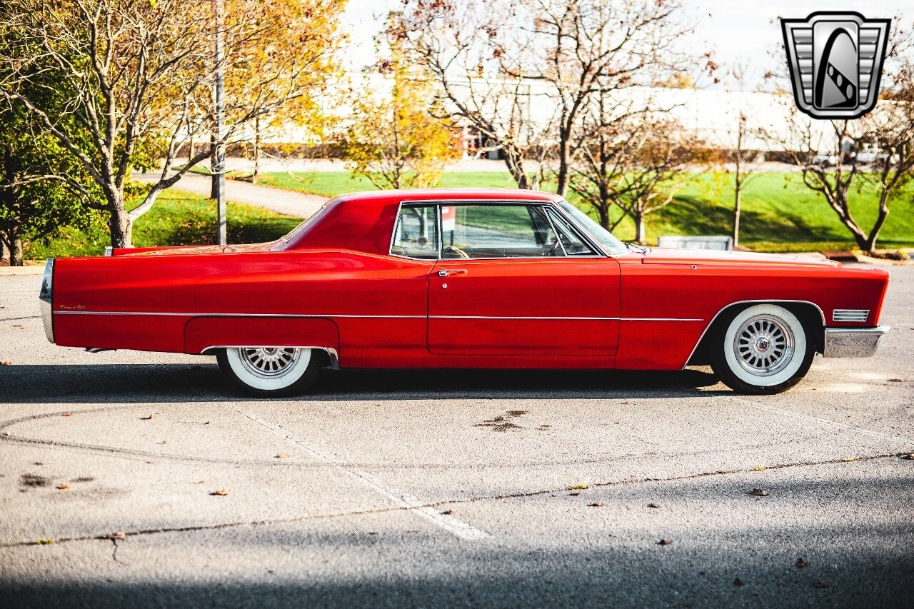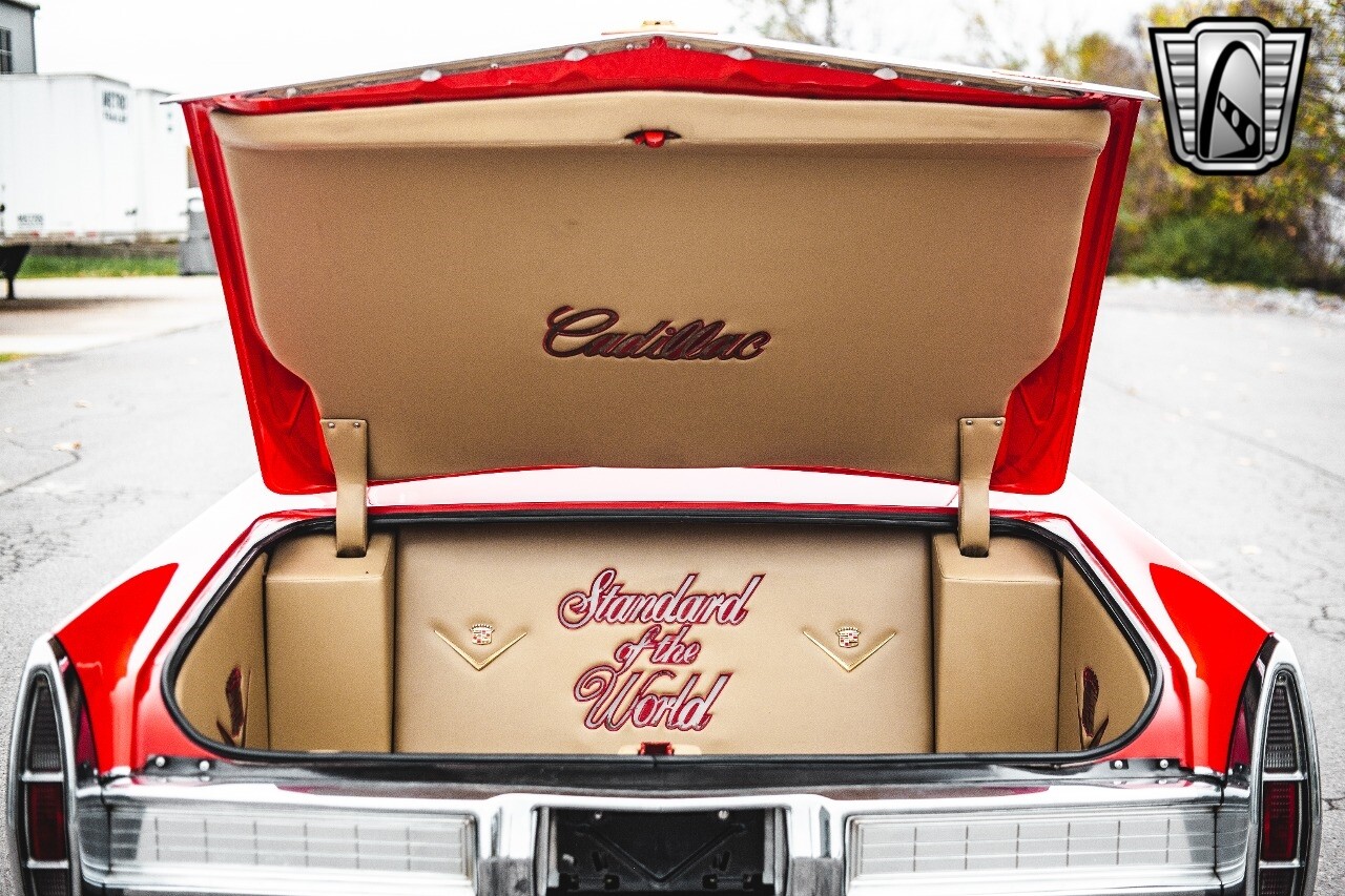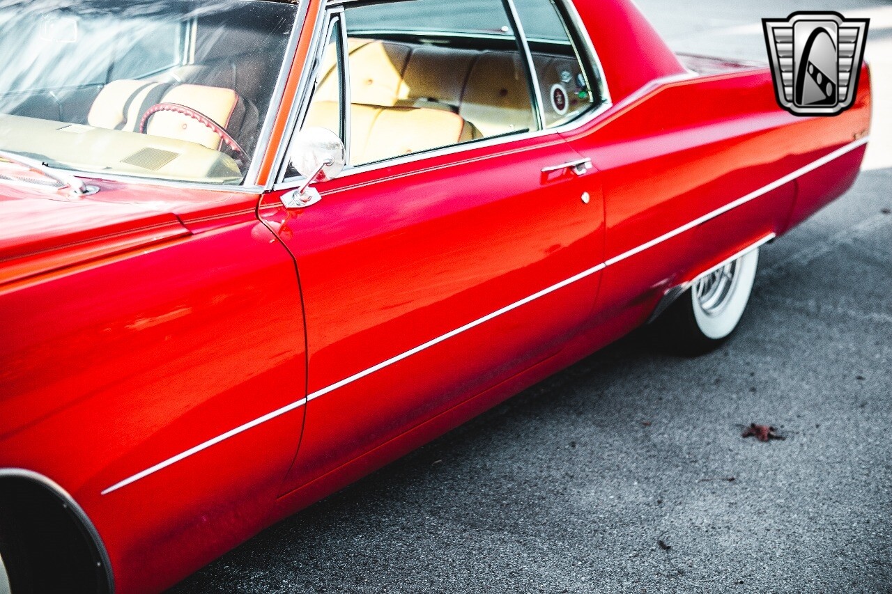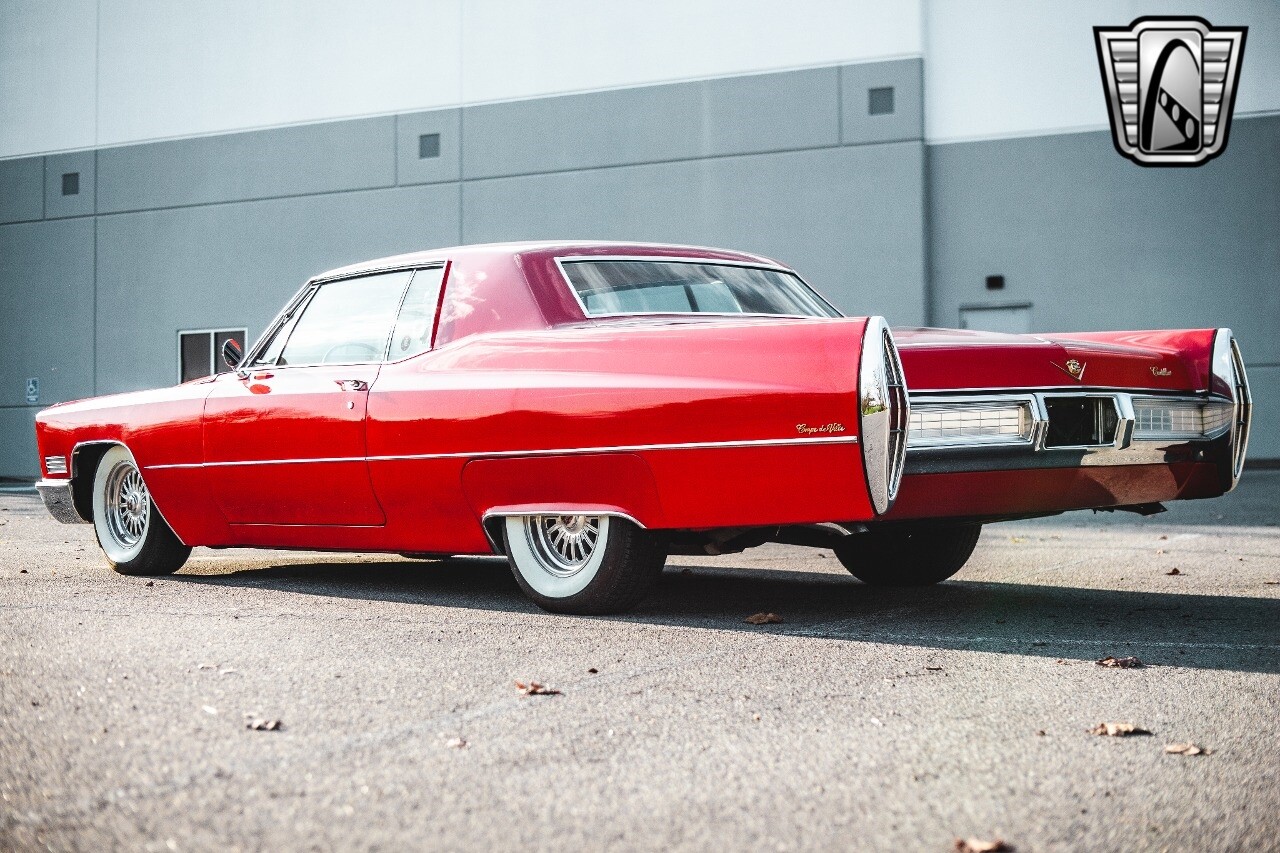 Gateway Classic Cars of Nashville is proud to be digitally presenting this red hot 1967 Cadillac Coupe Deville. This 1967 Cadillac is equipped with a 429 CI V8 engine and a Turbo 400 automatic transmission. The exterior of this car is done in 2000 Viper Red with Gold Dupont mini flake. The interior has been reupholstered in OEM vinyl from OPG I. It is Tan with red accents and piping. One of the highlights of the car is the custom design work that was done in the trunk. It includes a remote-controlled light show that is sure to be a hit at car shows. The Cadillac was ceramic coated in 2019. This Cadillac rides on a set of 3 piece polished aluminum wheels that are wrapped with American Standard 235.70.15 tires with 3 1/8th wide whitewalls. The engine and transmission have both been rebuilt. The engine looks great with Cadillac valve covers and some chrome dress up items. The ignition has been upgraded to electronic. An Edelbrock 850 cfm carburetor replaced the original Rochester and a set of Sanderson ceramic headers with Flowmaster 50 series mufflers and stainless dual exhaust produce a deep exhaust tone. Both front and rear drop spring kits have been installed. All the exterior emblems have been Gold electroplated for a little extra class. This Cadillac looks and runs great. [ omitted ].