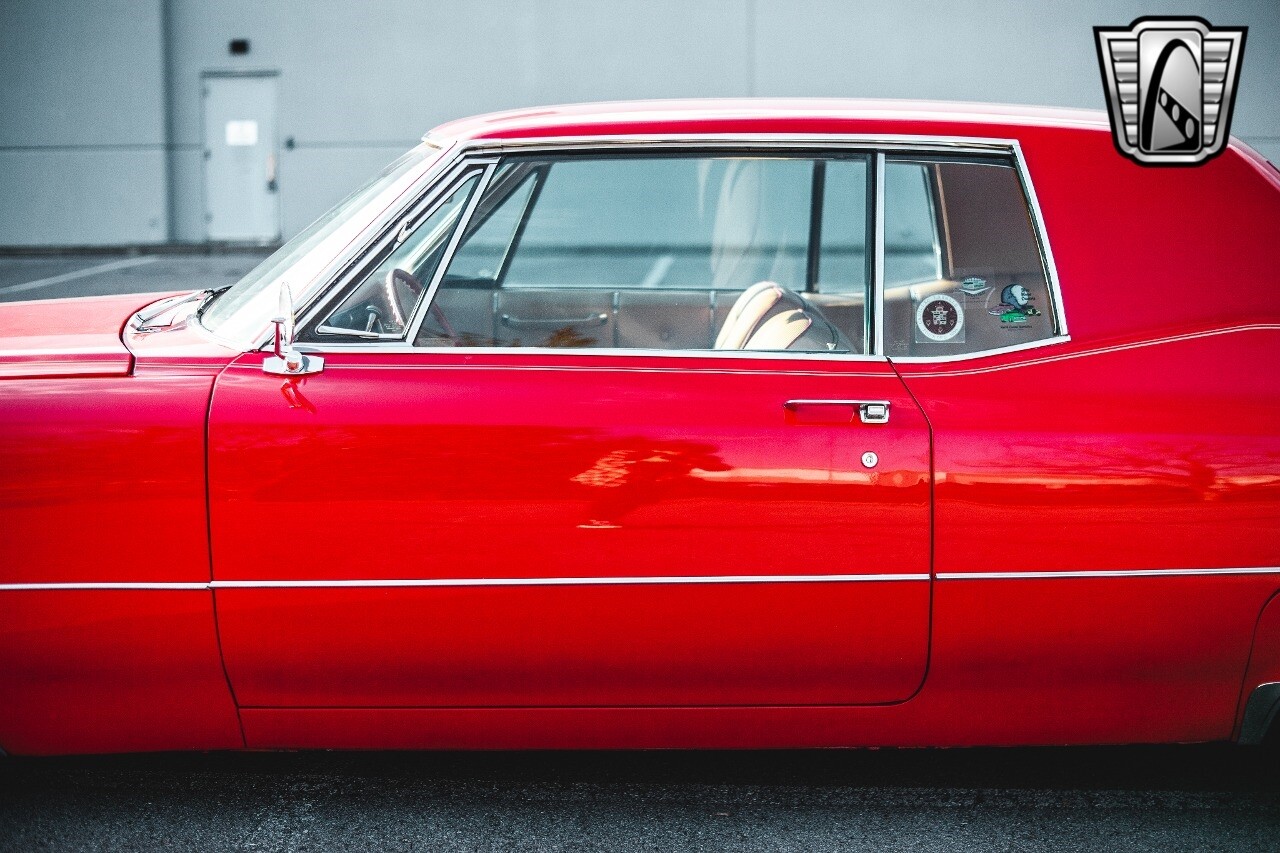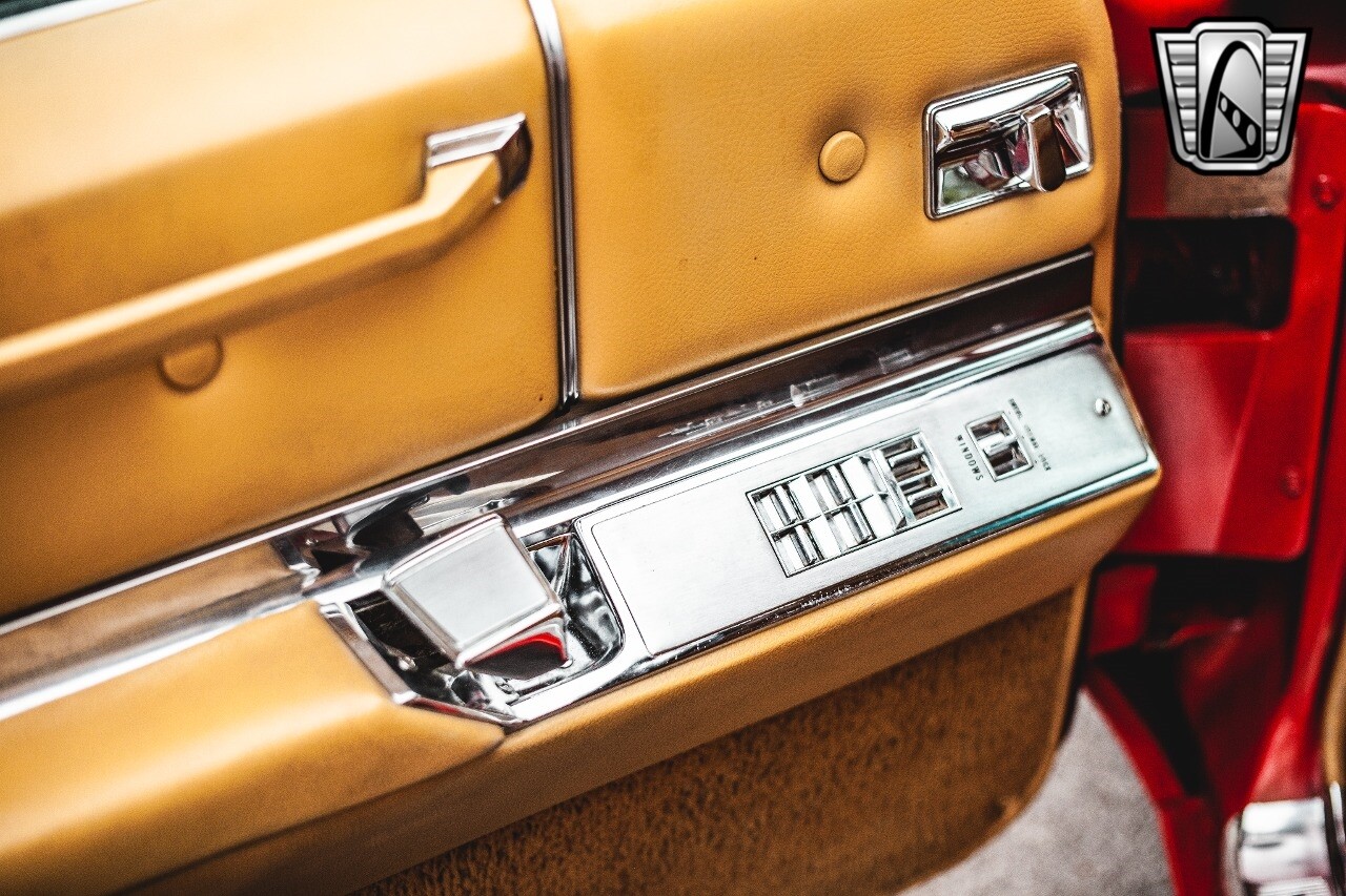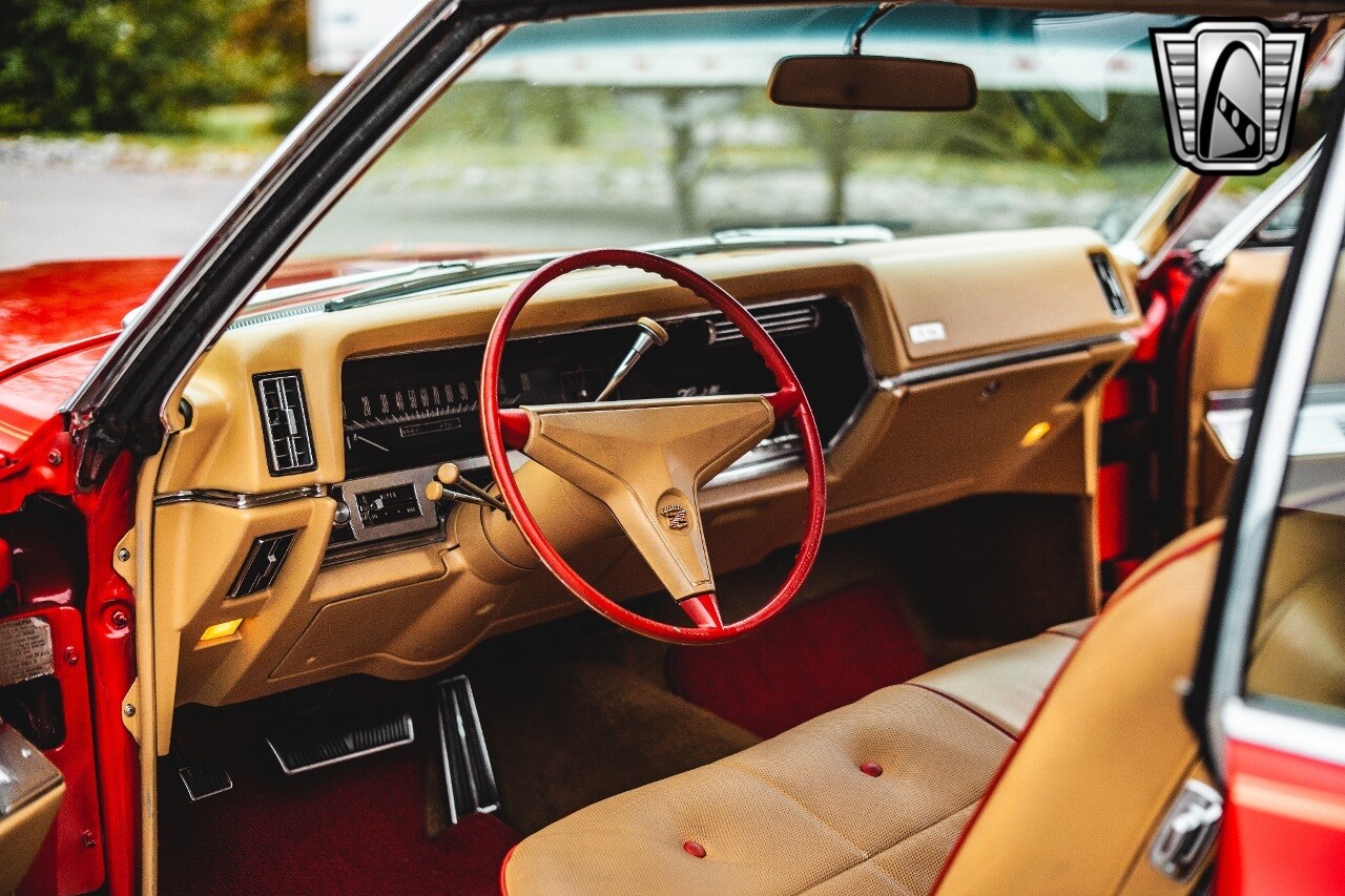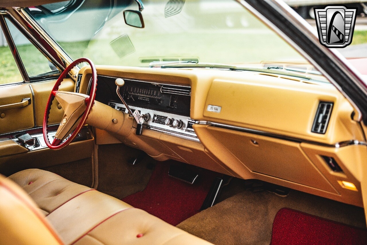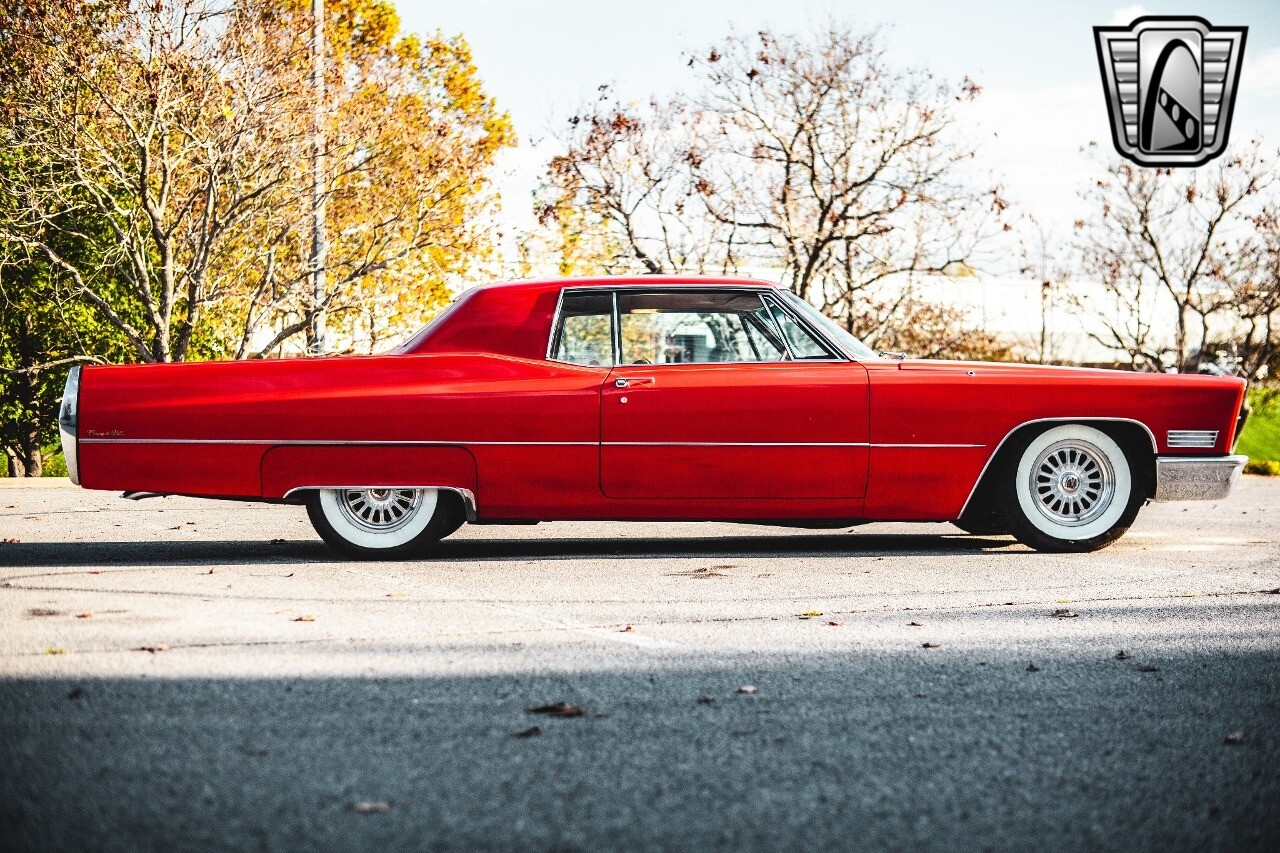 Gateway Classic Cars of Nashville is proud to be digitally presenting this red hot 1967 Cadillac Coupe Deville. This 1967 Cadillac is equipped with a 429 CI V8 engine and a Turbo 400 automatic transmission. The exterior of this car is done in 2000 Viper Red with Gold Dupont mini flake. The interior has been reupholstered in OEM vinyl from OPG I. It is Tan with red accents and piping. One of the highlights of the car is the custom design work that was done in the trunk. It includes a remote-controlled light show that is sure to be a hit at car shows. The Cadillac was ceramic coated in 2019. This Cadillac rides on a set of 3 piece polished aluminum wheels that are wrapped with American Standard 235.70.15 tires with 3 1/8th wide whitewalls. The engine and transmission have both been rebuilt. The engine looks great with Cadillac valve covers and some chrome dress up items. The ignition has been upgraded to electronic. An Edelbrock 850 cfm carburetor replaced the original Rochester and a set of Sanderson ceramic headers with Flowmaster 50 series mufflers and stainless dual exhaust produce a deep exhaust tone. Both front and rear drop spring kits have been installed. All the exterior emblems have been Gold electroplated for a little extra class. This Cadillac looks and runs great. [ omitted ].
