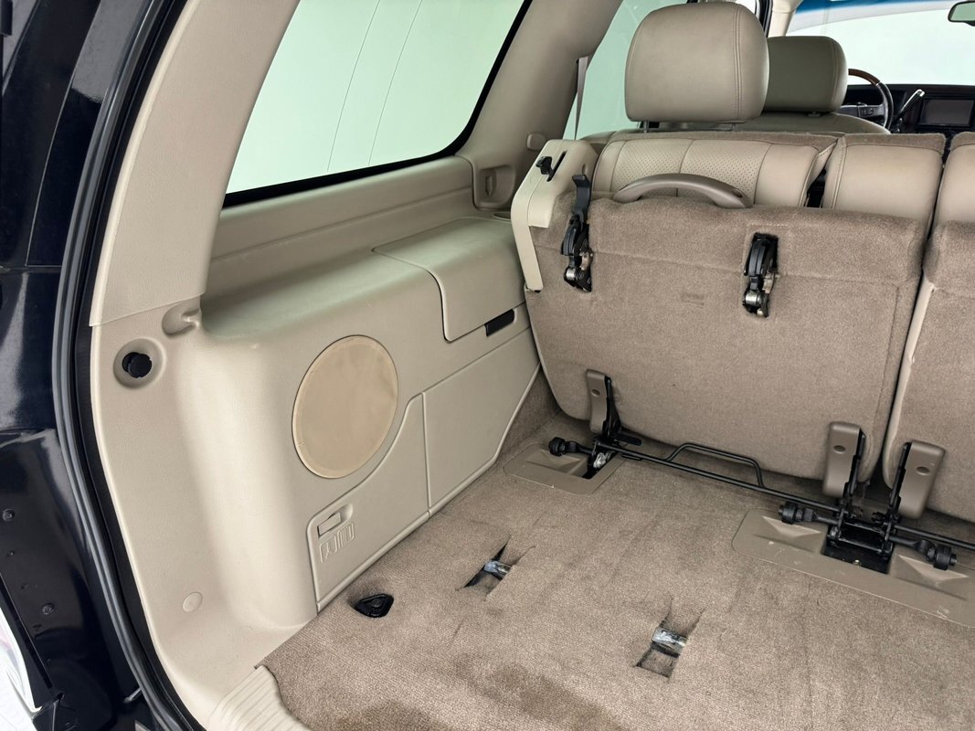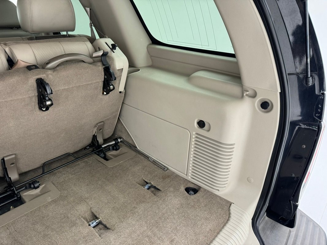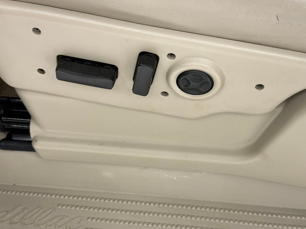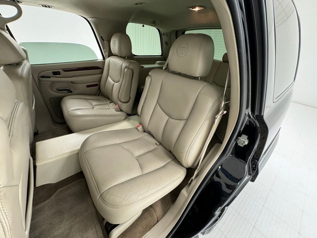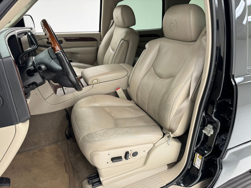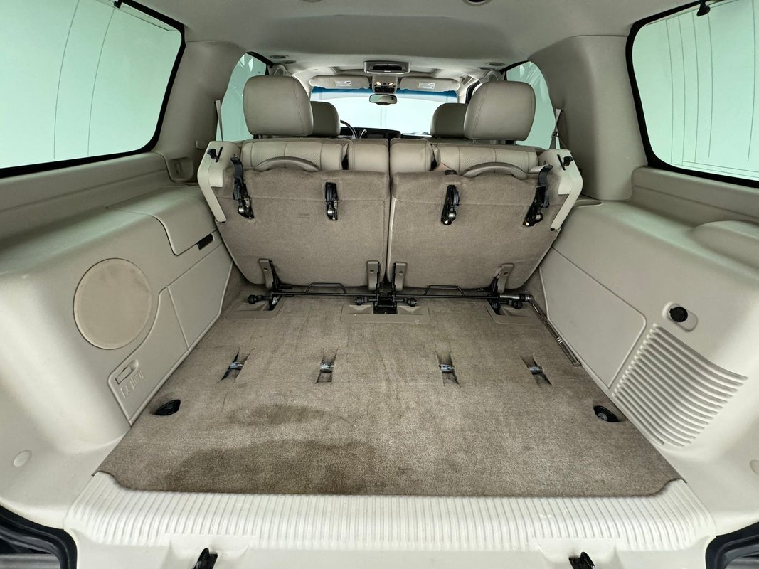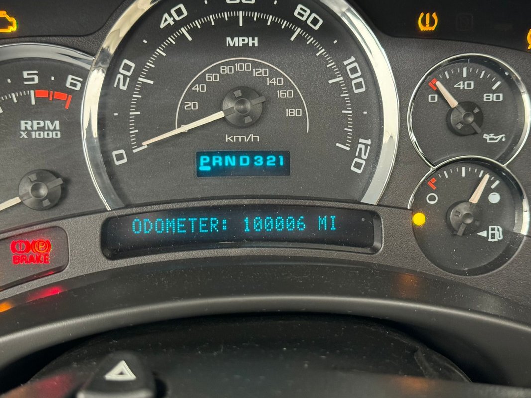 Beautifully appointed in Shale leather, it's immediately apparent that this is no Yukon. Everything is stepped up just a bit beginning with door panels where perforated leather mixes with faux wood, plastic, and tan carpet creating a warm welcome point. Inside, the front bucket seats, also in Shale leather, are extra stuffed, inviting and tall. The driver's side shows a bit of wear but not unexpected for a vehicle with 100,006 miles. The second row consists of bucket seats flanking the extended custom console and houses the amp. Pumping out the tunes for all 3 rows is a Sony head unit that has a back-up camera, DVD screens, Bluetooth capability and navigation. The factory speakers have been replaced as well and a 4 channel amp feeds to the factory sub behind the rear seat. The removable third row is a split bench with seating for three but probably spent more time folded down as indentations from seat belt buckles are evident. The four spoke steering wheel is capped with plastic woodgrain and wrapped in black leather. The gauge cluster is large and vibrant, and the odometer and info readout is displayed in familiar GM digital blue. Faux wood applique augments the dash and spills down to cover the center console where we find a clock, cupholders, a lighter and some storage. The leather armrest doubles as a bin lid. Second row passengers get heated seats, A/C controls, a fold down screen, and audio controls with headset input. The tan carpet covering the floor is in good condition and as is the headliner which also is where you find an overhead console with lights and A/C controls. Whew! That's a lot of stuff, but it's a big vehicle with many features!