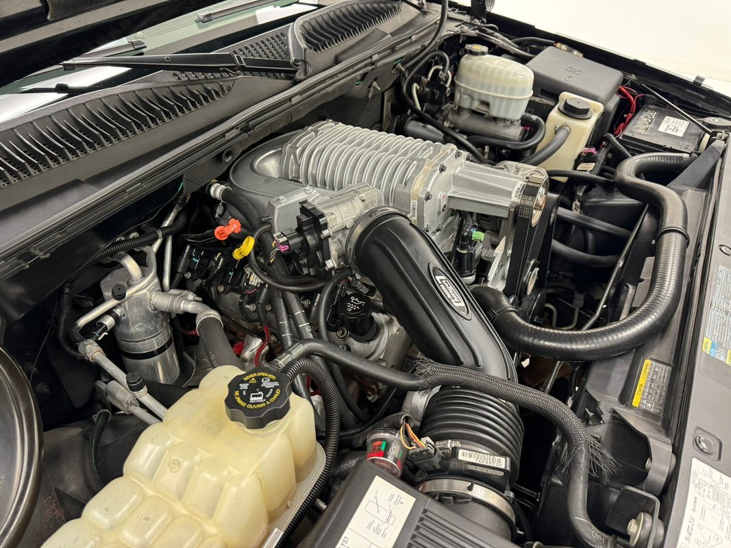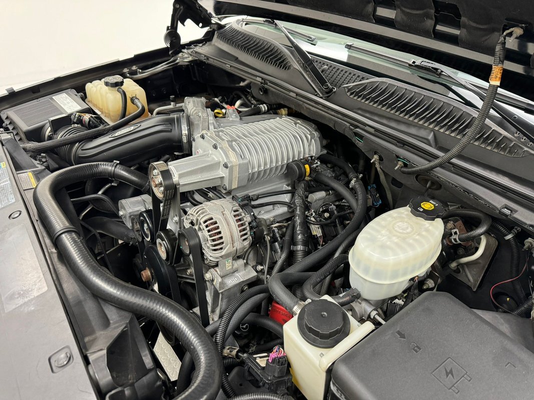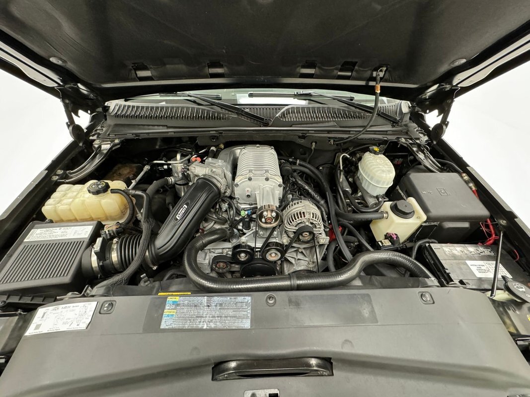 And speaking of features, how about the 6.0 liter LS V8, a legendary engine in its own right but massaged here with a Comp Cams camshaft with .522i/.529e lift, 114 degree lobe separation and a 112 centerline. Bolted on top is a Magnuson TVS 1900 Radix Supercharger with a liquid to air intercooler bumping the horsepower to an estimated and astounding 460 horsepower. In this class of vehicle, unless you're sitting in a Callaway tuned Tahoe at the red light next to this beast, don't even try it. The transmission is a 4L65E 4-speed automatic that transfers power to all four wheels and 3.73 gears at both ends. The power disc brakes have been upgraded to Wildwood 6-piston calipers with 2-piece 16-inch rotors up front and 4-piston calipers with 14-inch rotors in back.