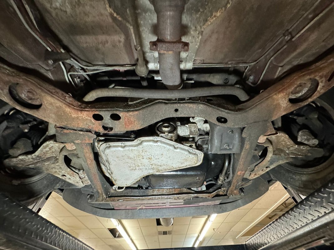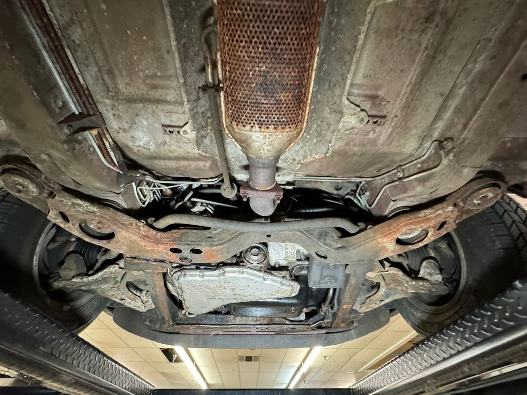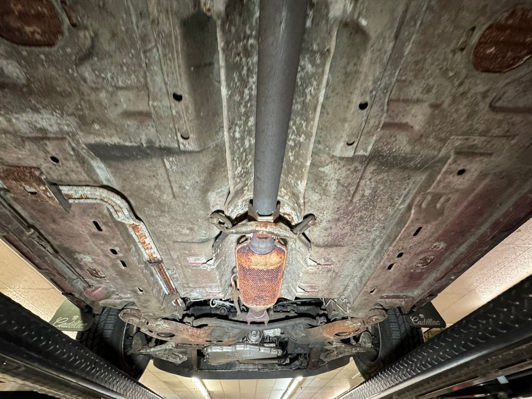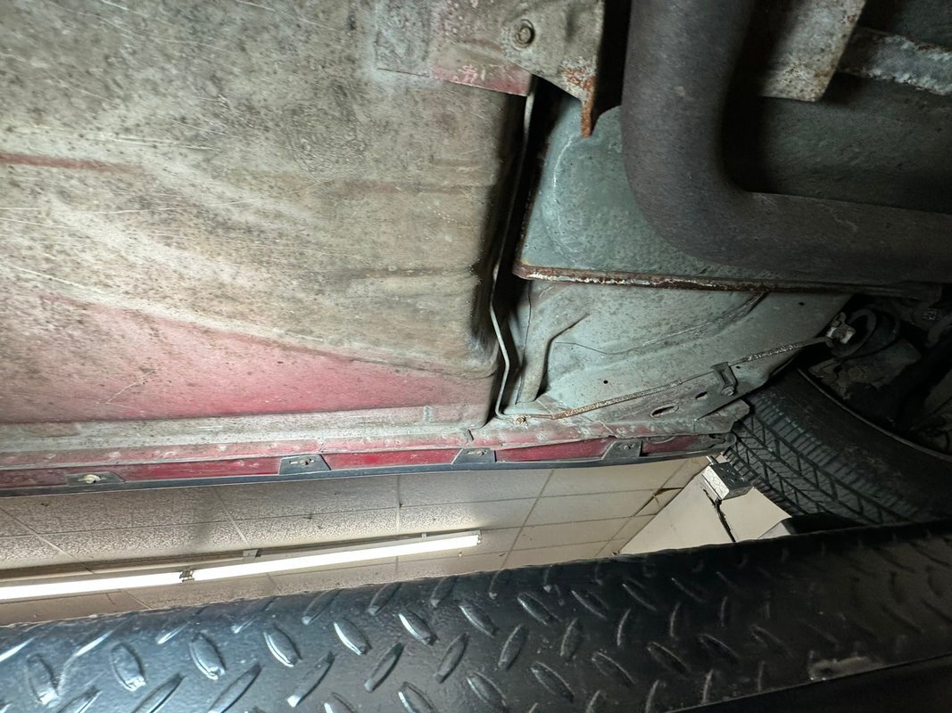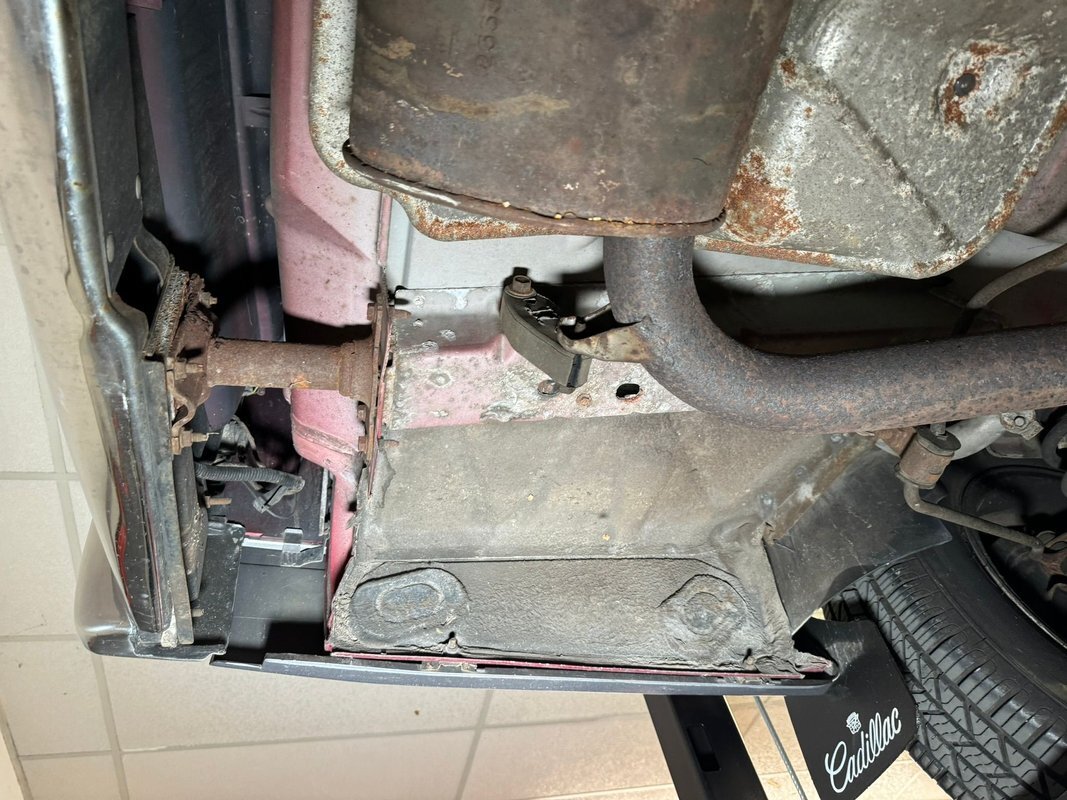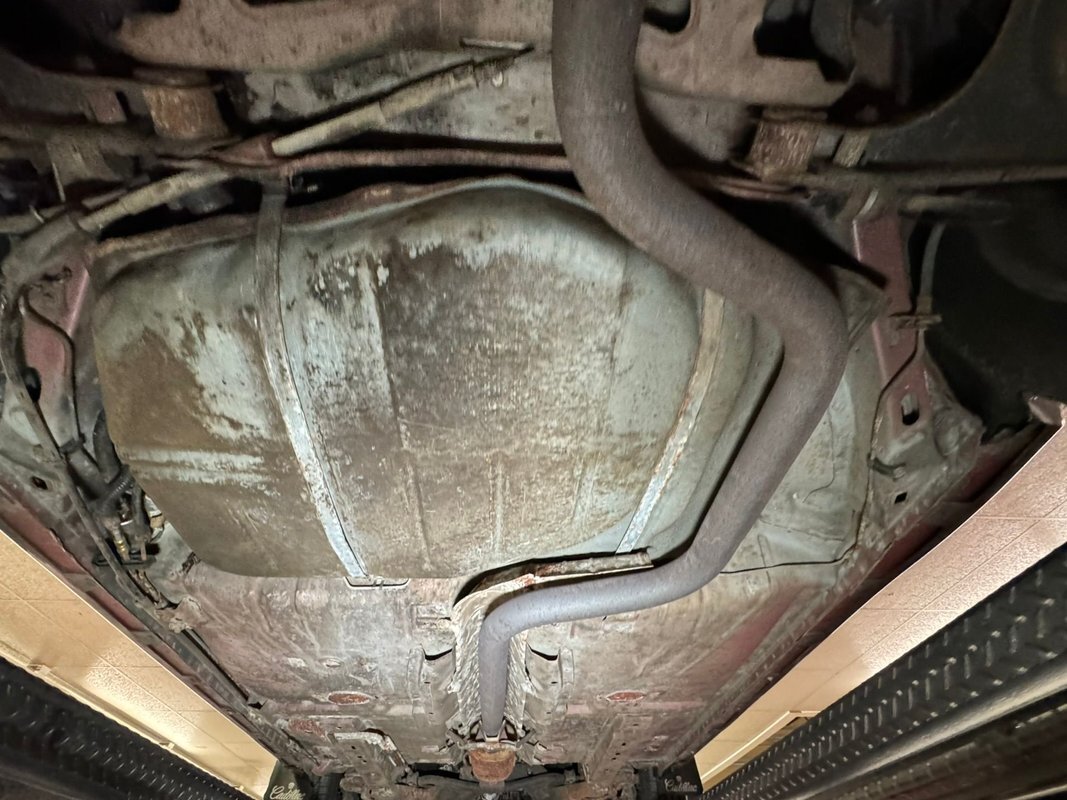 Some typical surface rust and discoloration for a driven vehicle of this vintage. But for a car that lived its entire life on the East coast, the undercarriage is actually pretty nice. No major areas of concern; some grease residue by the zerk fittings, some oil on the pan, and some pitting on the bumper support brackets...but all else looks good. The single exhaust has surface rust, but otherwise complete with rubber hangers still intact.