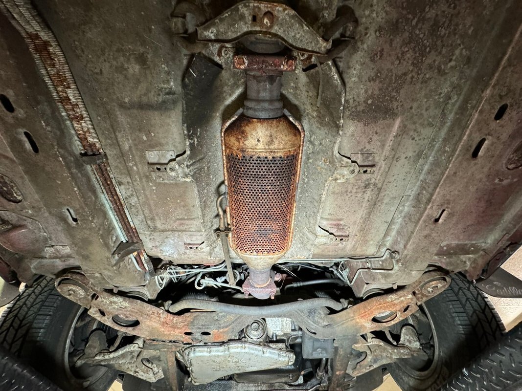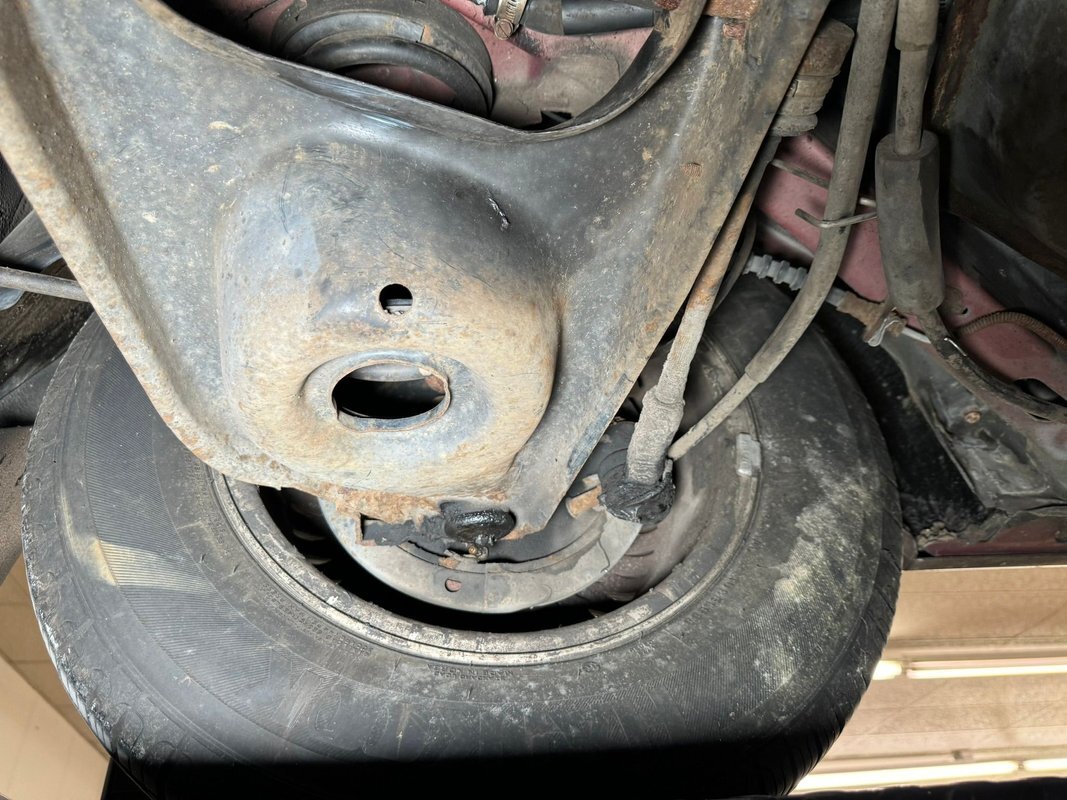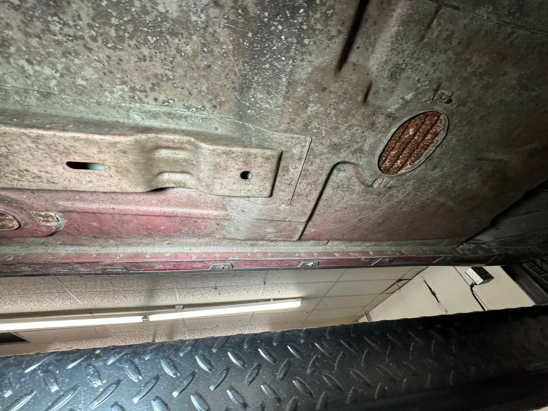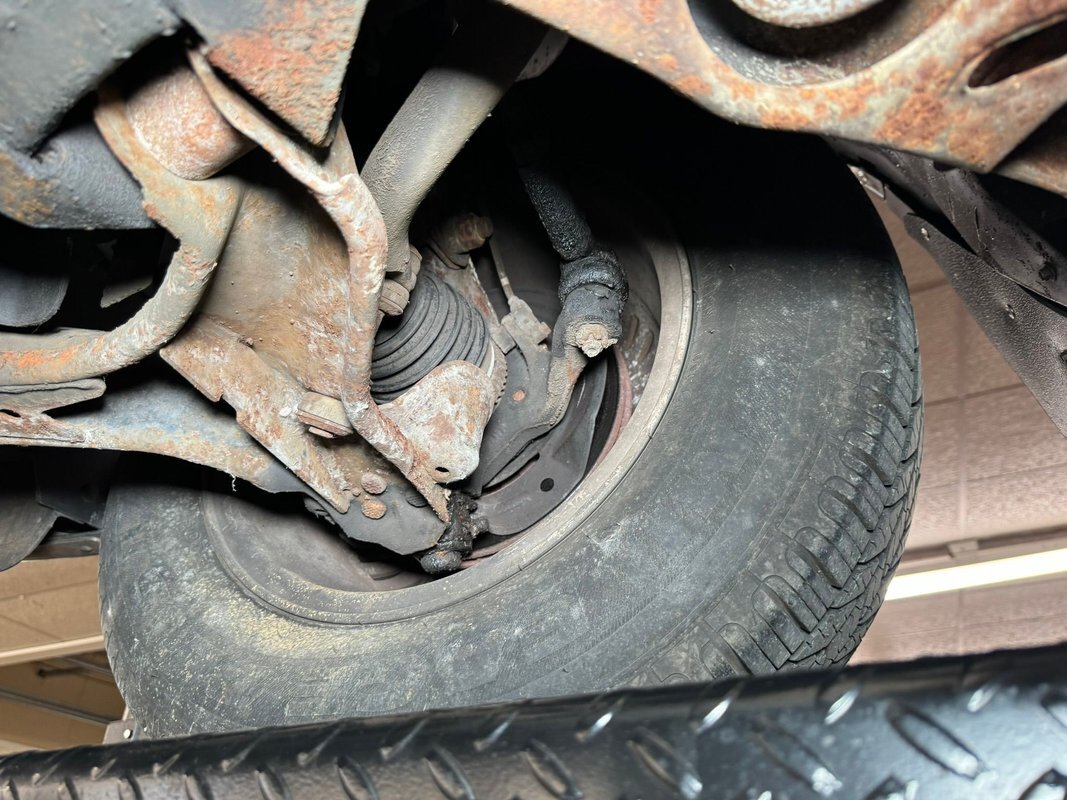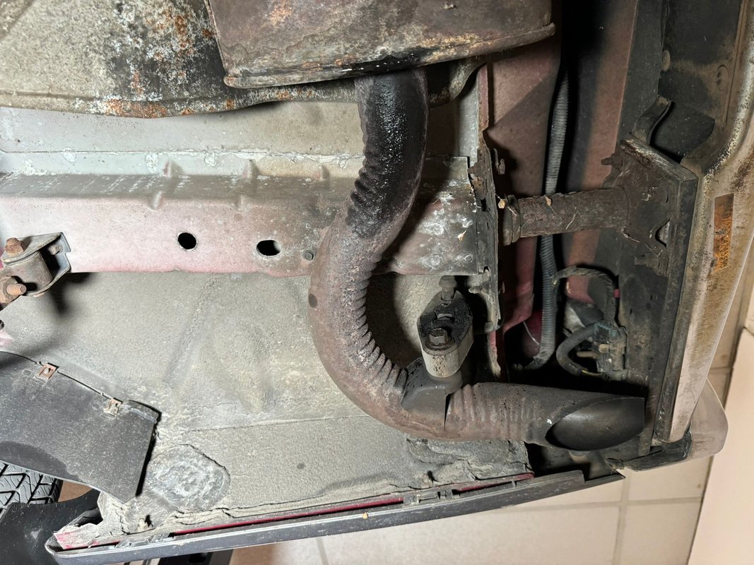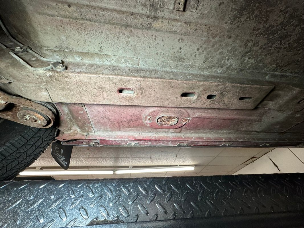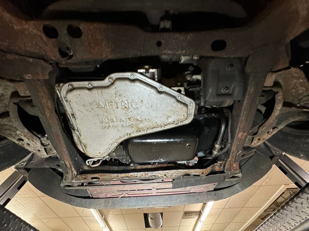 Some typical surface rust and discoloration for a driven vehicle of this vintage. But for a car that lived its entire life on the East coast, the undercarriage is actually pretty nice. No major areas of concern; some grease residue by the zerk fittings, some oil on the pan, and some pitting on the bumper support brackets...but all else looks good. The single exhaust has surface rust, but otherwise complete with rubber hangers still intact.