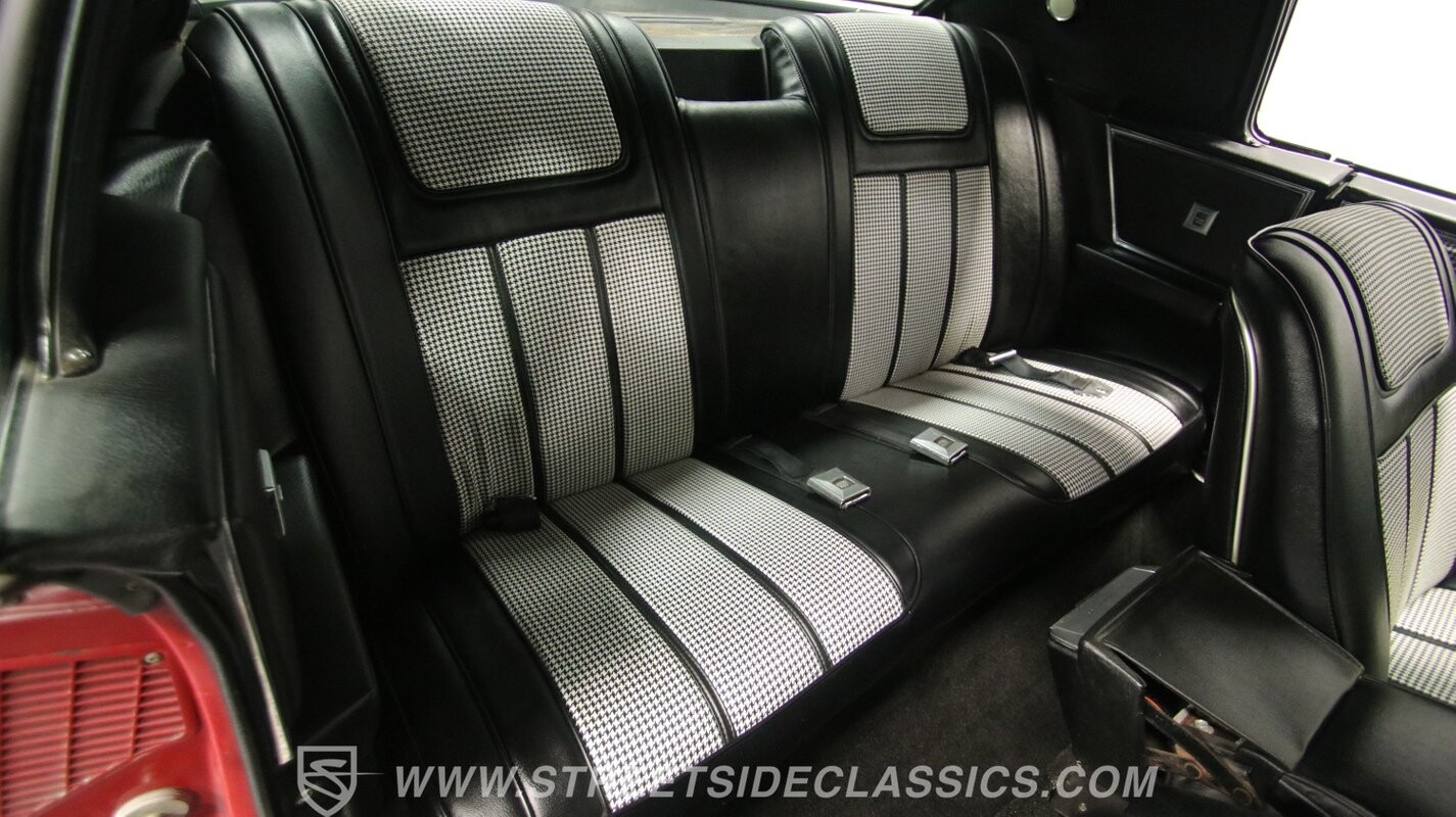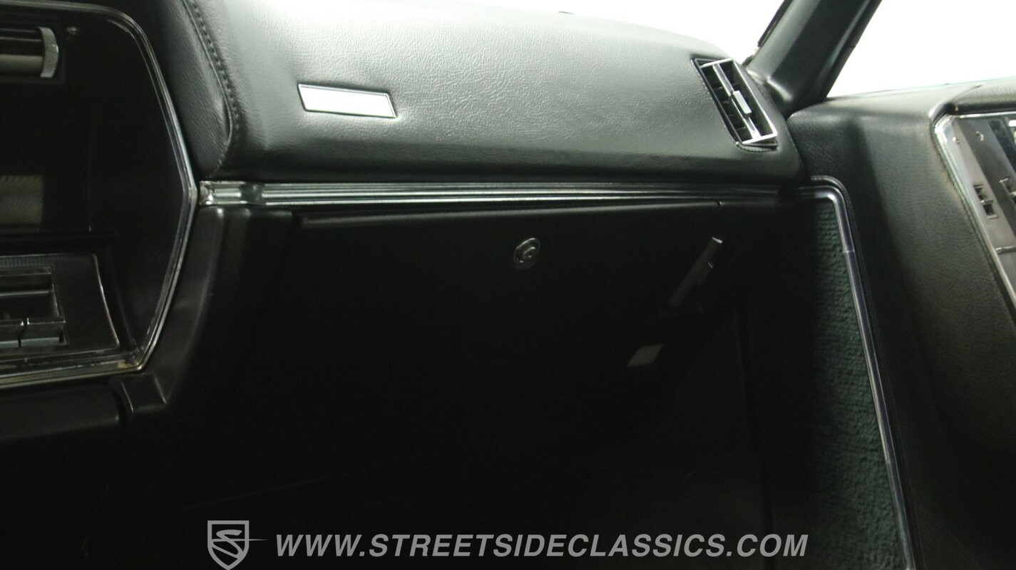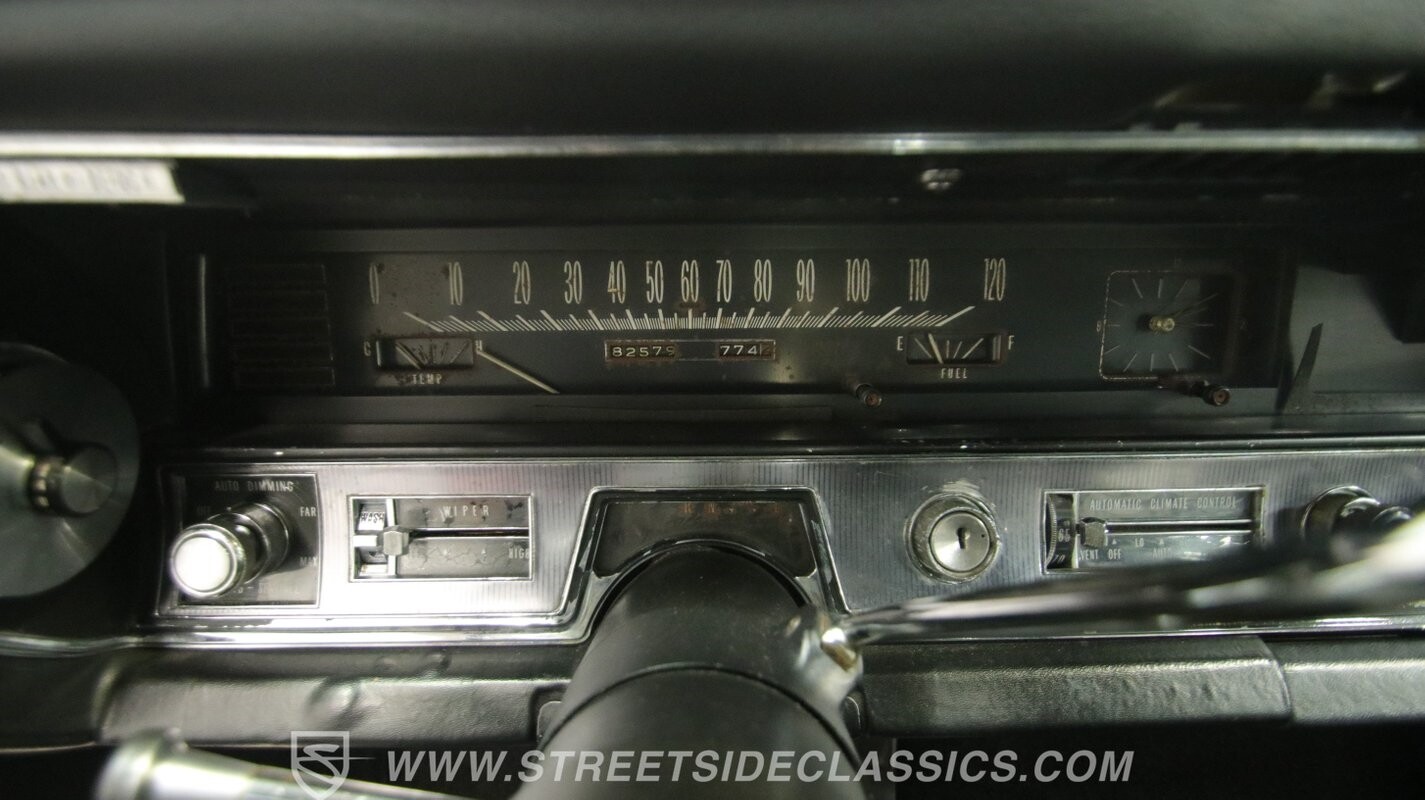 The interior continues the uniquely attractive style and muscle car flair. After all, we tend to think houndstooth interiors were inside the best power cars, and the Camaro wouldn't even get the option until '68. But when it's used here it just adds to the distinction and the cloth inserts in the seats and doors harmonize with the black and brightwork that surrounds it. This is a roomy hardtop that can carry plenty of family and friends. But an executive-level car like this is also about personal driver comfort. That's why you have a fold-down front armrest, a tilt/telescoping steering column, and all the features are within easy reach. This includes the classic AM/FM/radio, power locks, and power windows that let you take down all the glass on this pillarless hardtop.