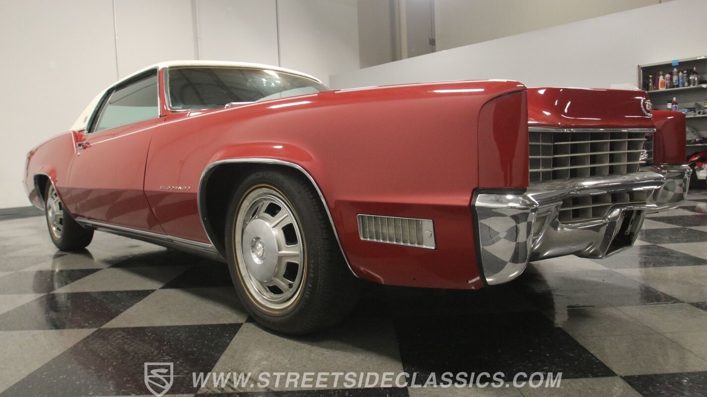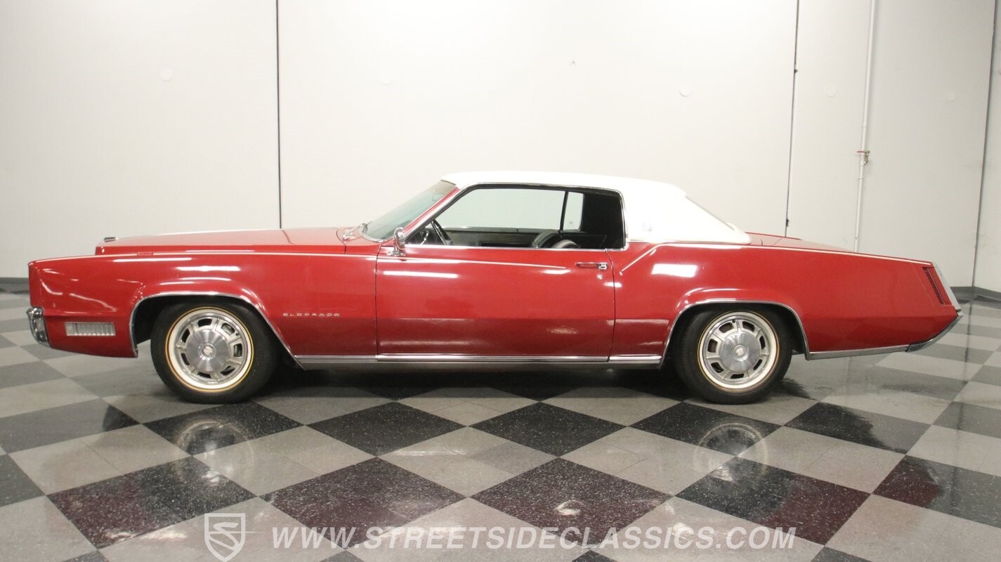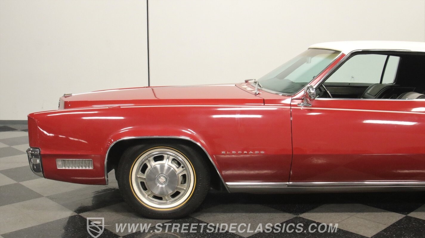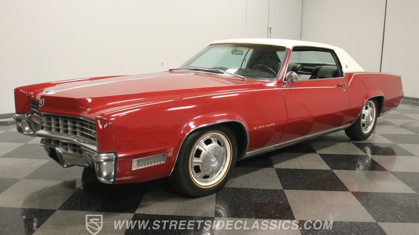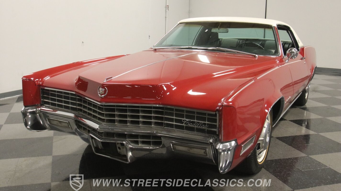 The Eldorado had always been reserved for premium distinction, and that took on a whole new dimension for 1967. Available only as a coupe, it was more expensive than even a DeVille convertible, and that's why it's rarer. It placed Cadillac firmly in the epicenter of the late 1960s by giving a muscle car kind of look... still while not losing its premium values. It had a bold front end with hidden headlights, even sleeker lines than its jet-age predecessors, and an imposing width that wanted to own the road. The red has a cool style with the white vinyl top and matching pinstripe, and the bumpers made sure to hug the sharp angles of the car's form. That's how you know this is rolling opulence. So while you may decide to do a respray or other improvements, there's something fundamentally attractive when something this significant is also complete and correct - right down to the wheel covers.