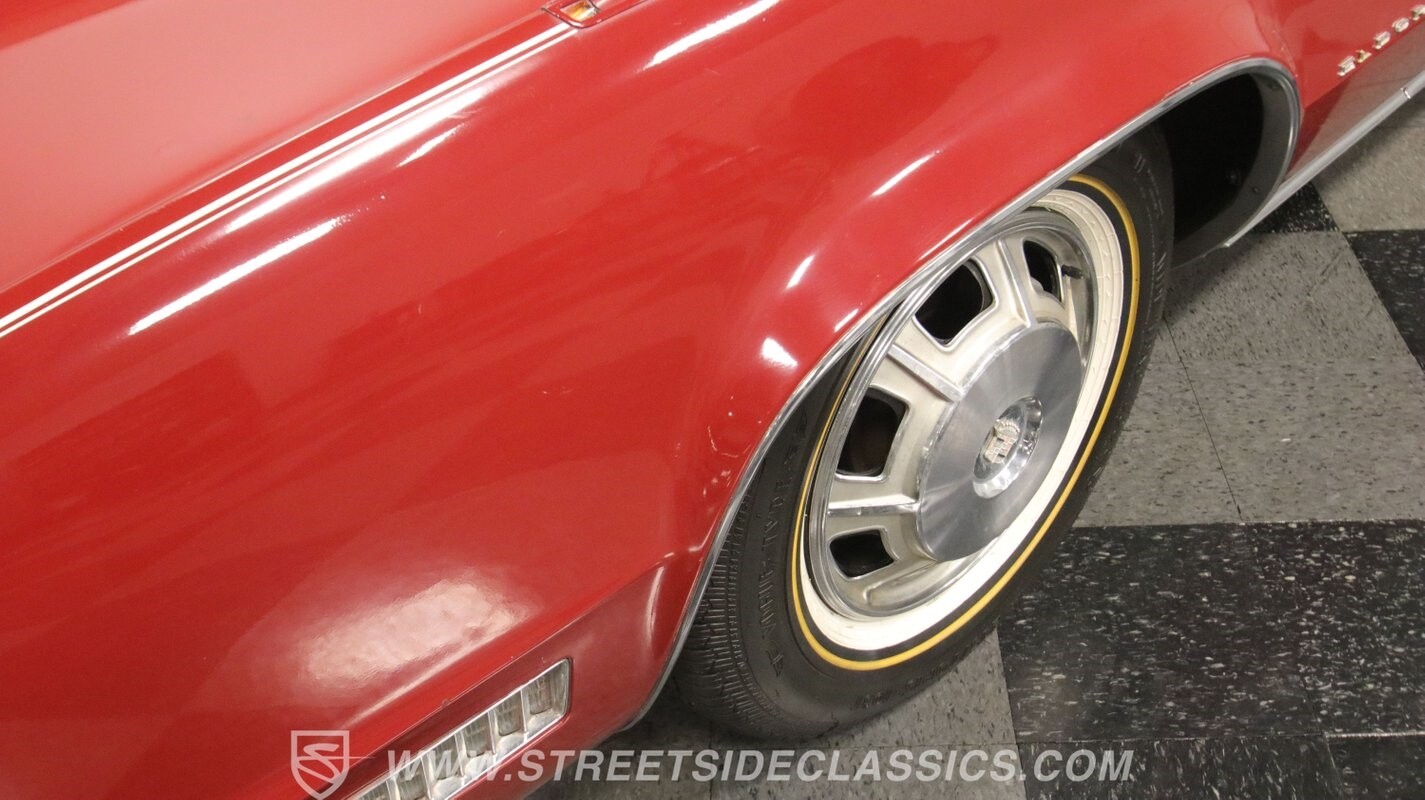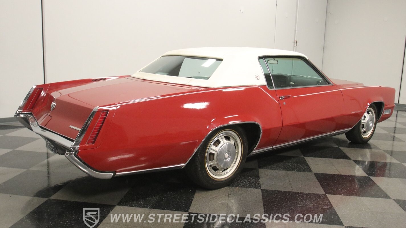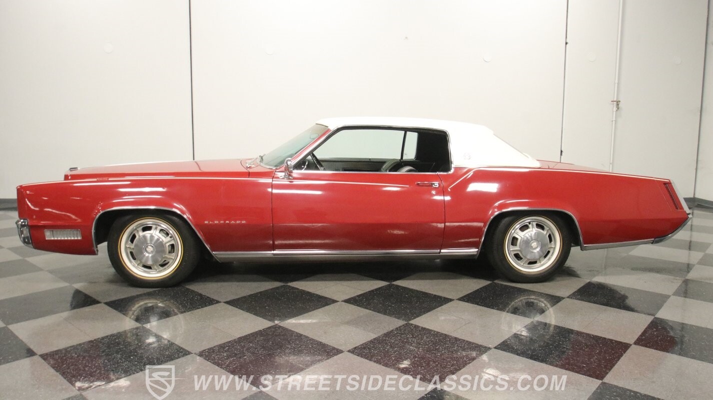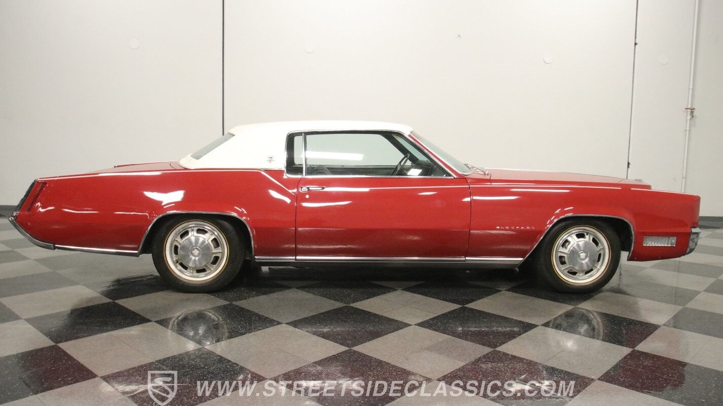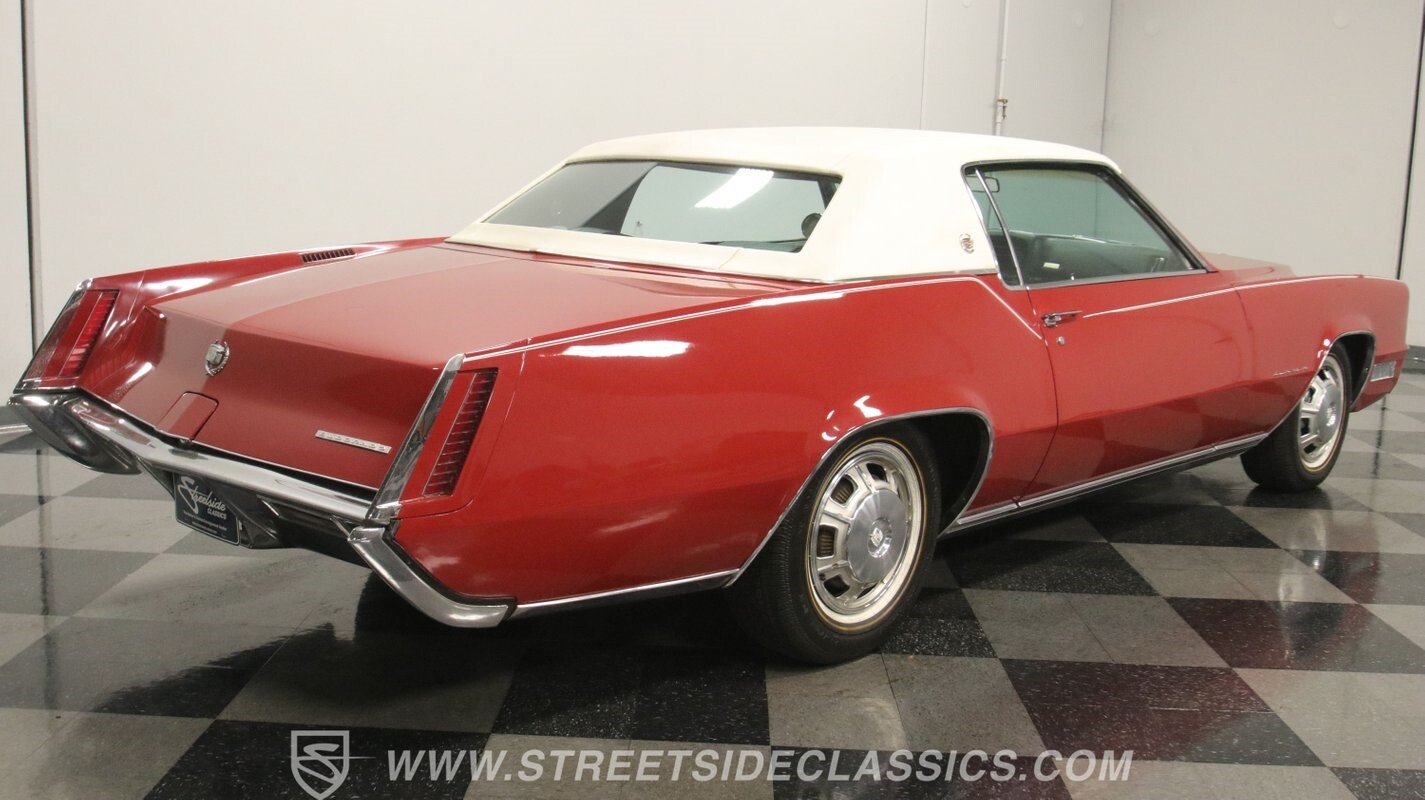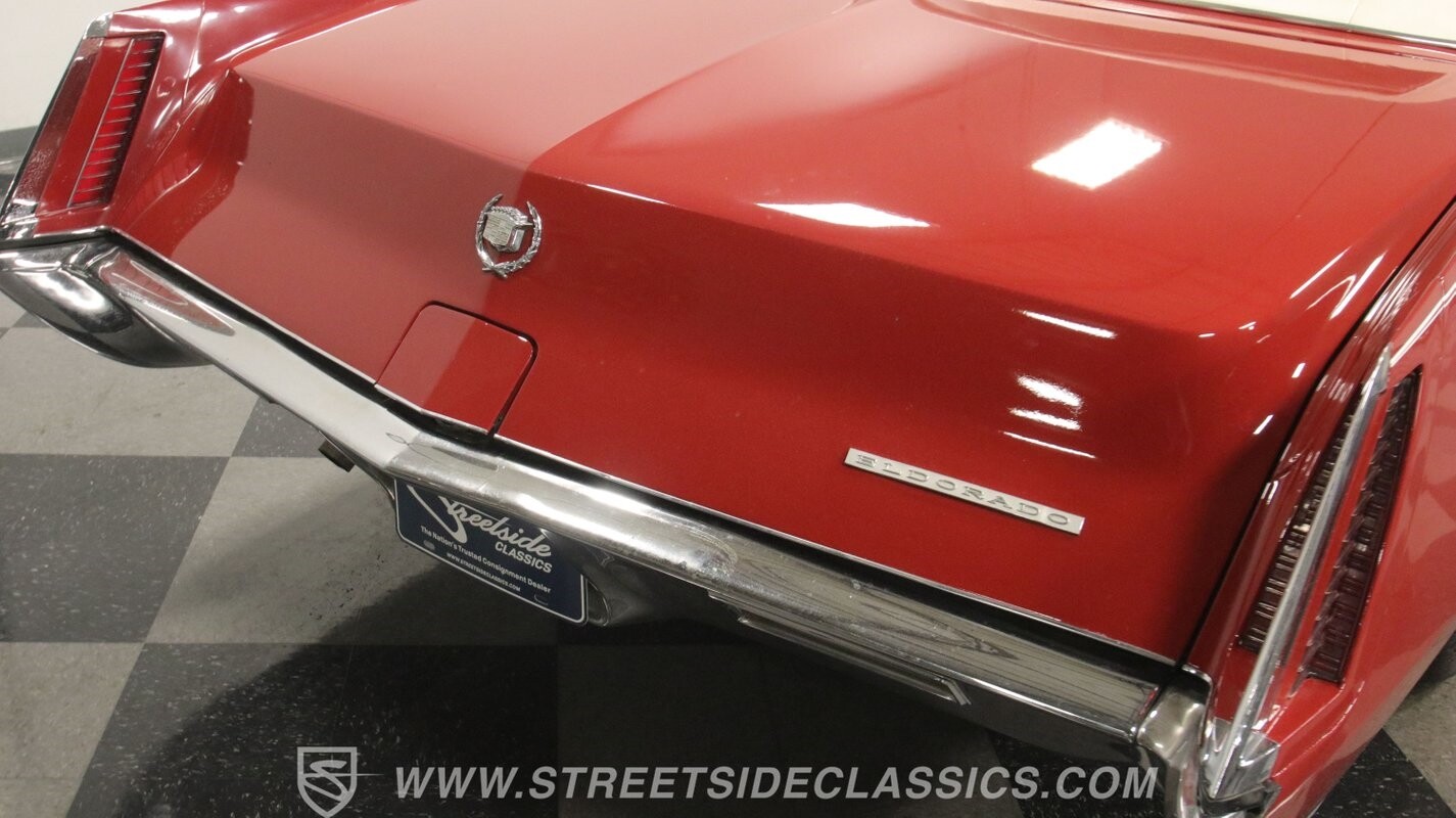 The Eldorado had always been reserved for premium distinction, and that took on a whole new dimension for 1967. Available only as a coupe, it was more expensive than even a DeVille convertible, and that's why it's rarer. It placed Cadillac firmly in the epicenter of the late 1960s by giving a muscle car kind of look... still while not losing its premium values. It had a bold front end with hidden headlights, even sleeker lines than its jet-age predecessors, and an imposing width that wanted to own the road. The red has a cool style with the white vinyl top and matching pinstripe, and the bumpers made sure to hug the sharp angles of the car's form. That's how you know this is rolling opulence. So while you may decide to do a respray or other improvements, there's something fundamentally attractive when something this significant is also complete and correct - right down to the wheel covers.