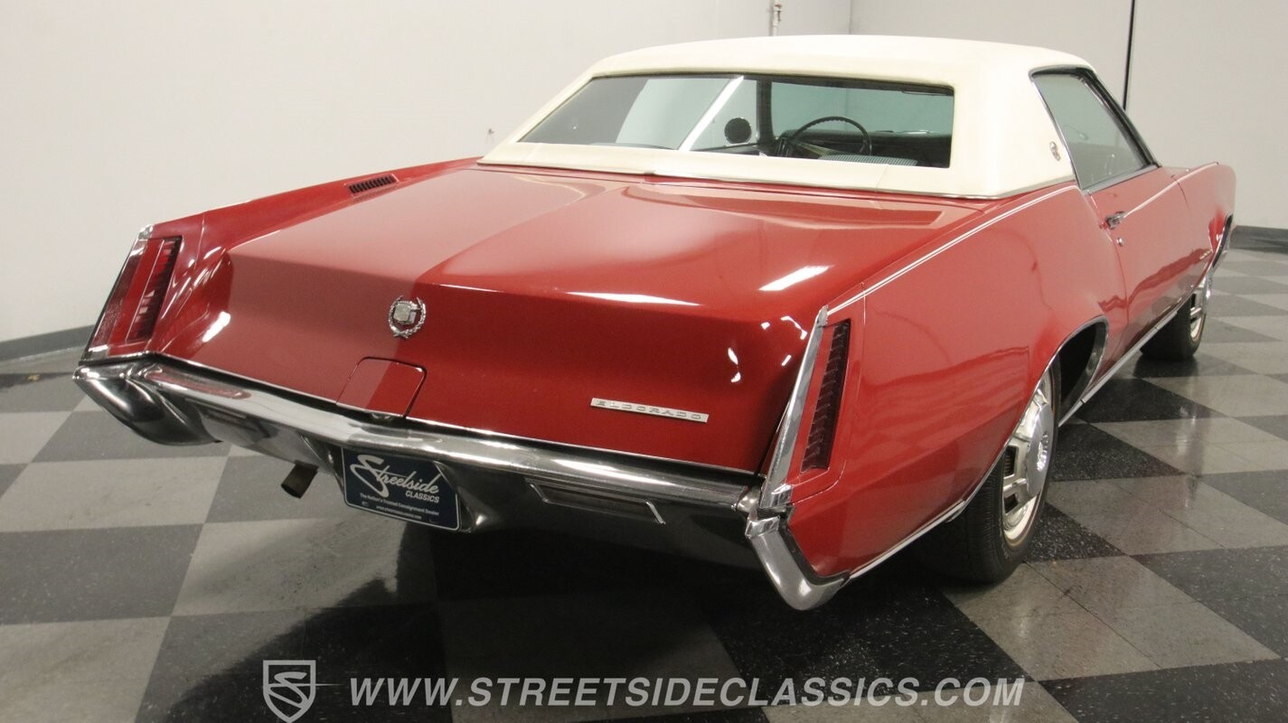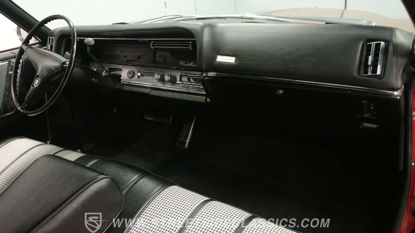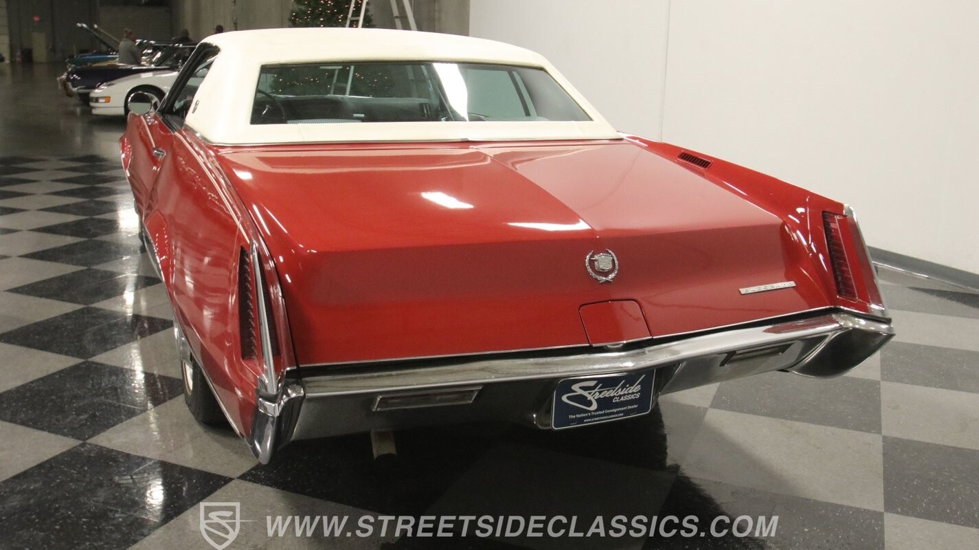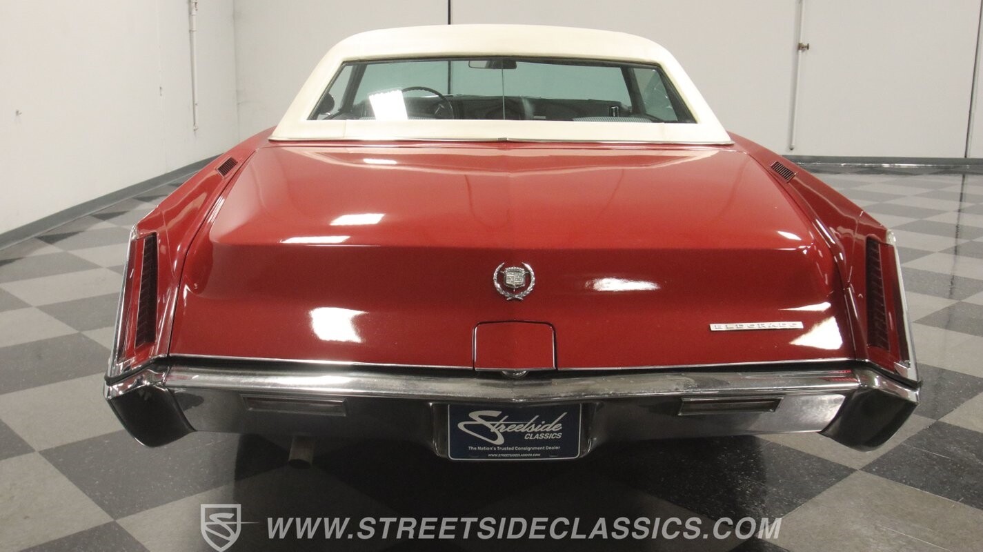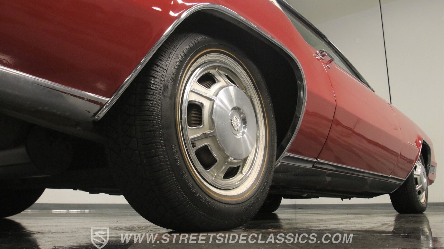 The Eldorado had always been reserved for premium distinction, and that took on a whole new dimension for 1967. Available only as a coupe, it was more expensive than even a DeVille convertible, and that's why it's rarer. It placed Cadillac firmly in the epicenter of the late 1960s by giving a muscle car kind of look... still while not losing its premium values. It had a bold front end with hidden headlights, even sleeker lines than its jet-age predecessors, and an imposing width that wanted to own the road. The red has a cool style with the white vinyl top and matching pinstripe, and the bumpers made sure to hug the sharp angles of the car's form. That's how you know this is rolling opulence. So while you may decide to do a respray or other improvements, there's something fundamentally attractive when something this significant is also complete and correct - right down to the wheel covers.