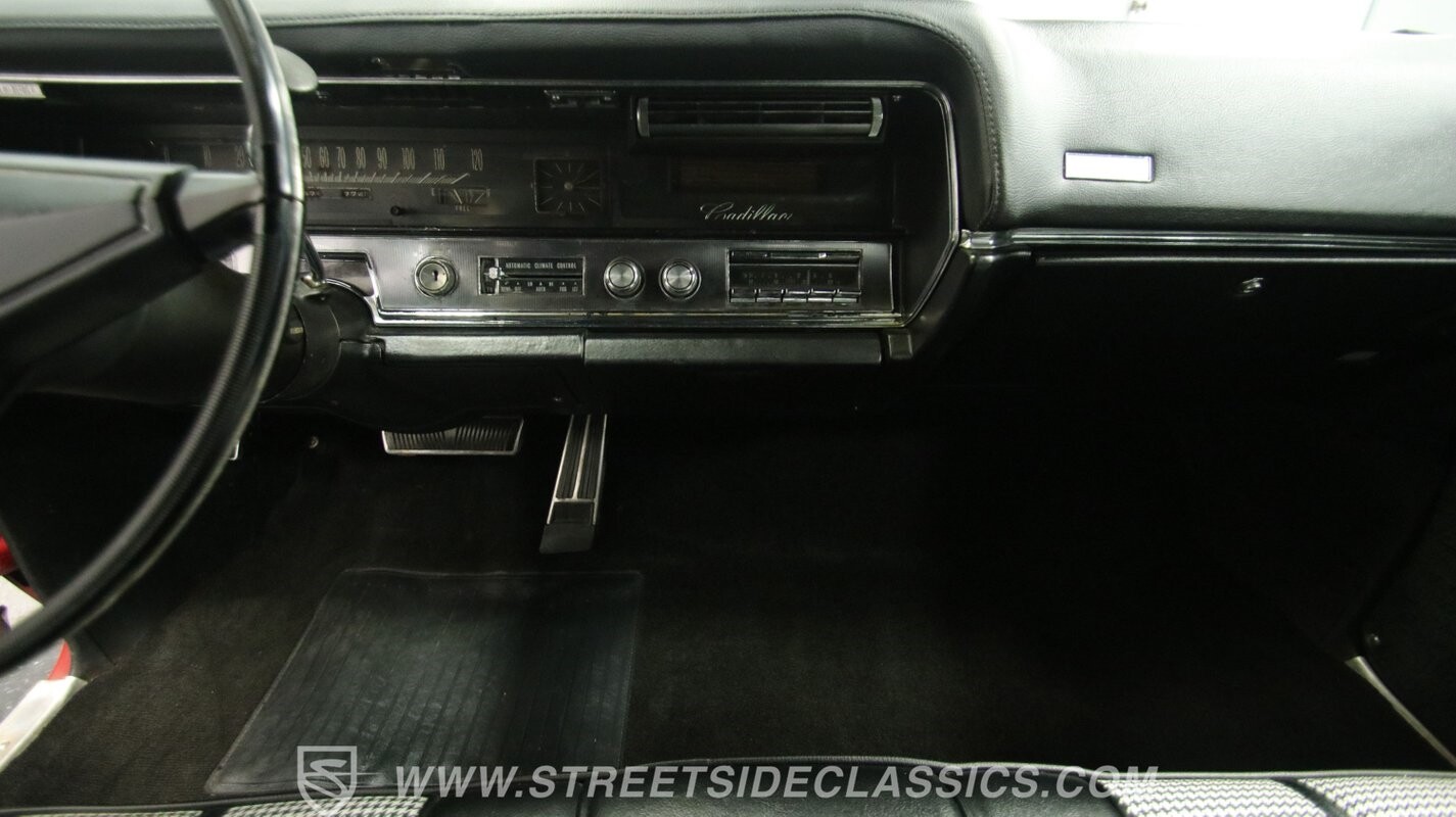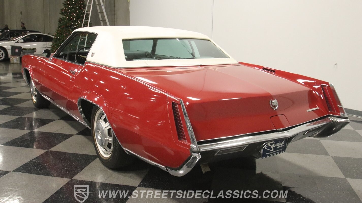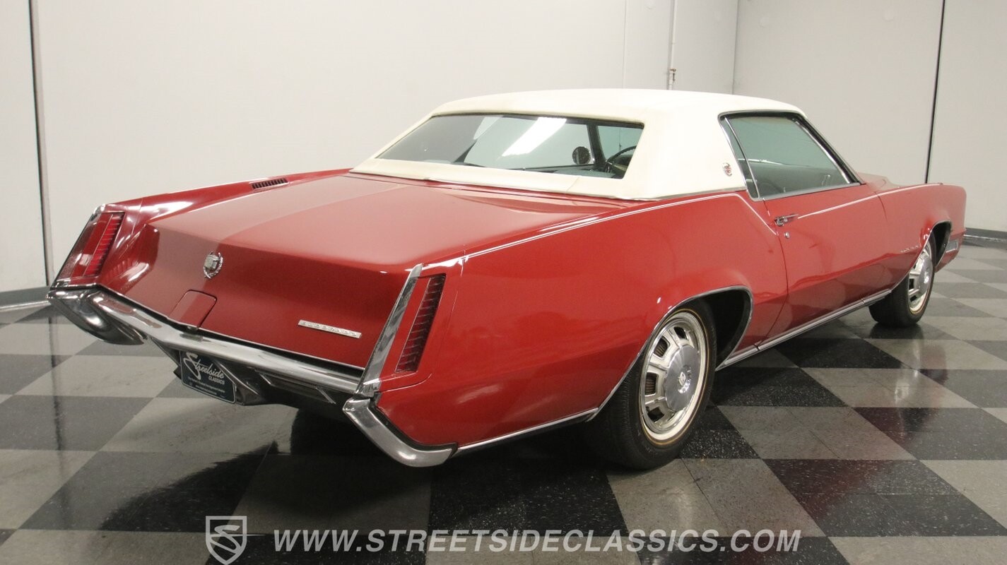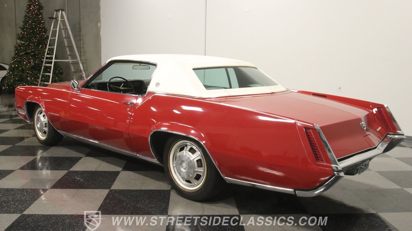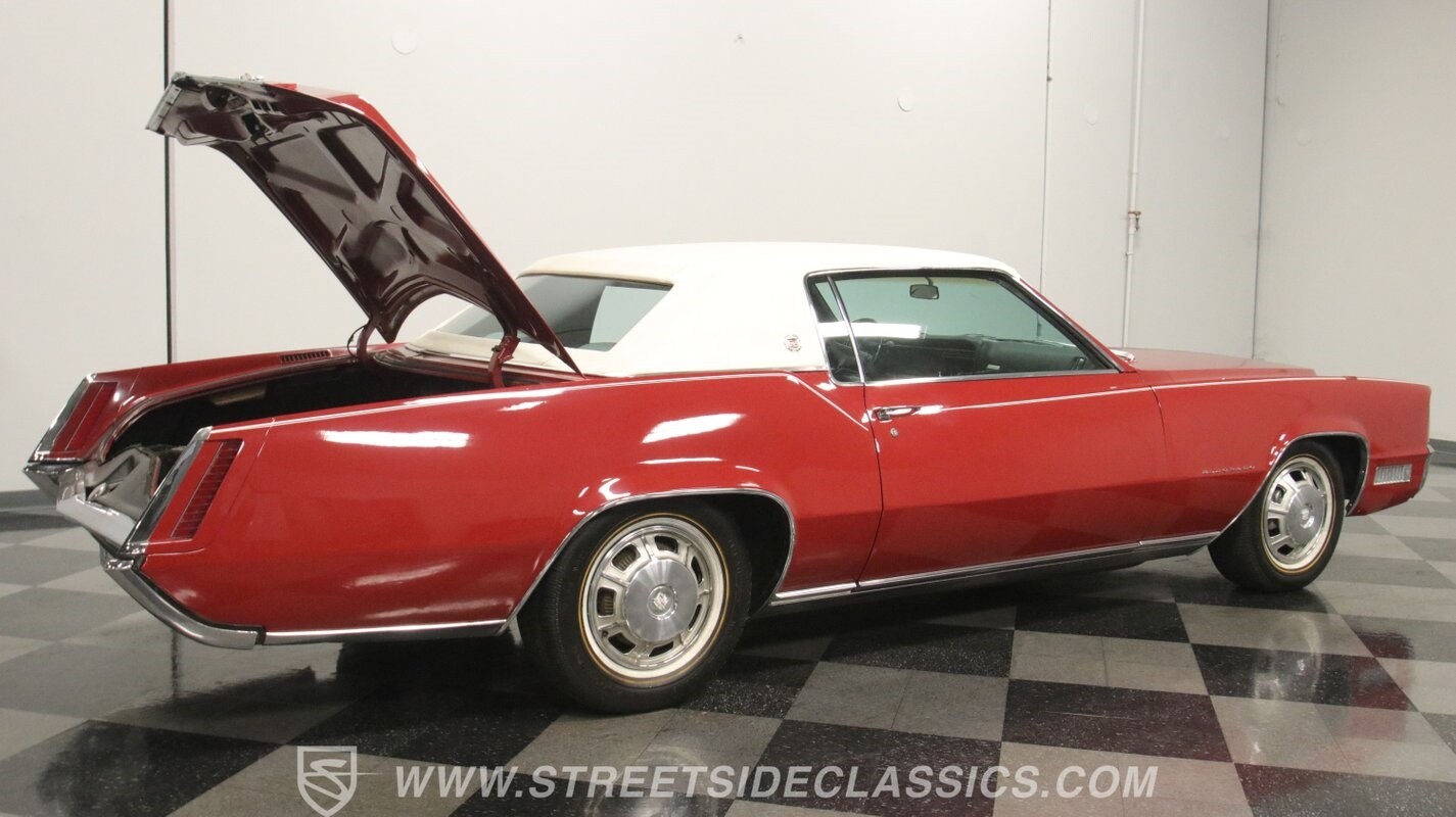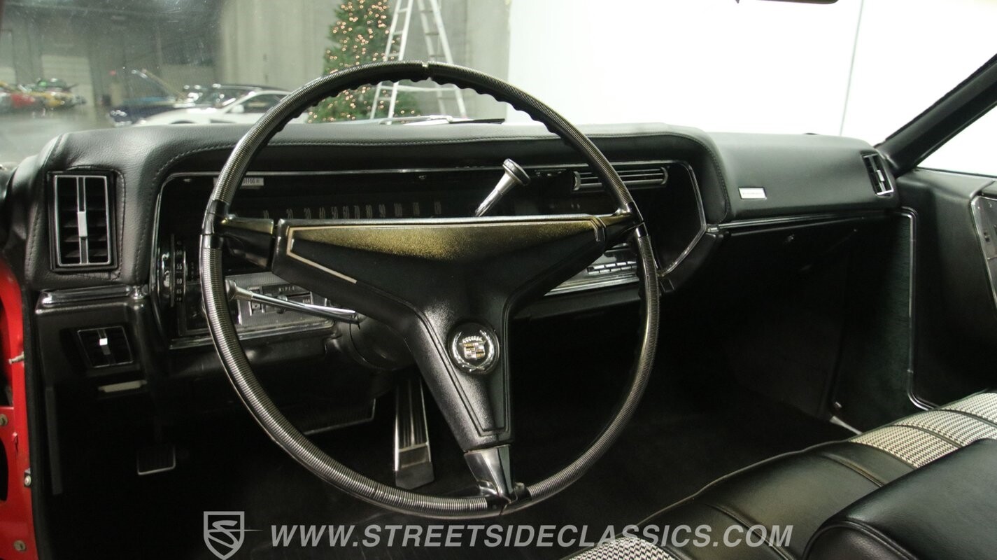 The Eldorado had always been reserved for premium distinction, and that took on a whole new dimension for 1967. Available only as a coupe, it was more expensive than even a DeVille convertible, and that's why it's rarer. It placed Cadillac firmly in the epicenter of the late 1960s by giving a muscle car kind of look... still while not losing its premium values. It had a bold front end with hidden headlights, even sleeker lines than its jet-age predecessors, and an imposing width that wanted to own the road. The red has a cool style with the white vinyl top and matching pinstripe, and the bumpers made sure to hug the sharp angles of the car's form. That's how you know this is rolling opulence. So while you may decide to do a respray or other improvements, there's something fundamentally attractive when something this significant is also complete and correct - right down to the wheel covers.