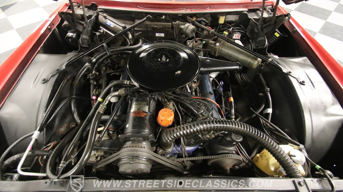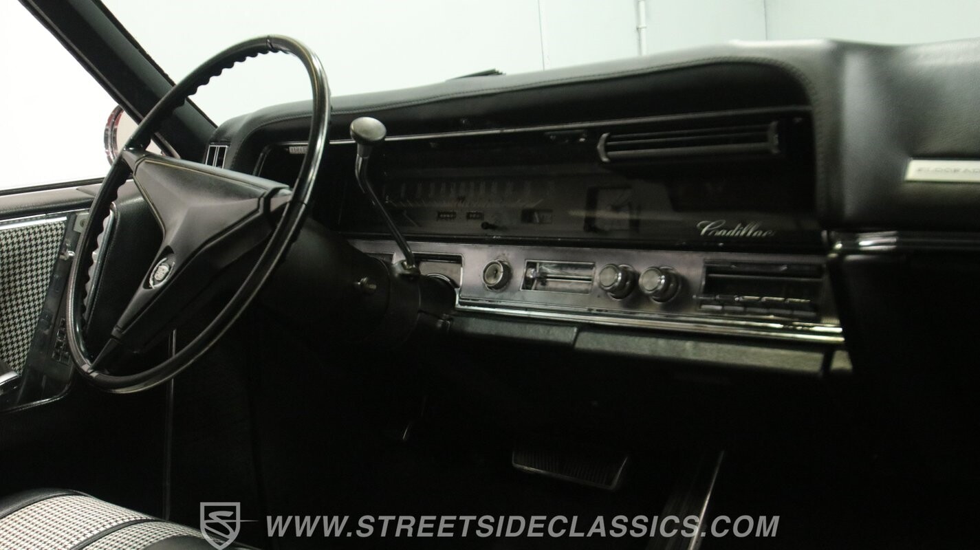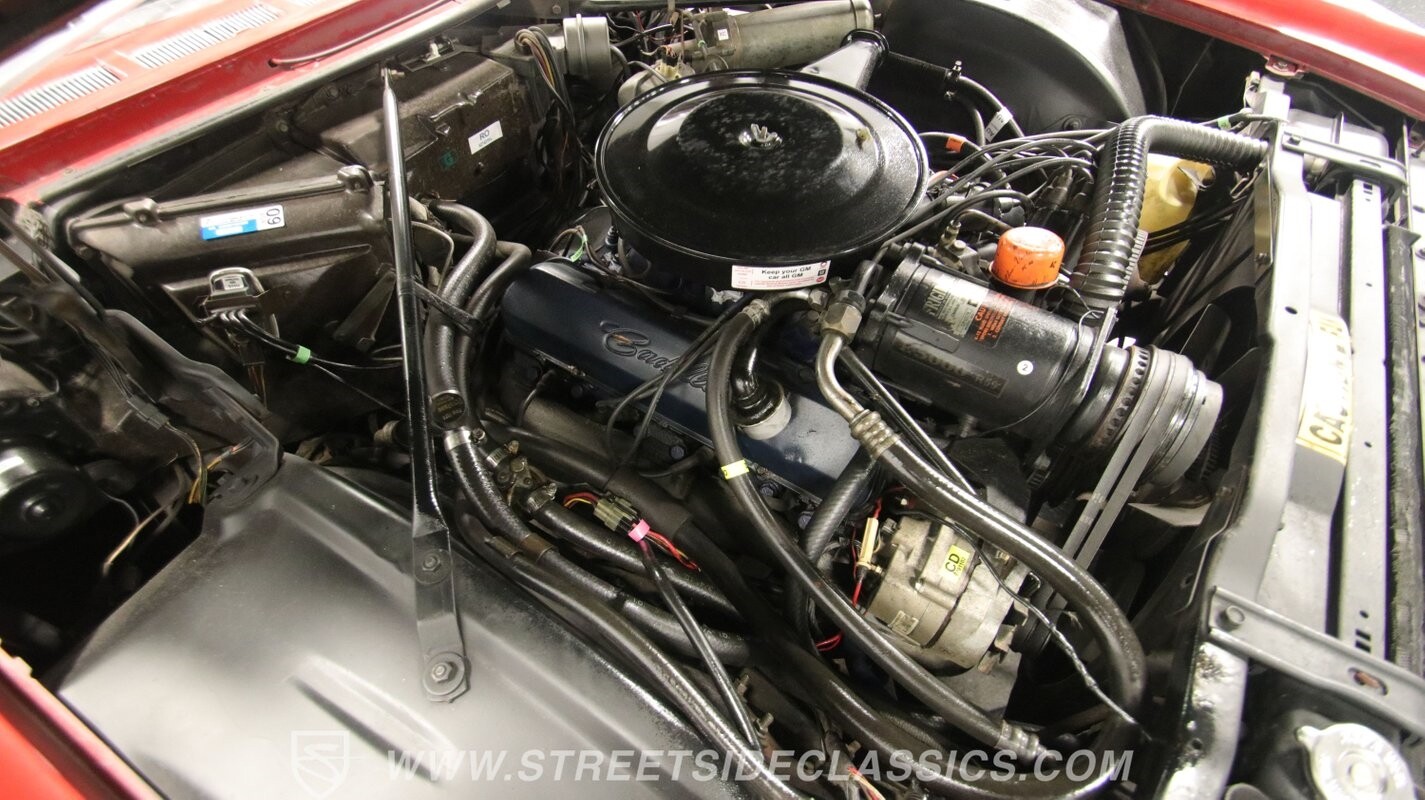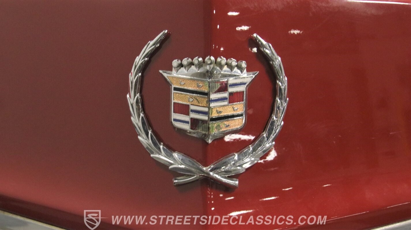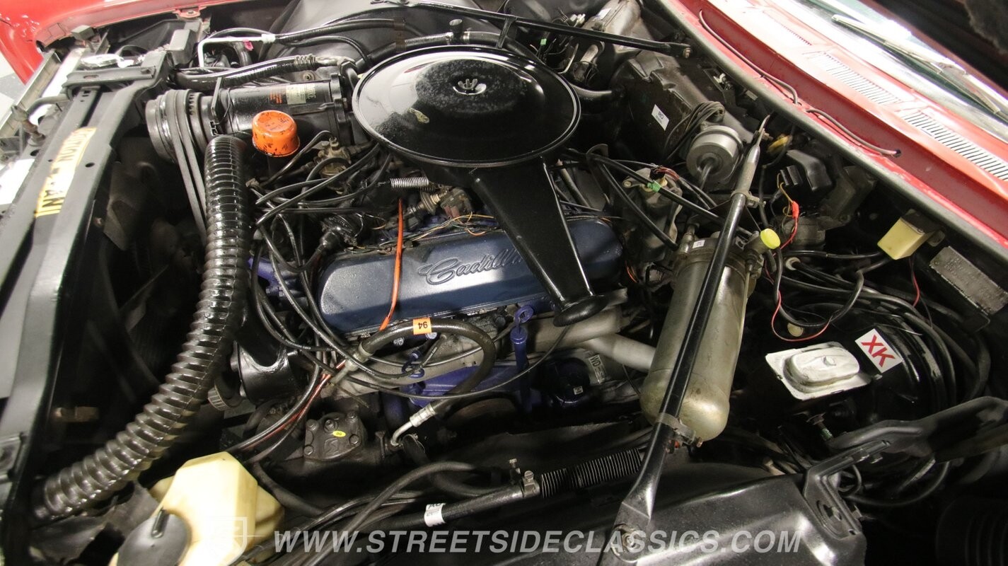The 429 cubic-inch motor fills the engine bay. There is an honest style and this V8 keeps its original spirit right down to the correct-style four-barrel carburetor. It's a torque-filled powerhouse built before emissions regulations, and so it lives up to its muscle car kind of style. But this is not a bruiser; it's a cruiser. The unique front-wheel-drive setup puts the motor's weight over the driving wheels, and it also allows for that flat floor inside where everyone can spread out. And you have a three-speed automatic transmission, power steering, and power brakes with front discs to make sure driving this classic still gives you Caddy-style comfort.