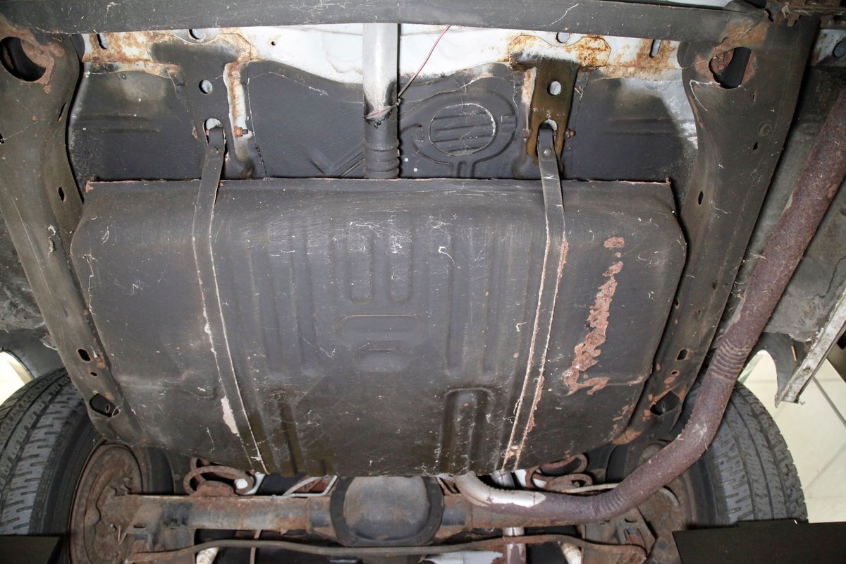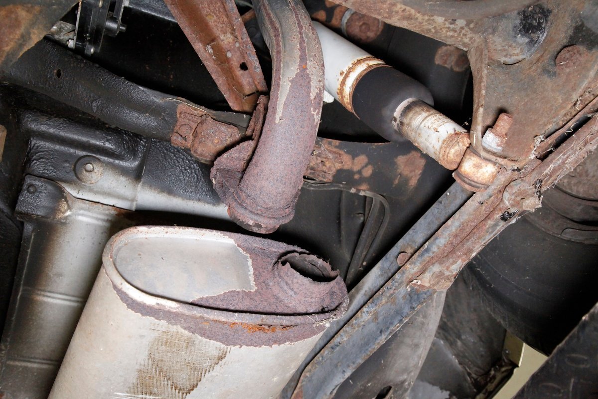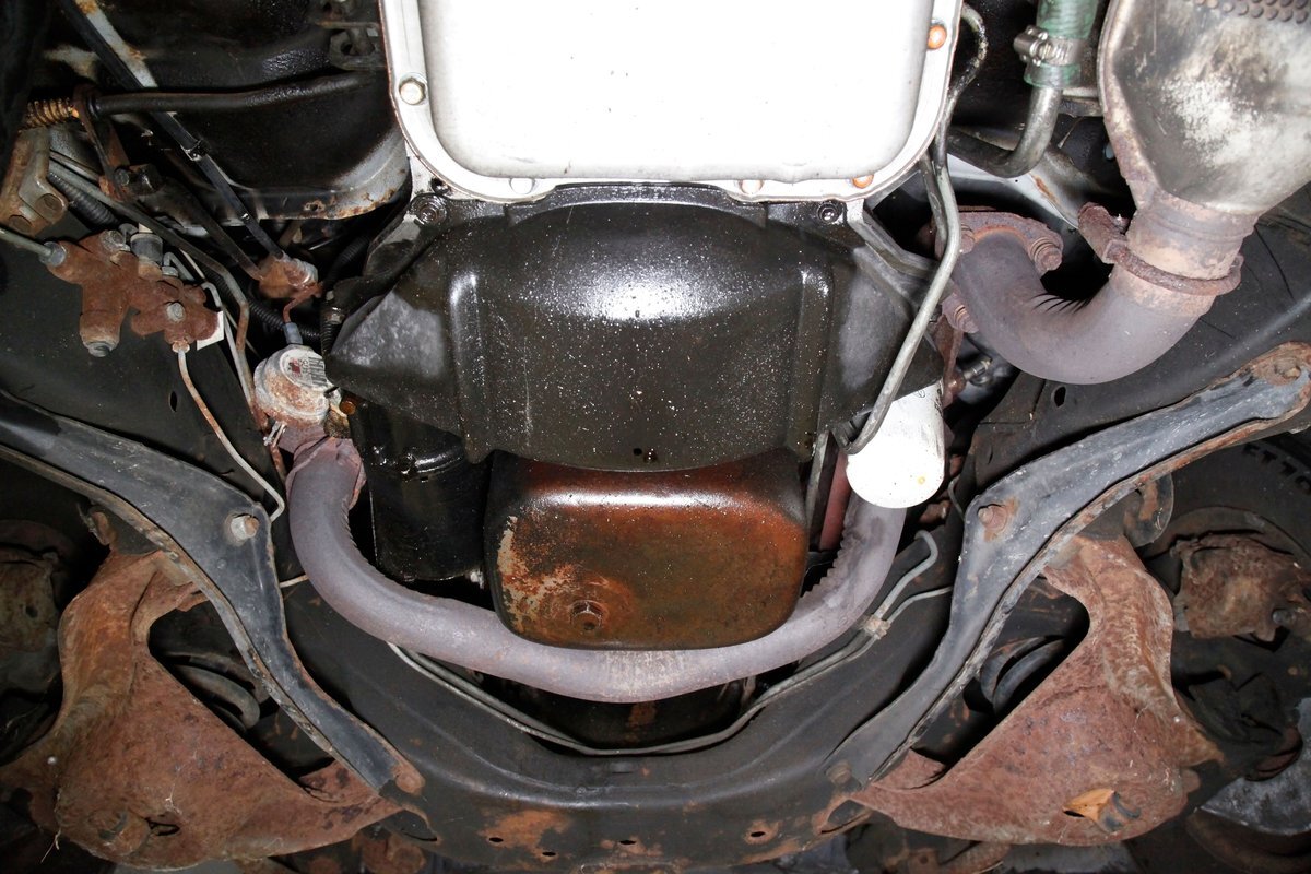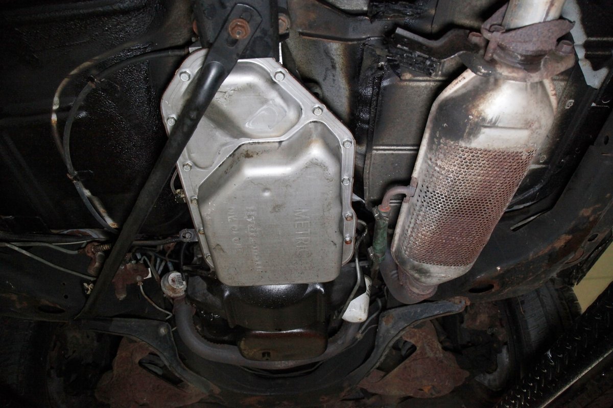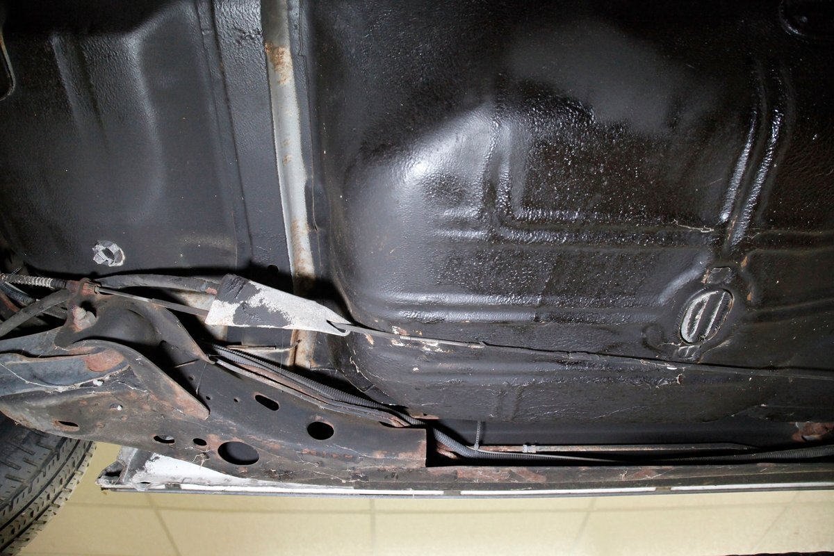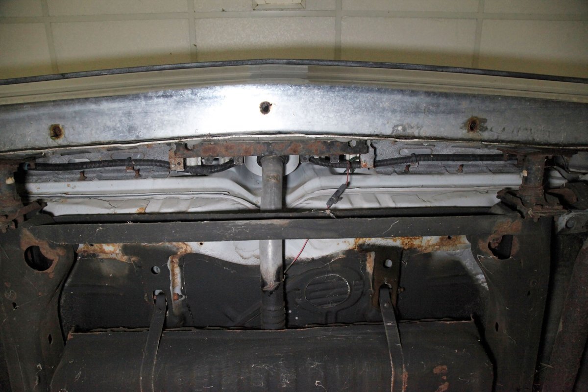 Up on the lift and it can be proven from the appearance that this is a well cared for car. All surfaces are clean save for some road splatter over sparse surface rust and solid body on framing all covered in black undercoating. Independent coil springs up front and 4 link with coil springs for the back provide the cushy rode, and power disc fronts and power drums backs provide the stopping.