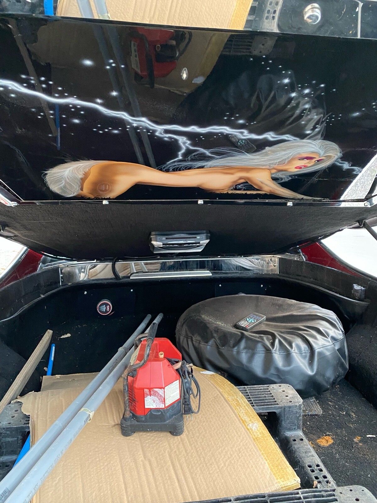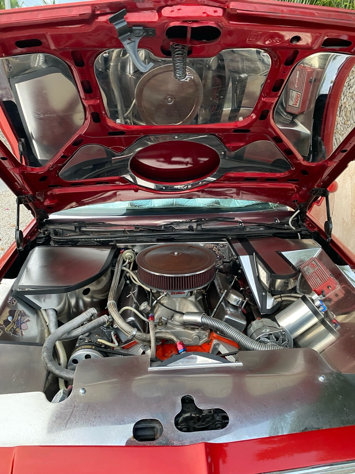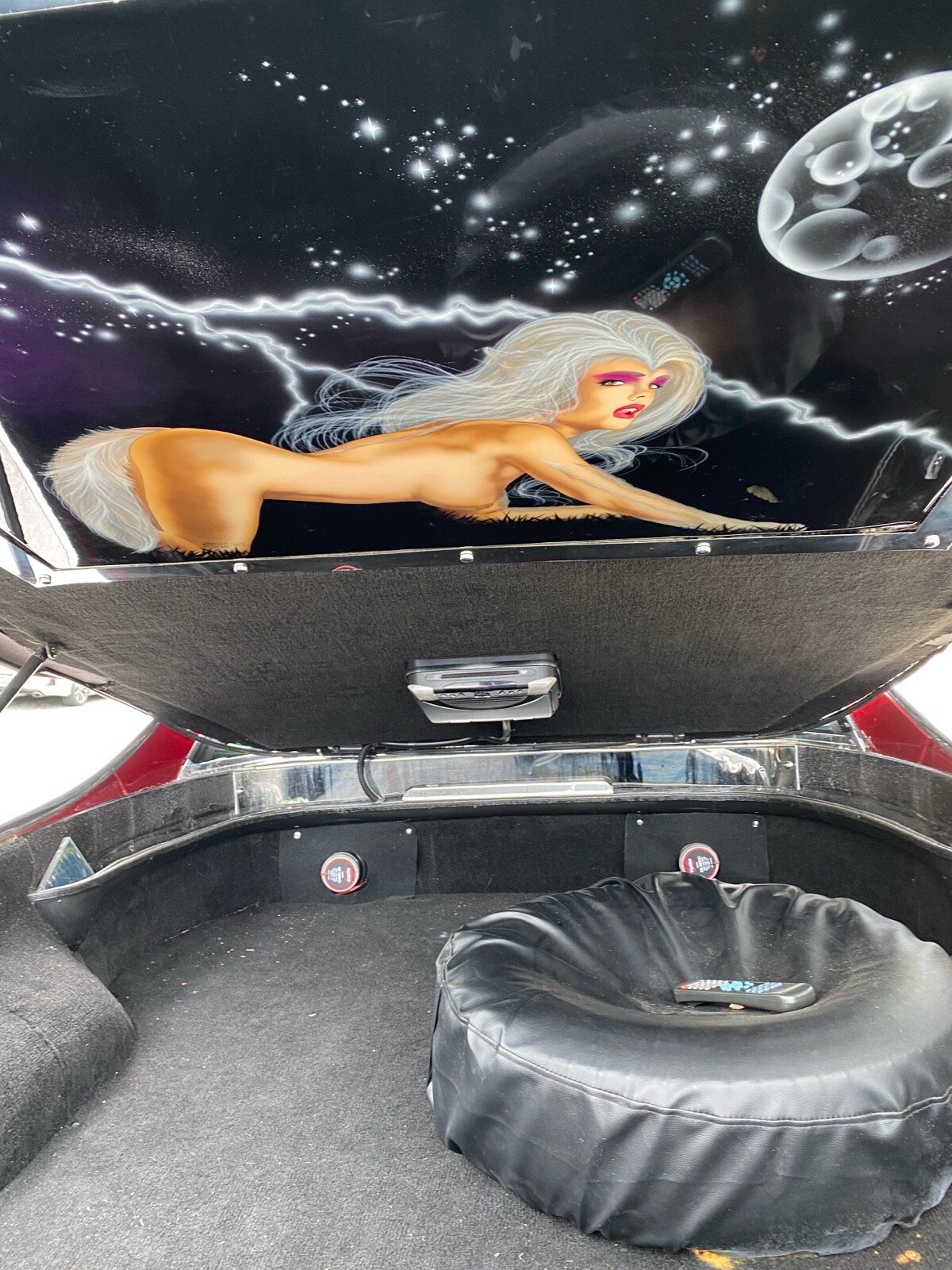 It has chrome everywhere under the hood, under truck bed , also has a mural and DVD player with video showing the tear down and all work done. See some of the still pics below, car was stripped. Bucket seats, it’s loud and powerful. It was rebuilt, stripped around 2017. in 2022, due to some minor hurricane damage that has all been repaired. See pics prior to restoration to show its extent. This is a fun car, great deal. I thought I could download a video but cant. The car starts first twist of the key. I bought a new battery. No rust under car, just some on top of doors and very little in the jam, see photos. Live Video available, if serious buyer.