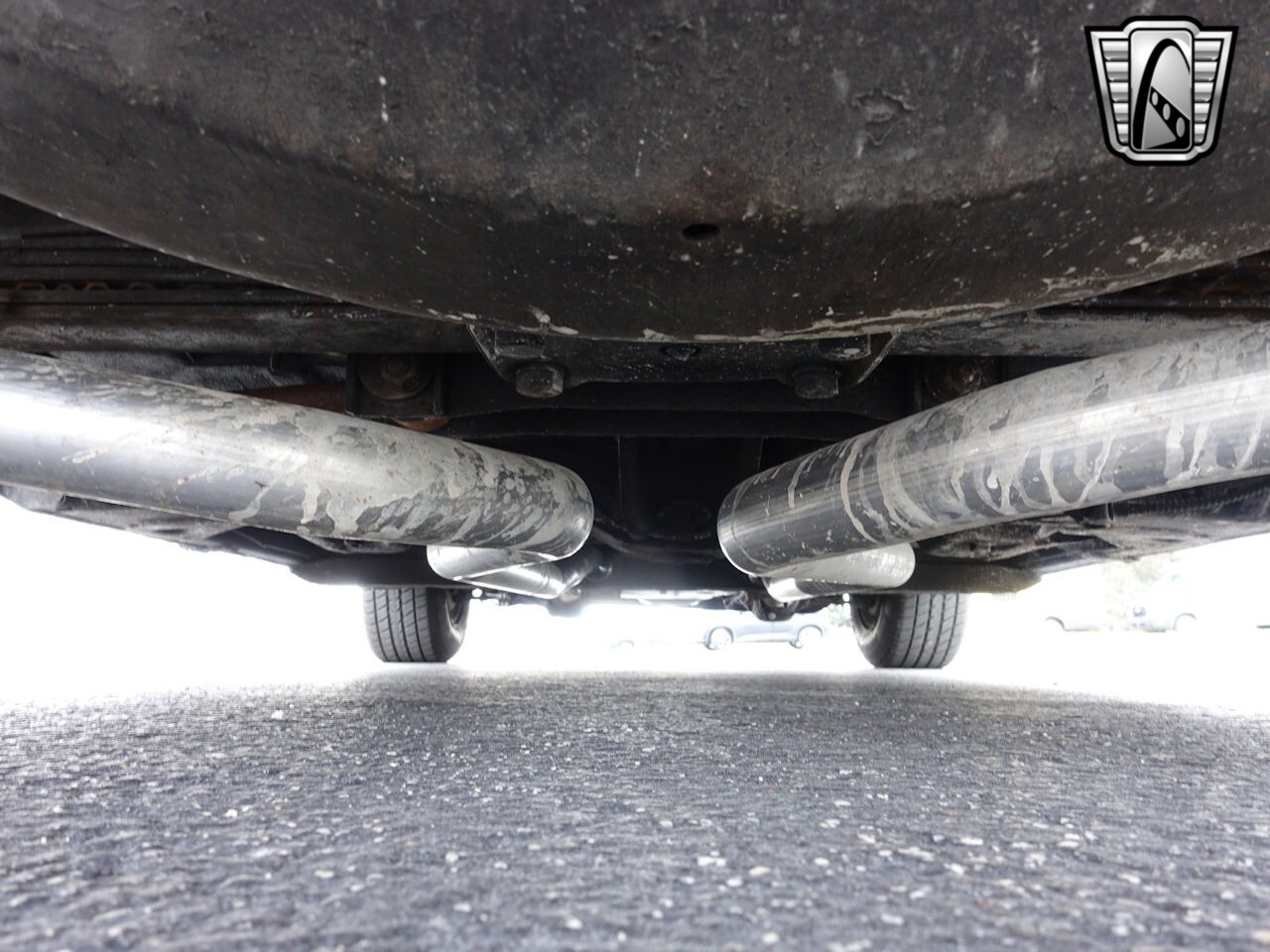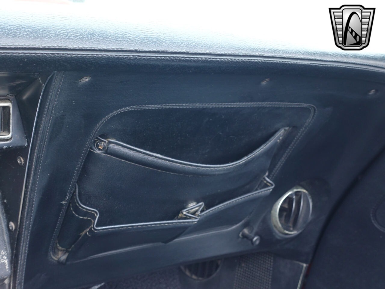 The interior of the car is a blend of comfort and style, featuring both leather and vinyl finishes. The black leather seats provide a comfortable ride, while the vinyl interior adds a touch of classic style.