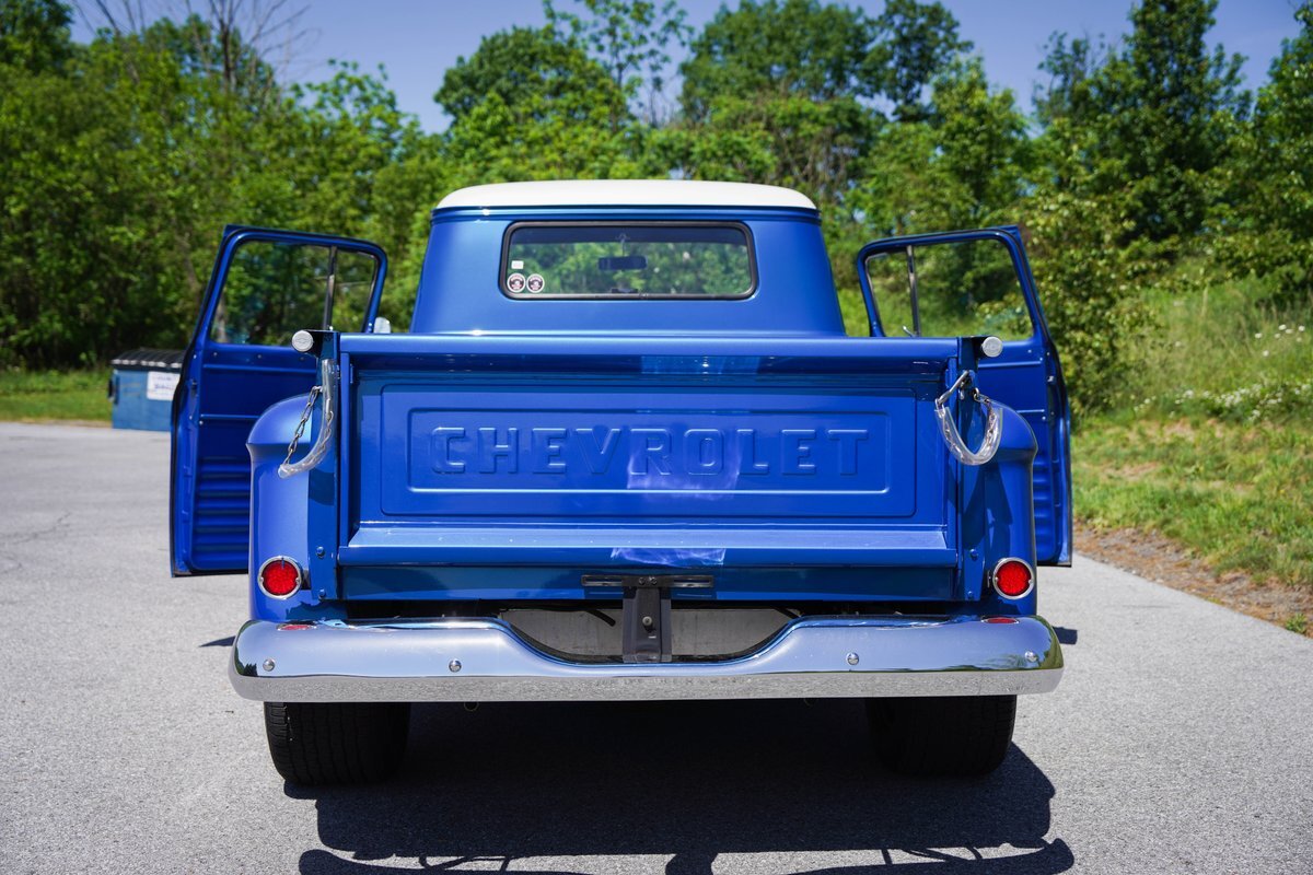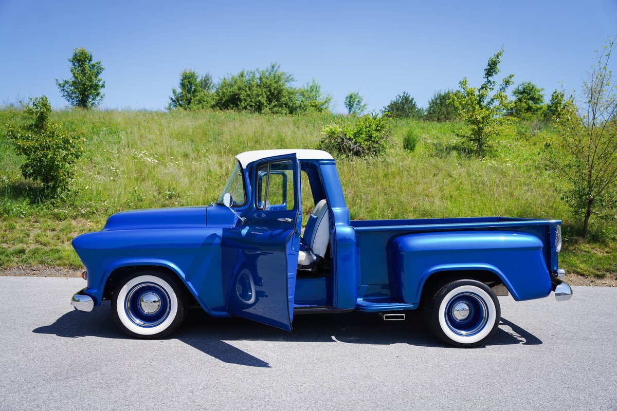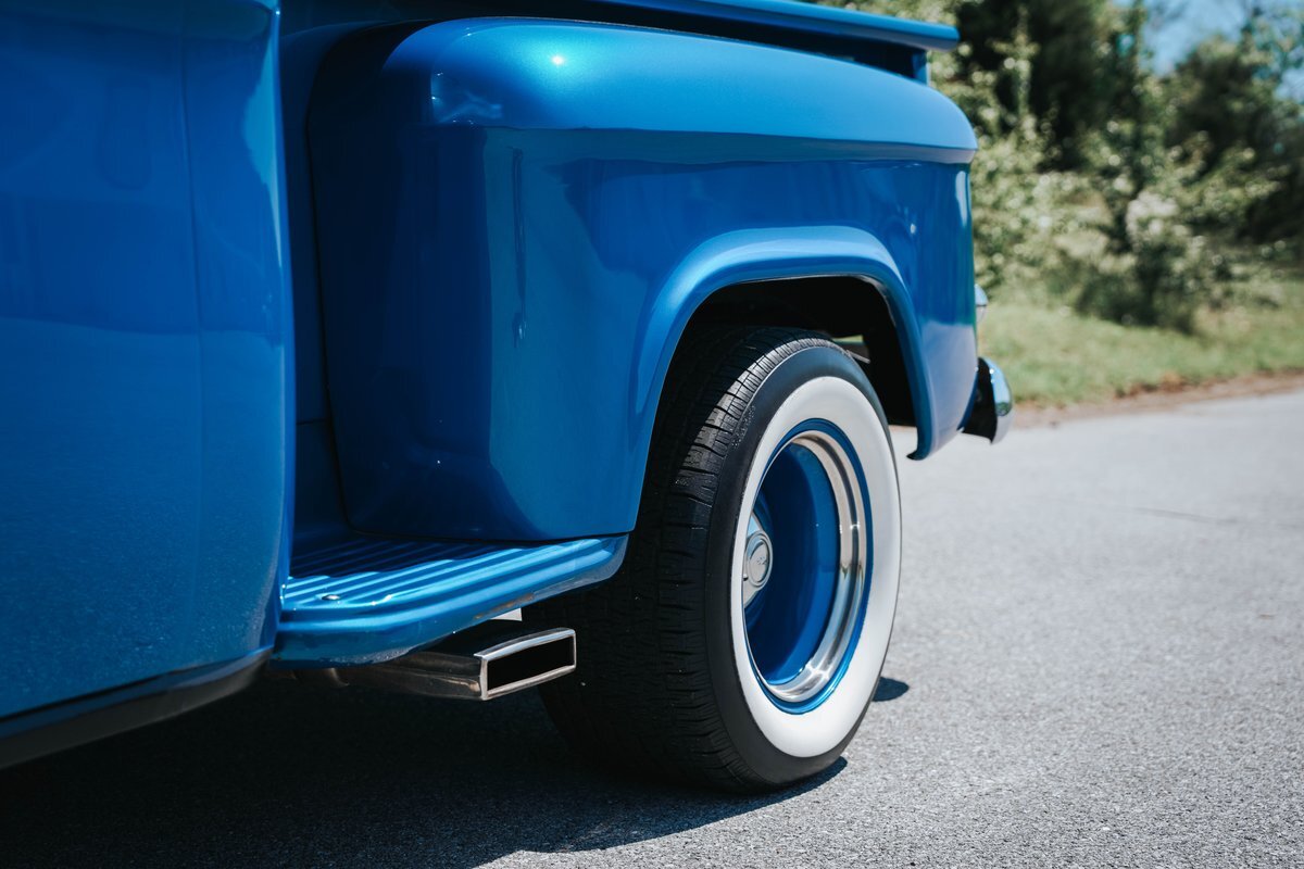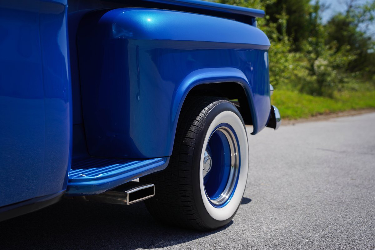 This stunning 1956 Chevy 3100 truck combines classic style with modern upgrades, making it a standout. The MSD Atomic EFI ensures optimal performance and fuel efficiency, setting it apart from others on the market. Additionally, the four-wheel disc brake conversion provides superior stopping power. Don't miss the chance to own this beautifully maintained piece of automotive history.