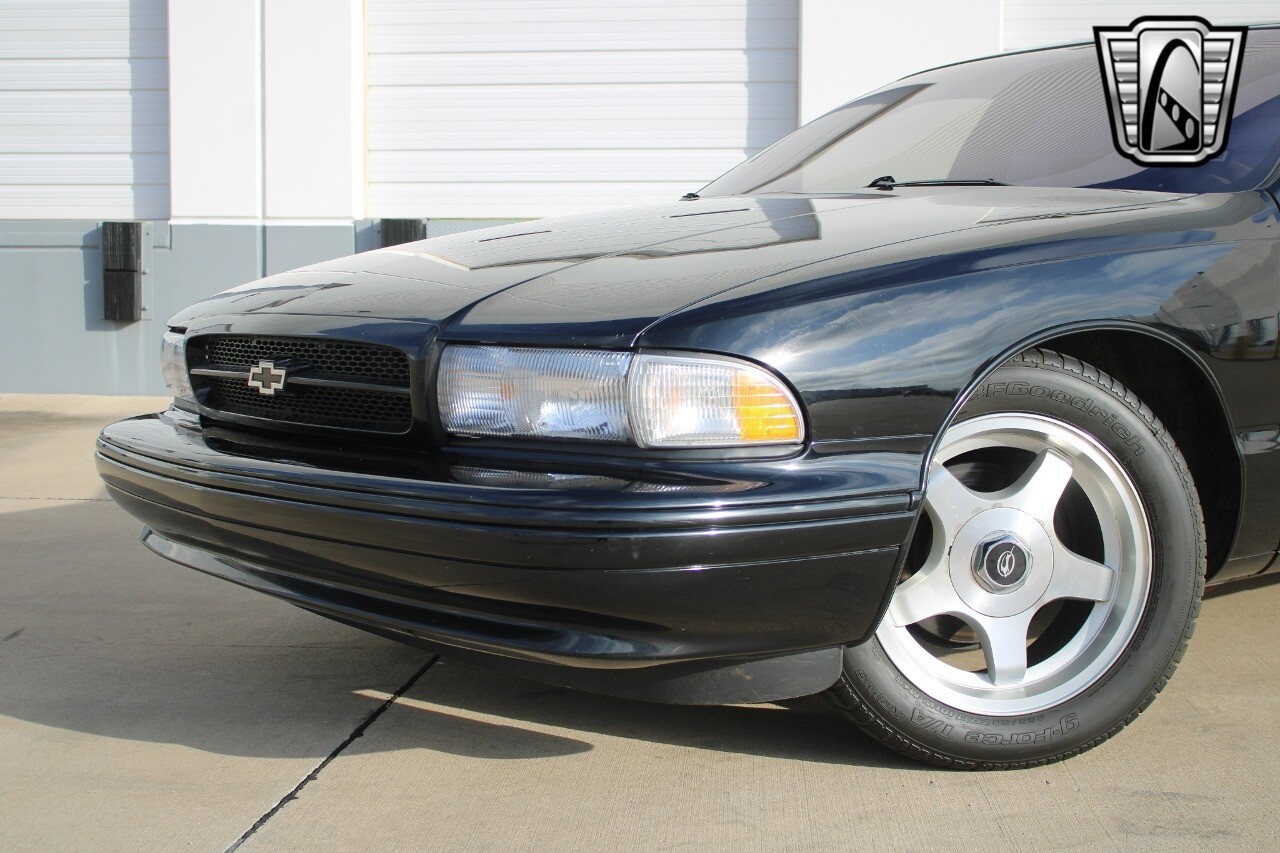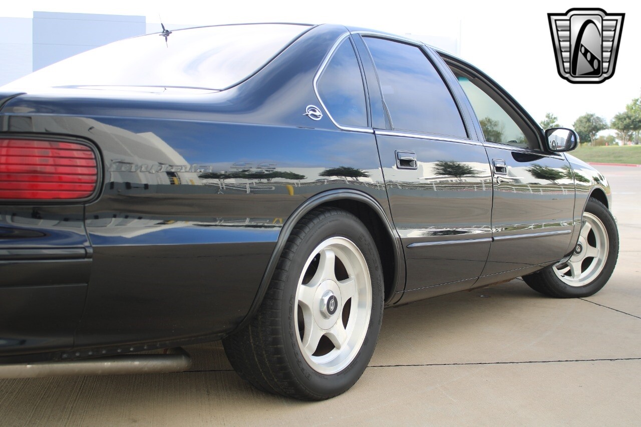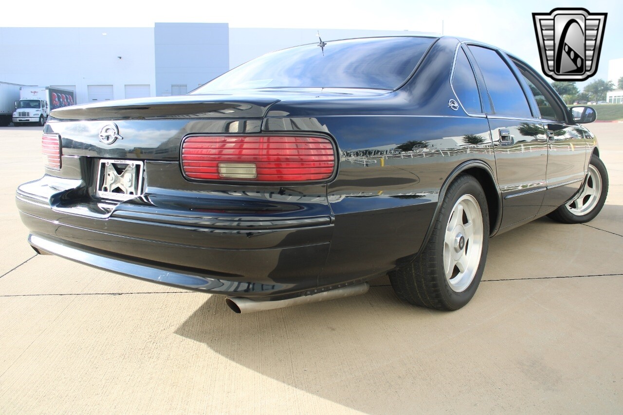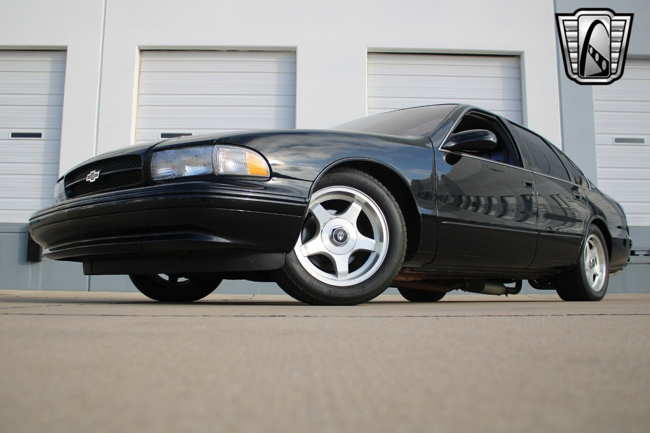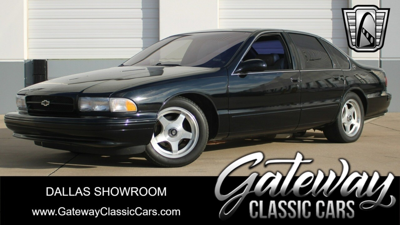Gateway Classic Cars of Dallas is proud to present this 1996 Chevrolet Impala SS for sale. This Impala SS is Black with grey leather interior. In the early 90s full size muscle cars were a thing of the past. GMs special vehicles team received an order to develop a car based on the full-size Caprice platform. They took a black Caprice with the 9C1 Police Package, added five-spoke wheels, dropped in the LT1 V8 from the Corvette, dressed it with Impala SS badges which GM had not used since 1969, and created an instant classic. Its LT1 was slightly different than the Corvettes 300 hp version, with 2-bolt mains, cast-iron cylinder heads and a different camshaft. It was rated 260 hp in the Impala with 330 lb. Ft of torque. With beefy anti-roll bars, large 17-inch tires and big 12-inch disc brakes they also handled and stopped incredibly well for their size and weight. The same critics that had been bashing the Caprice now had only praise for the full-size muscle car, from its performance to the comfort of its front bucket seats. Acceleration is smooth, without hesitation or lag. There is no pausing for a gulp of breath when you step on the pedal. The 5.7 wants to run. But it is the suspension that really sets the Impala SS apart. The front suspension has steel-alloy springs and a thick sway bar, it is the same one that is in the Caprice. The rear suspension, with its gas shocks, steel springs and sway bar, is the same as Chevy's police package. It is the suspension that makes Impala a handling Beast and sets it apart. This Impala SS is equipped with air conditioning, AM FM with CD, power brakes and power steering, power windows and power locks, tilt wheel and cruise control, dual airbags, keyless entry, power mirrors, alloy wheels and radial tires. [ omitted ]. [ omitted ]. [ omitted ].