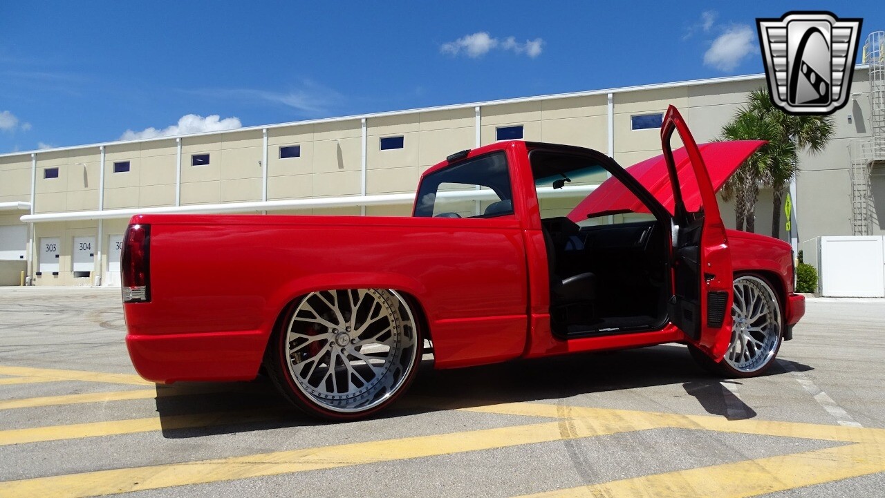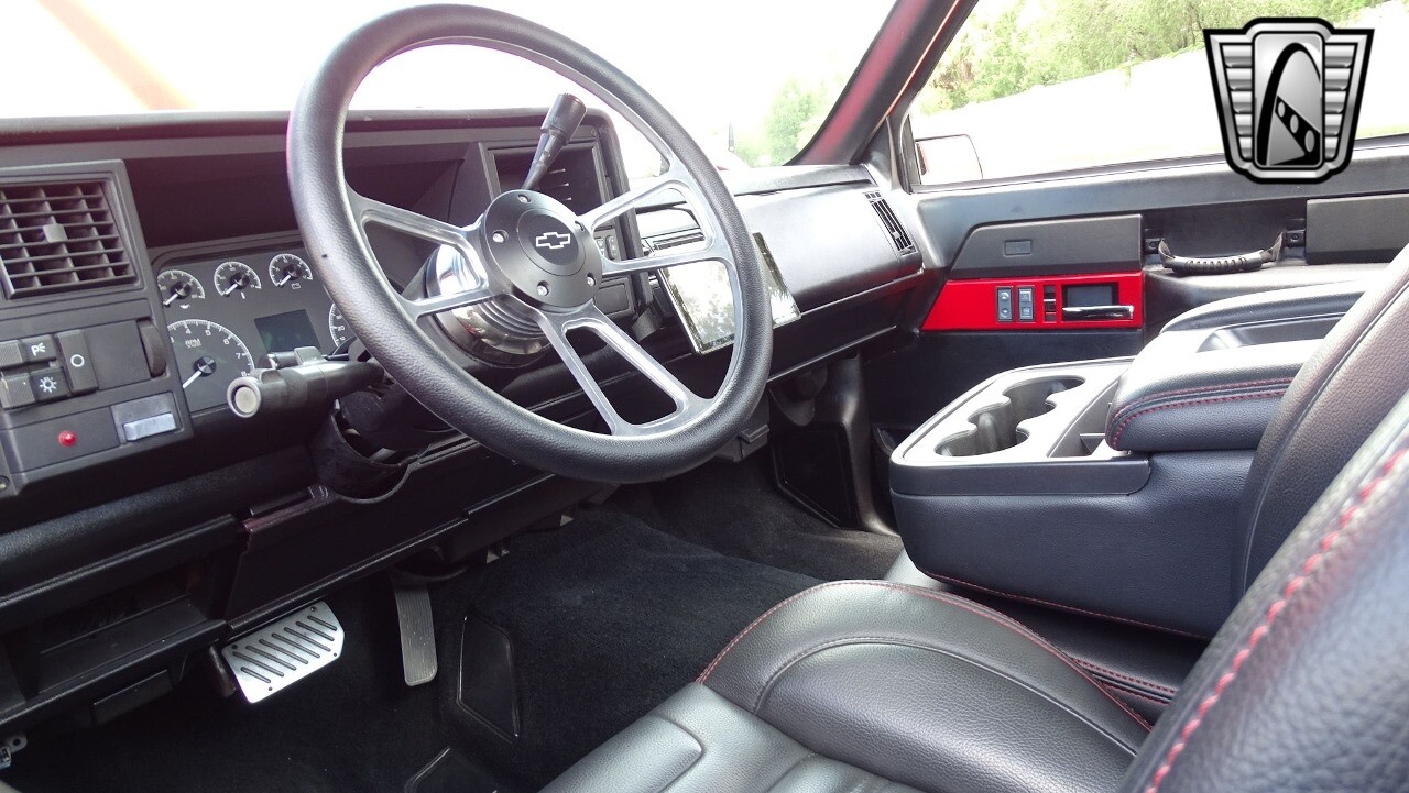 Introducing the 1991 Chevrolet 1500, a classic pickup truck that combines power, style, and comfort. This model is finished in a striking red exterior color that is sure to turn heads wherever you go. The black leather interior adds a touch of luxury and sophistication, making every drive a pleasure.