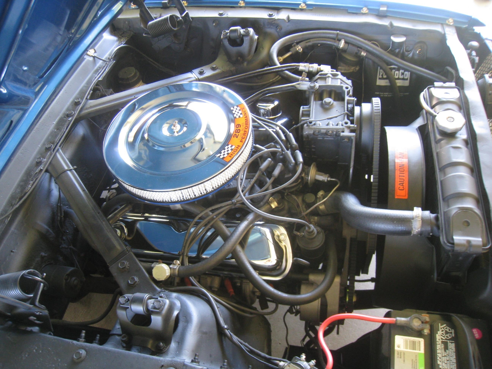 Engine is the 289 engine with a C4 Auto Transmission. the interior looks niiiiiiiiiiiice. nice and clean engine compartment. Equipped with factory powersteering and Air Conditioning which us old folks love on classic cars.