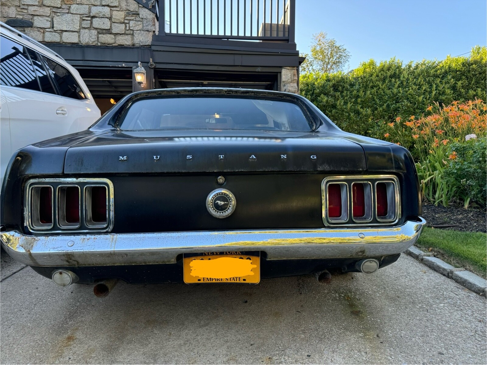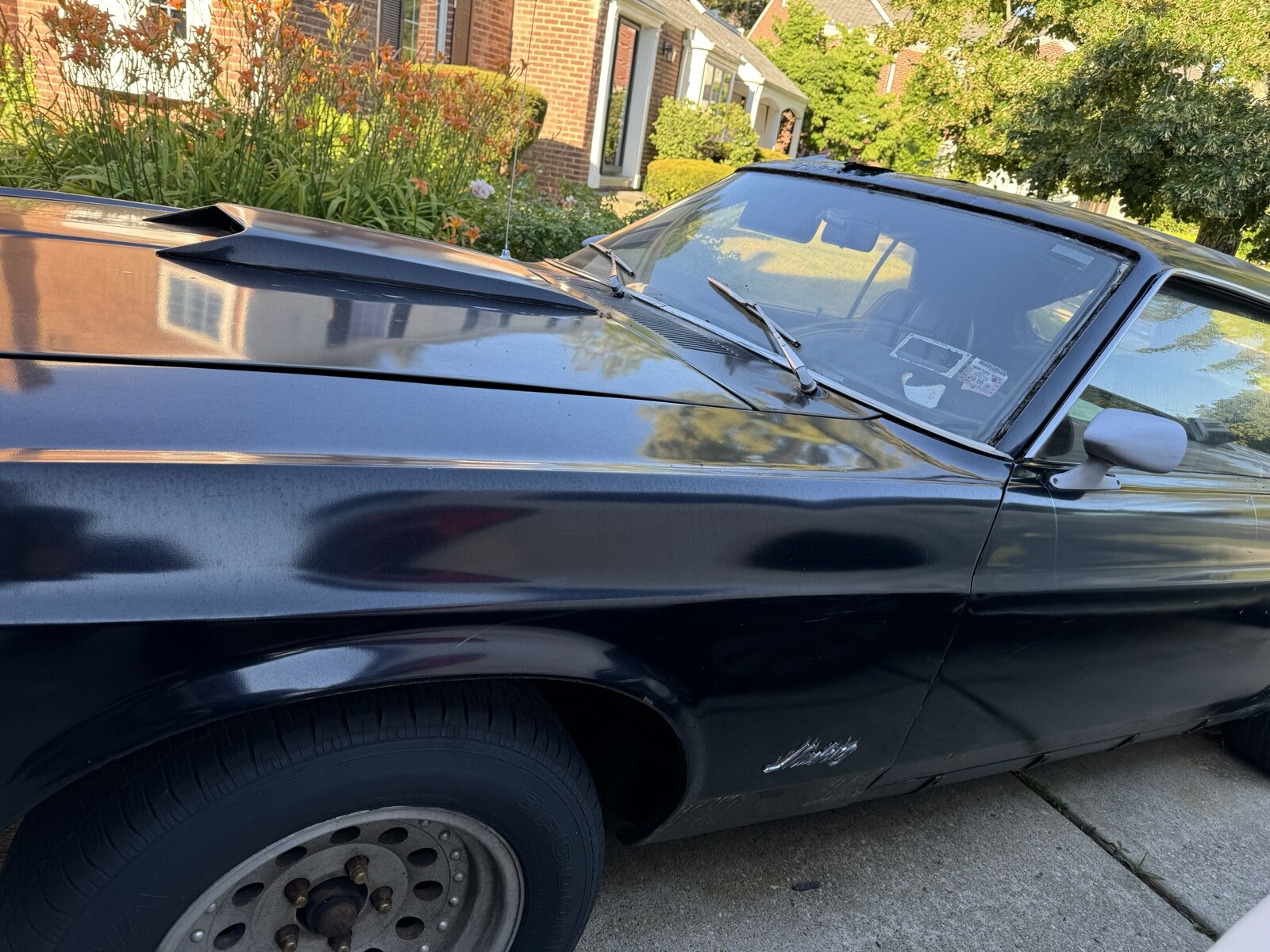 351 Cleveland engine which was upgraded to an Edelbrock 4 barrel carburetor with manual choke. Automatic transmission. This car was running and driving when I bought it 10+ years ago. The floor pan needs to be replaced. There is lots of rust underneath as well as on chrome, roof, body panels and trunk lid. I wanted to restomod it but lost interest. I changed the master cylinder, brake lines, fuel pump, exhaust pipes and tires. I replaced the side view mirrors. This could be a great project for the right person - parts are readily available for these Mustangs. It could also be used as an engine or transmission donor for another Mustang. There is no title — New York State does not issue titles for cars older than 1972.