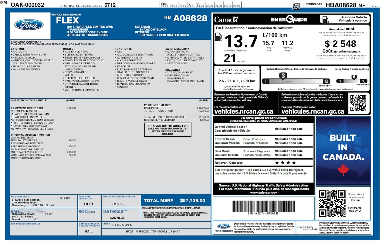 Available now is this 2017 Ford Flex Limited finished in Shadow Black over a black and gray interior. This Flex features the sought after 3.5L Ecoboost V6 twin turbocharged engine sporting 365 horsepower and 350 lb-ft of torque all mated to an automatic transmission and all-wheel drive. This Flex has the Sony sound system with navigation, dual zone climate control, power lift tail gate, power stowing third row seating and much more. Clean Carfax report and just over 101k miles.