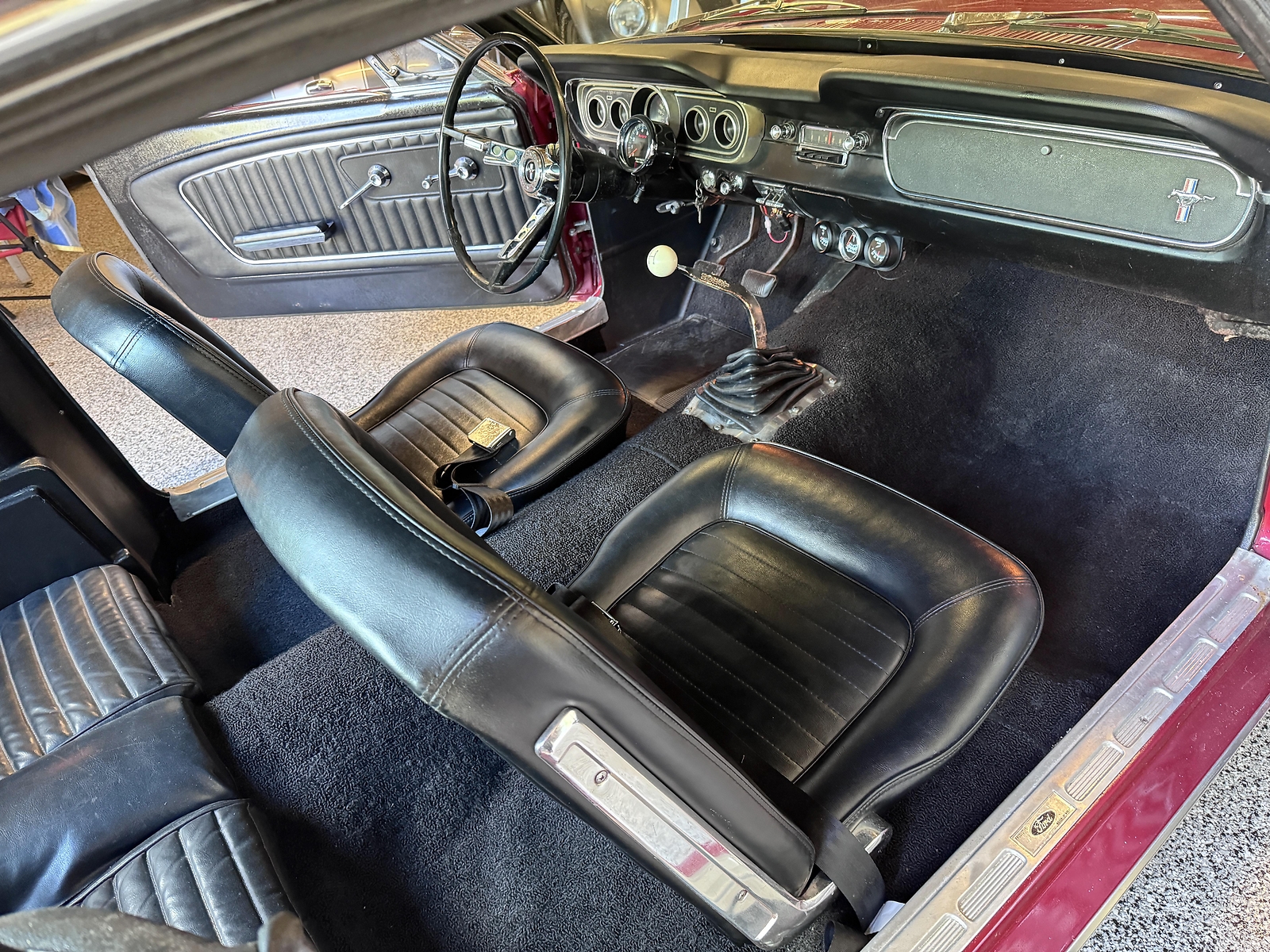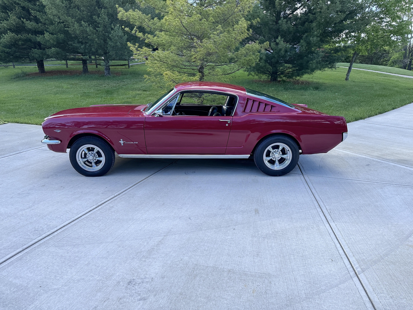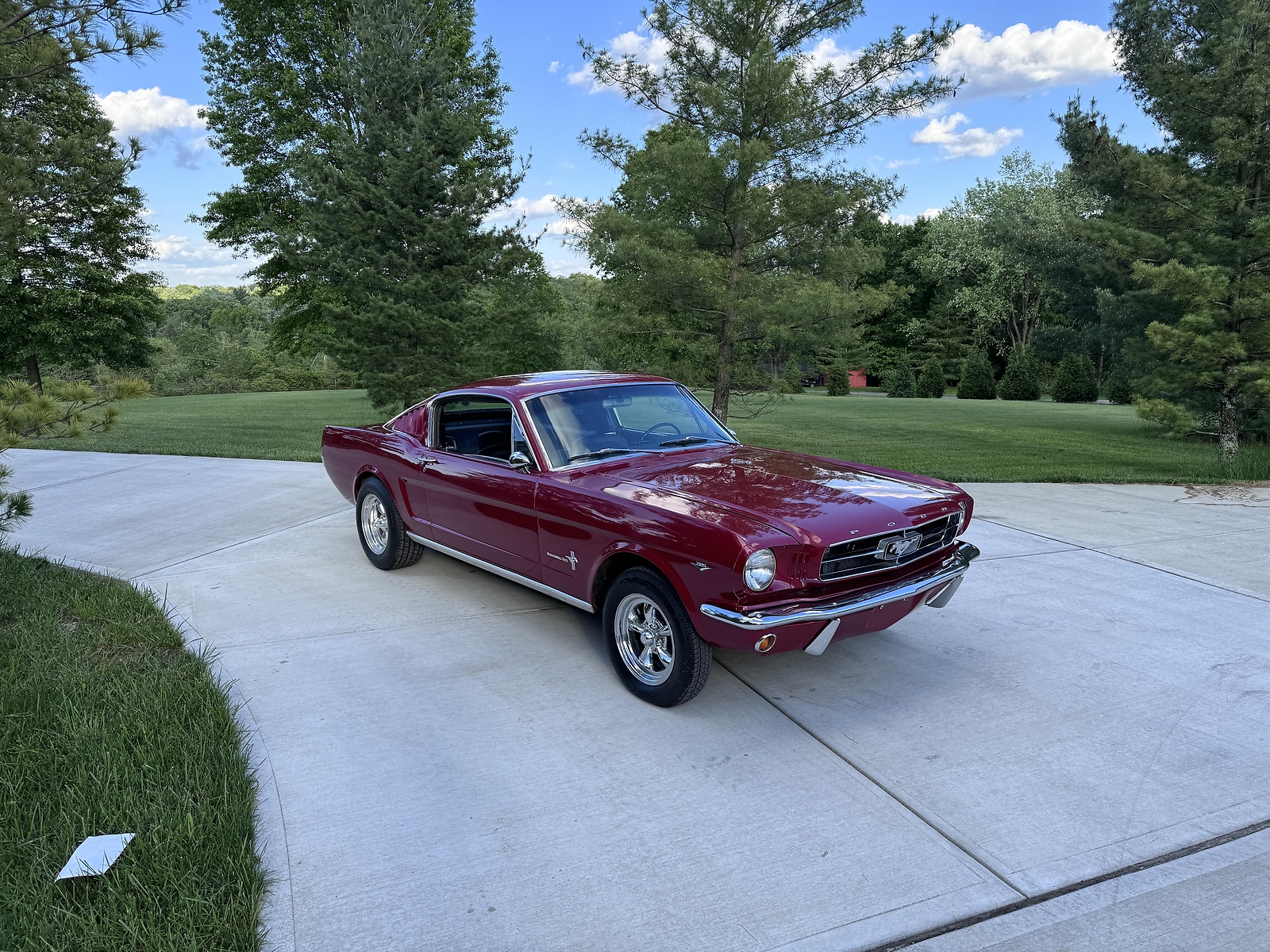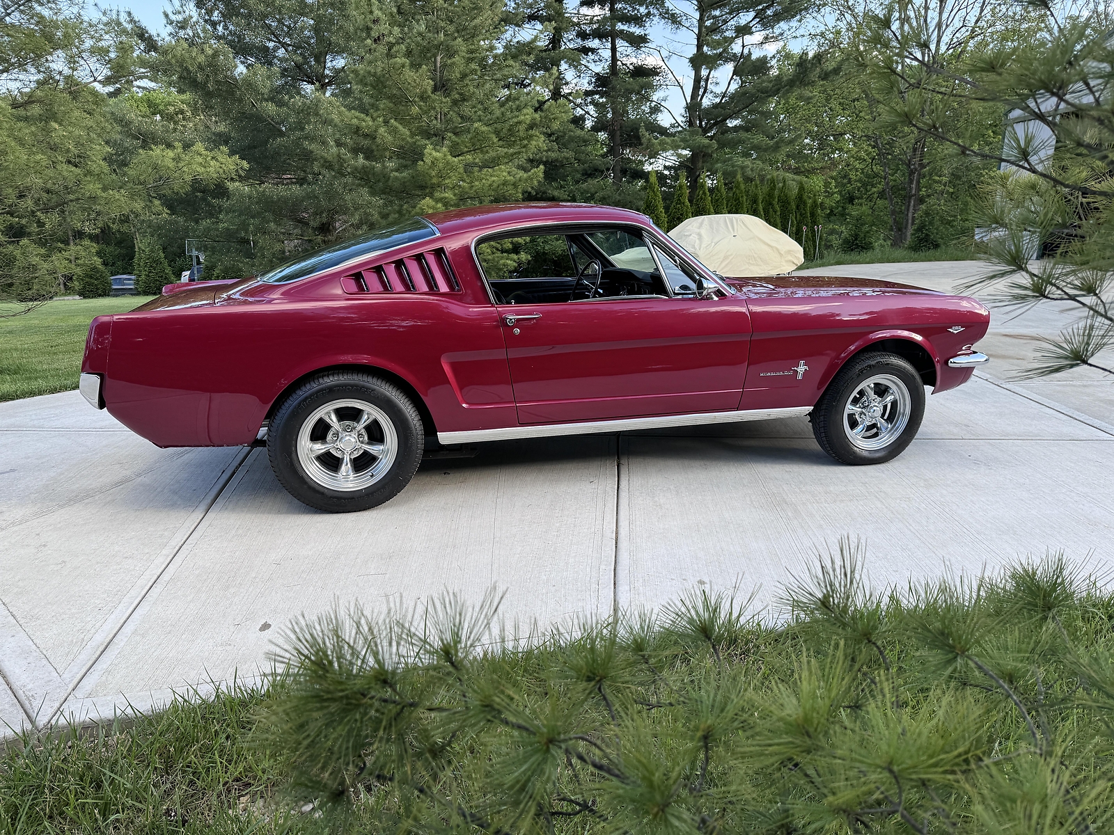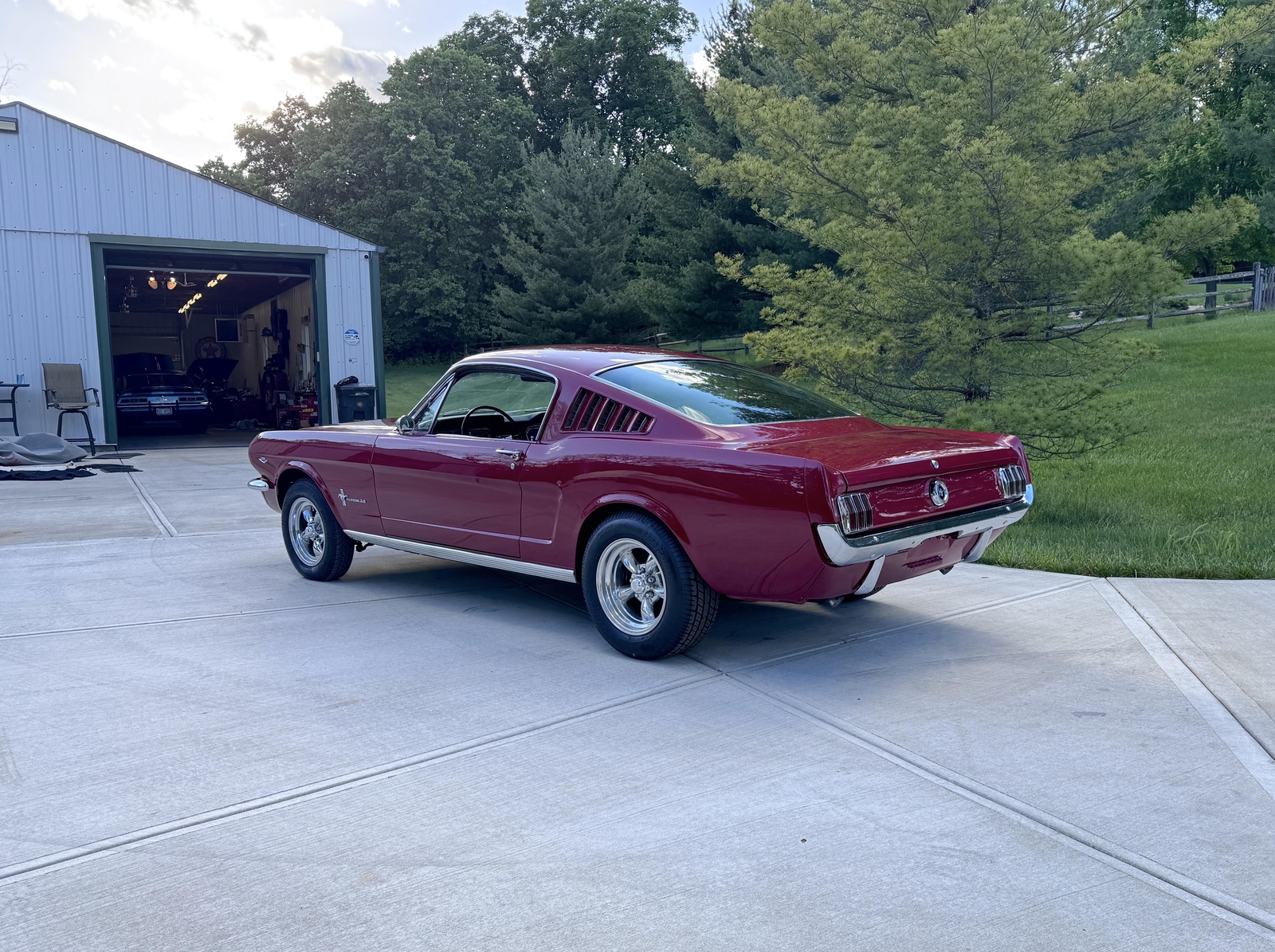 SUPER SHARP 1965 FASTBACK A-CODE 289 4V FACTORY 4SPD FOLD DOWN REAR SEAT VERY SOLID & STRAIGHT CAR BEAUTIFUL RED WITH FACTORY BLACK INTERIOR