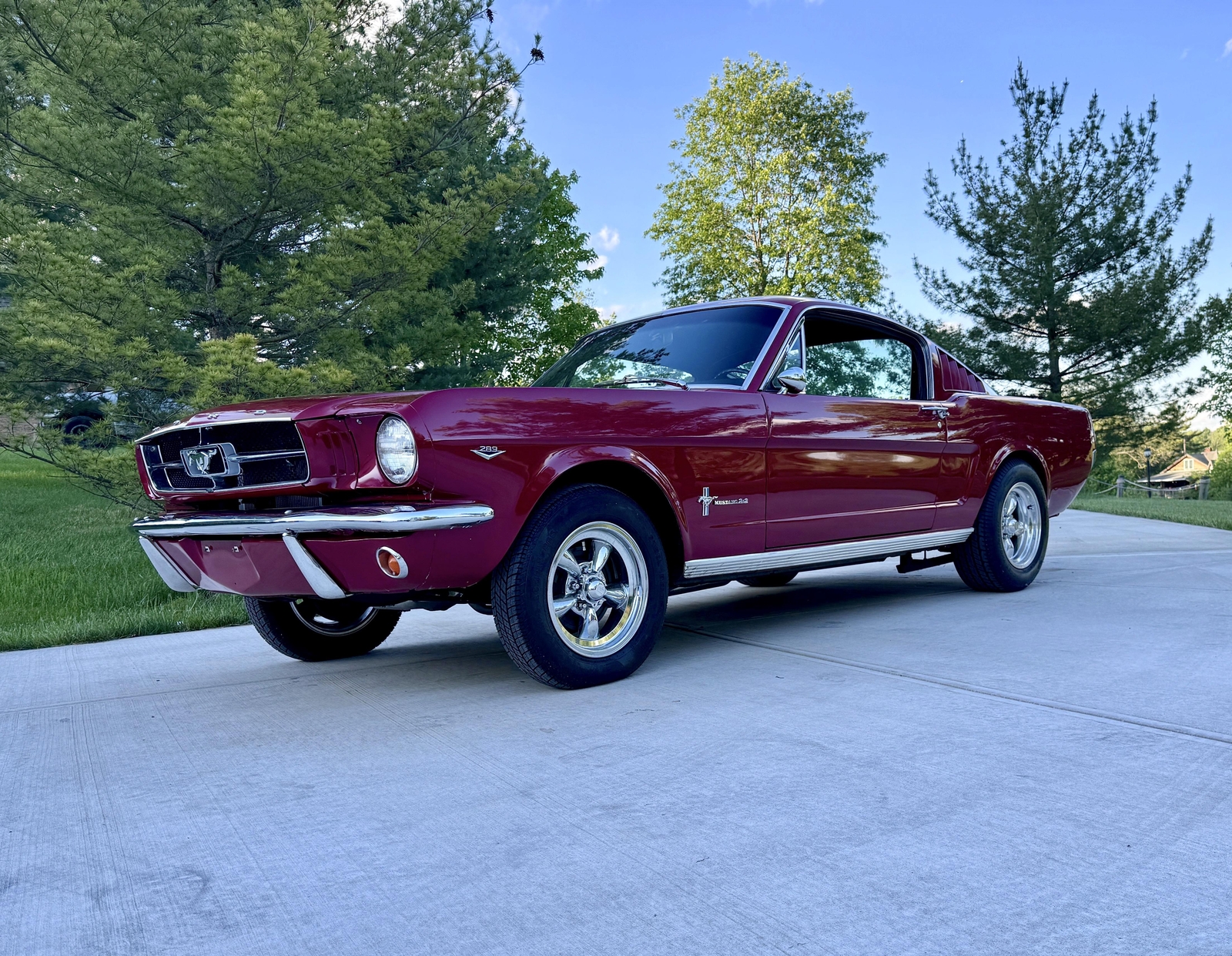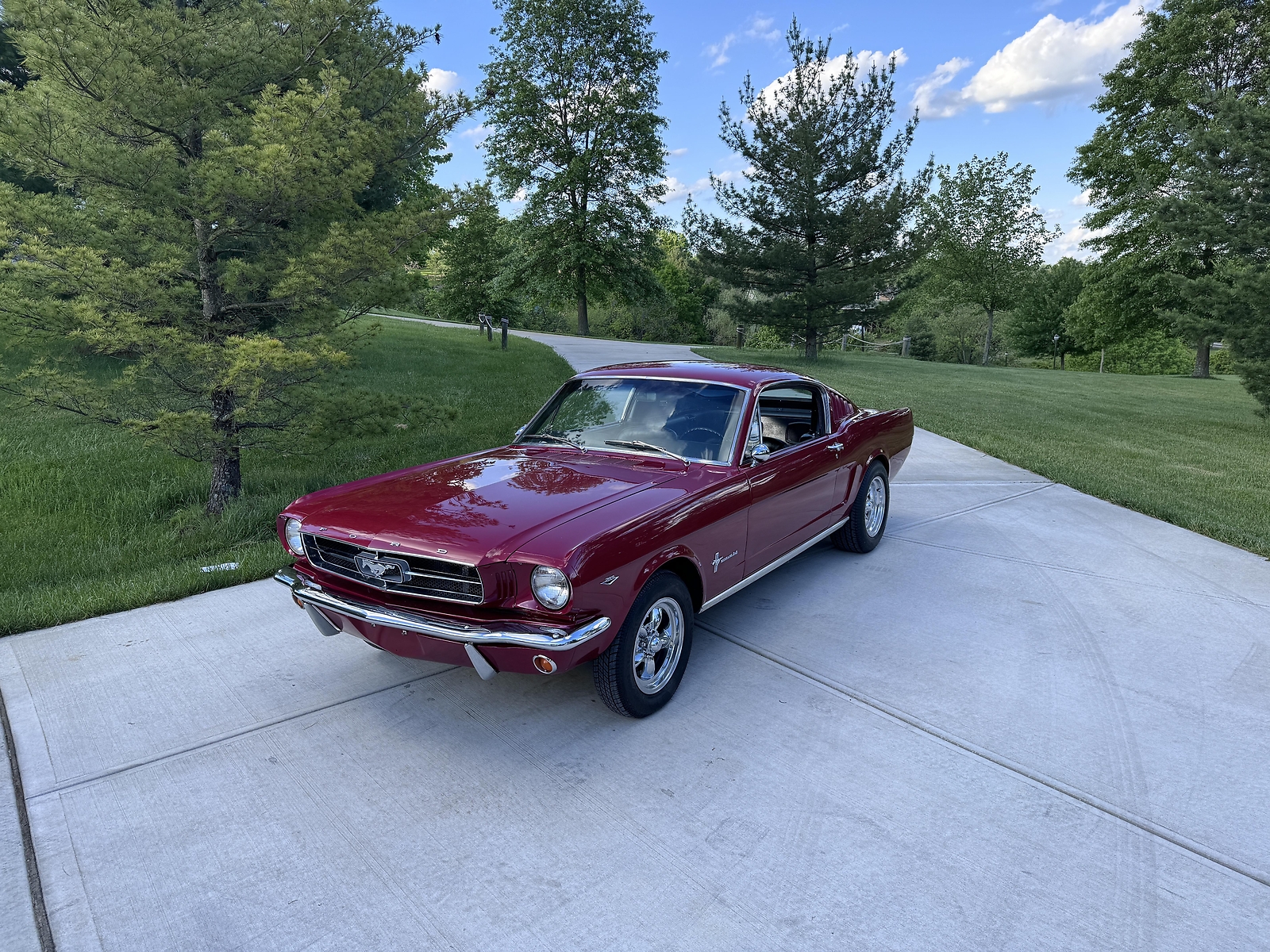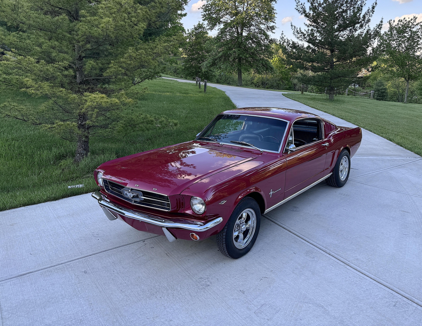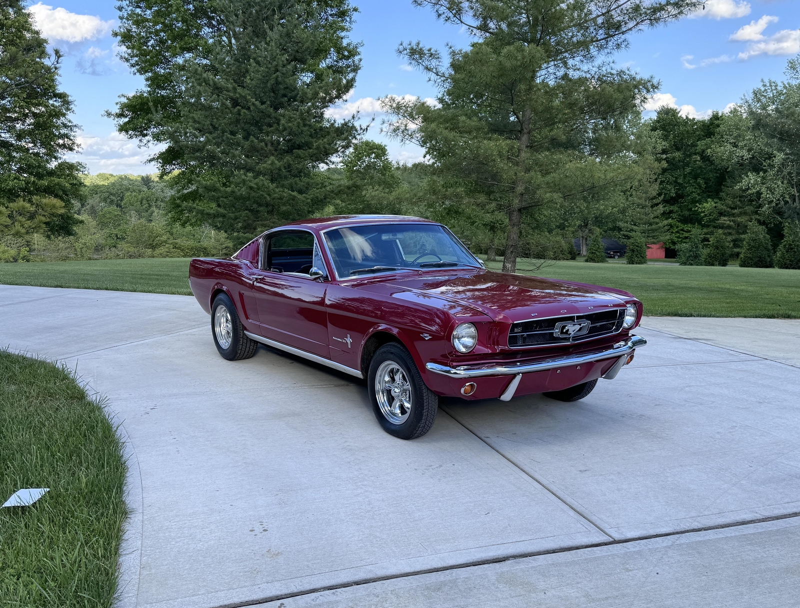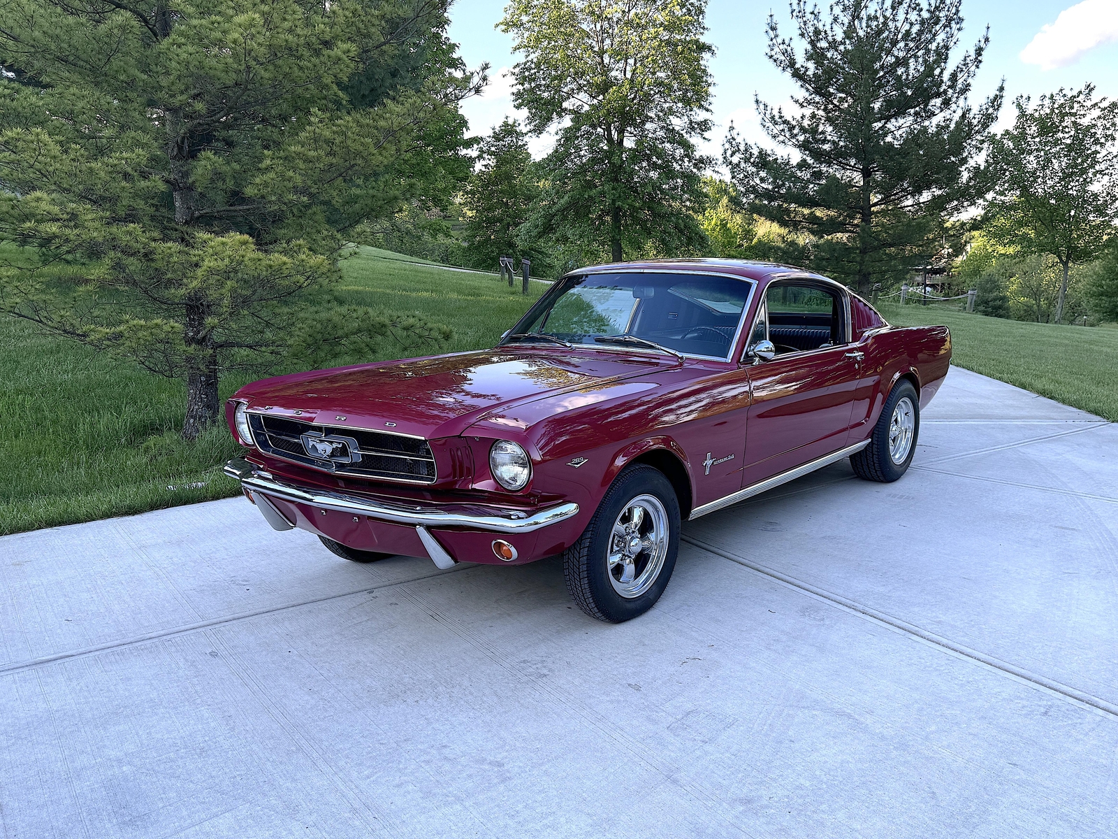 SUPER SHARP 1965 FASTBACK A-CODE 289 4V FACTORY 4SPD FOLD DOWN REAR SEAT VERY SOLID & STRAIGHT CAR BEAUTIFUL RED WITH FACTORY BLACK INTERIOR