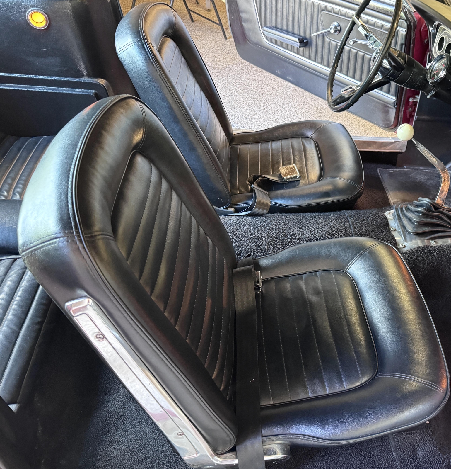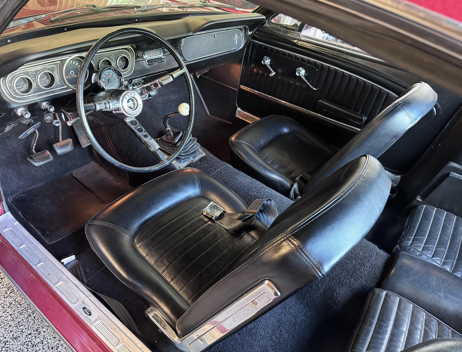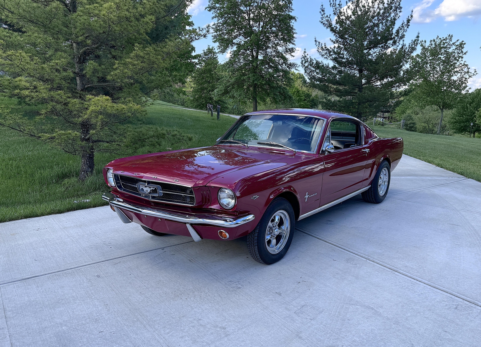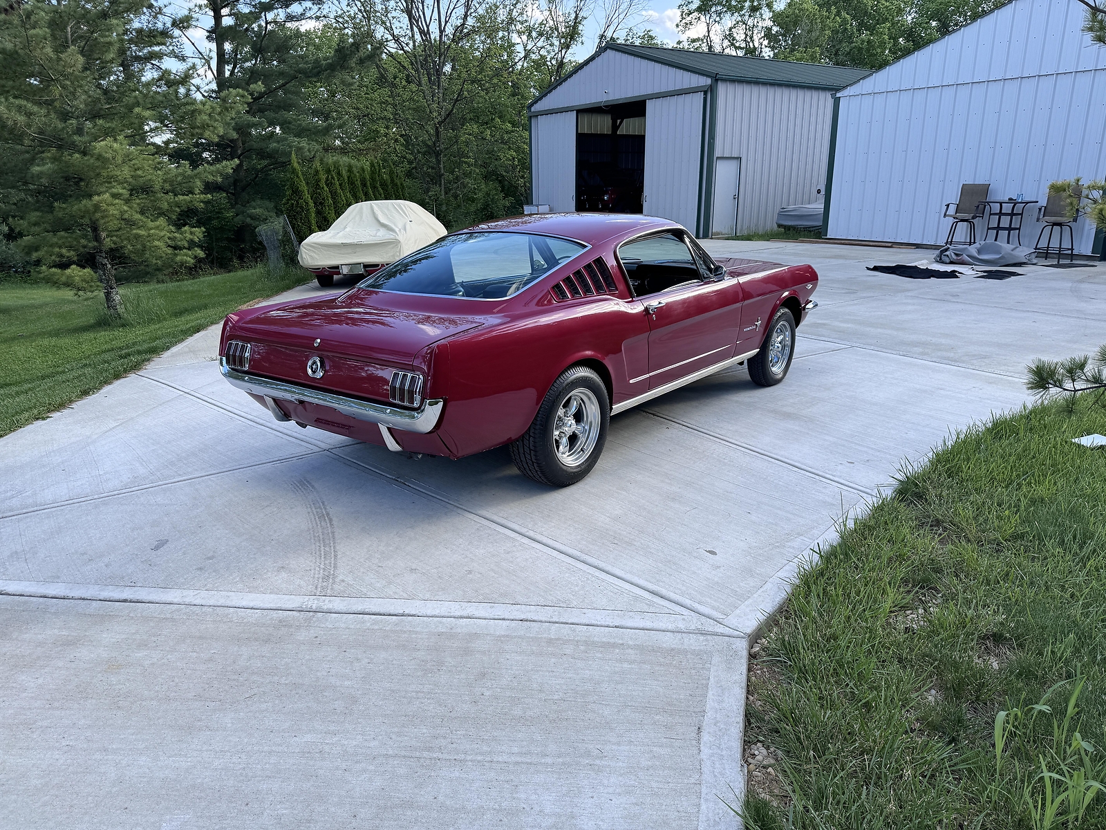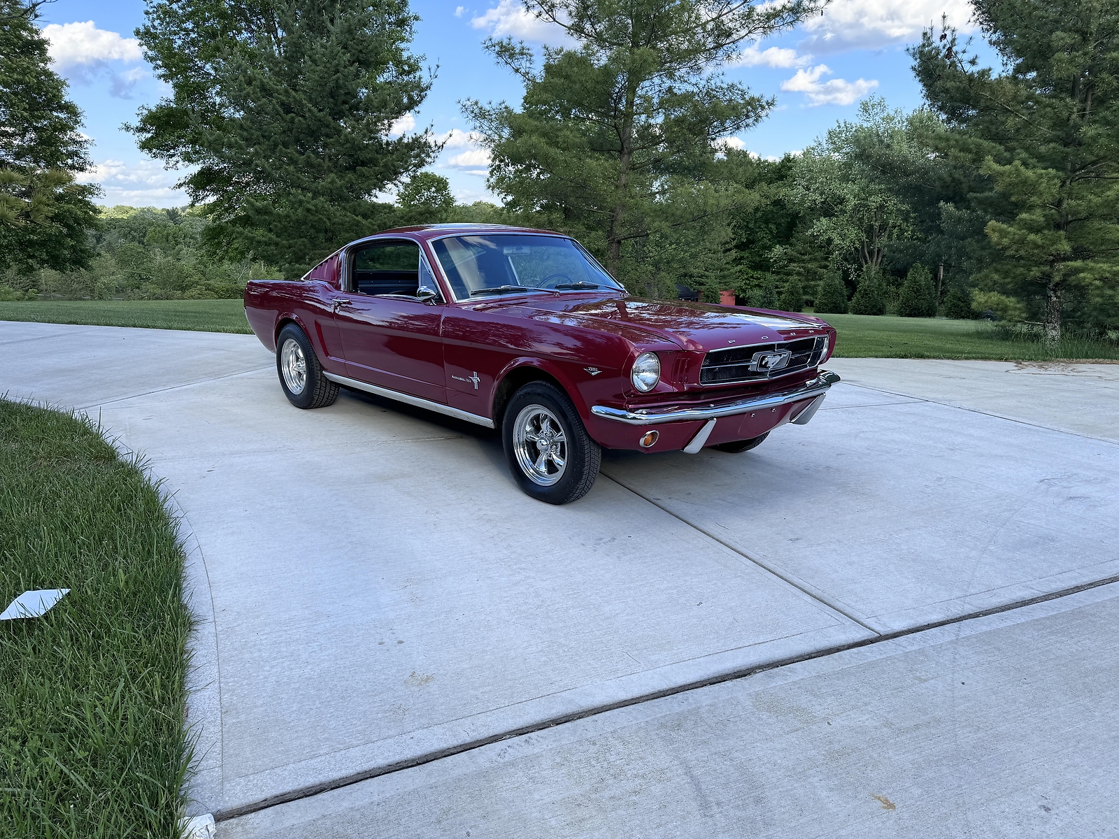 SUPER SHARP 1965 FASTBACK A-CODE 289 4V FACTORY 4SPD FOLD DOWN REAR SEAT VERY SOLID & STRAIGHT CAR BEAUTIFUL RED WITH FACTORY BLACK INTERIOR
