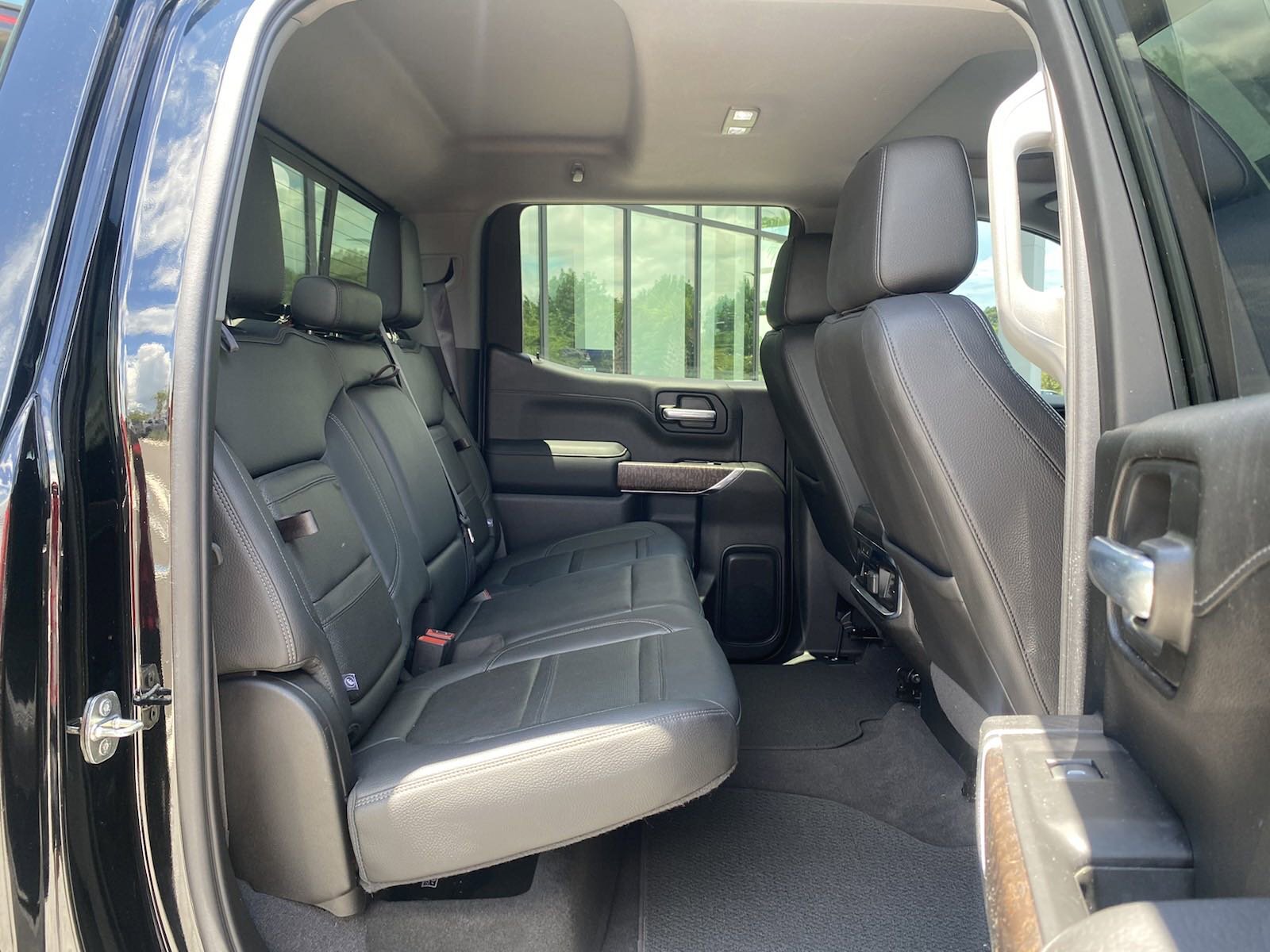 Sierra 1500 Denali, 4D Crew Cab, EcoTec3 5.3L V8, 8-Speed Automatic, RWD, Onyx Black, Jet Black Leather, 10-Way Power Driver Seat Adjuster w/Lumbar, 10-Way Power Passenger Seat Adjuster w/Lumbar, 12-Volt Rear Auxiliary Power Outlet, 120-Volt Bed Mounted Power Outlet, 120-Volt Instrument Panel Power Outlet, 170 Amp Alternator, 2 USB Ports, 2 USB Ports (1st Row), 3.23 Rear Axle Ratio, 4-Wheel Disc Brakes, 4G LTE Wi-Fi Hotspot Capable, 7 Speakers, ABS brakes, Adaptive Cruise Control - Camera, Adaptive Ride Control Suspension, Adaptive suspension, Air Conditioning, Alloy wheels, AM/FM radio: SiriusXM with 360L, Apple CarPlay/Android Auto, Auto-dimming door mirrors, Auto-dimming Rear-View mirror, Automatic Emergency Braking, Automatic temperature control, Auxiliary External Transmission Oil Cooler, Bed View Camera, Brake assist, Bumpers: body-color, Chrome Recovery Hooks, Chrome Wheel To Wheel Assist Steps, Color-Keyed Carpeting Floor Covering, Compass, Deep-Tinted Glass, Delay-off headlights, Driver Alert Package I, Driver Alert Package II, Driver door bin, Driver Memory, Driver vanity mirror, Dual front impact airbags, Dual front side impact airbags, Electric Rear-Window Defogger, Electrical Lock Control Steering Column, Electronic Stability Control, Floor-Mounted Center Console, Following Distance Indicator, Forge Perforated Leather-Appointed Seat Trim, Forward Collision Alert, Front anti-roll bar, Front Bucket Seats, Front Center Armrest, Front dual zone A/C, Front fog lights, Front Pedestrian Braking, Front reading lights, Front wheel independent suspension, Fully automatic headlights, Garage door transmitter, Genuine wood console insert, Genuine wood door panel insert, GMC Connected Access Capable, GMC MultiPro Power Steps (DISC), HD Radio, HD Rear Vision Camera, HD Surround Vision w/2 Trailer View Camera Provisions, Heated 2nd Row Outboard Seats, Heated door mirrors, Heated Driver & Front Outboard Passenger Seating, Heated front seats, Heated rear seats, Heated steering wheel, Heavy-Duty Rear Locking Differential, High-Capacity Air Filter, Hitch Guidance, Hitch Guidance w/Hitch View, Illuminated entry, In-Vehicle Trailering App, Integrated Trailer Brake Controller, IntelliBeam Automatic High Beam On/Off, Keyless Open & Start, Lane Change Alert w/Side Blind Zone Alert, Lane Keep Assist w/Lane Departure Warning, LED Cargo Area Lighting, Low tire pressure warning, Manual Tilt-Wheel & Telescoping Steering Column, Memory seat, Multicolor 15" Diagonal Head-Up Display, Navigation System, Occupant sensing airbag, OnStar & GMC Connected Services Capable, Outside temperature display, Overhead airbag, Overhead console, Panic alarm, Passenger door bin, Passenger vanity mirror, Perimeter Lighting, Power Door Locks, Power door mirrors, Power driver seat, Power Front Passenger Windows w/Express Up/Down, Power Front Windows w/Driver Express Up/Down, Power passenger seat, Power Rear Windows w/Express Down, Power Sliding Rear Window w/Rear Defogger, Power steering, Power Sunroof, Power windows, Preferred Equipment Group 5SA, Premium audio system: GMC Infotainment System, Premium Bose 7-Speaker Sound System, ProGrade Trailering System, Radio data system, Radio: Premium GMC Infotainment Sys w/Navigation, Rear Camera Mirror, Rear Cross Traffic Alert, Rear Dual USB Charging-Only Ports, Rear reading lights, Rear seat center armrest, Rear step bumper, Rear Wheelhouse Liners, Rear window defroster, Remote keyless entry, Remote Vehicle Starter System, Safety Alert Seat, Security system, Signature Denali Grille, SiriusXM w/360L, Speed control, Speed-sensing steering, Split folding rear seat, Spray-On Pickup Bed Liner w/Denali Logo, Steering Wheel Audio Controls, Steering wheel mounted audio controls, Tachometer, Technology Package, Telescoping steering wheel, Theft Deterrent System (Unauthorized Entry), Tilt steering wheel, Traction control, Trailering Package, Trip computer, Ultrasonic Front & Rear Park Assist, Universal Home Remote, Variably int