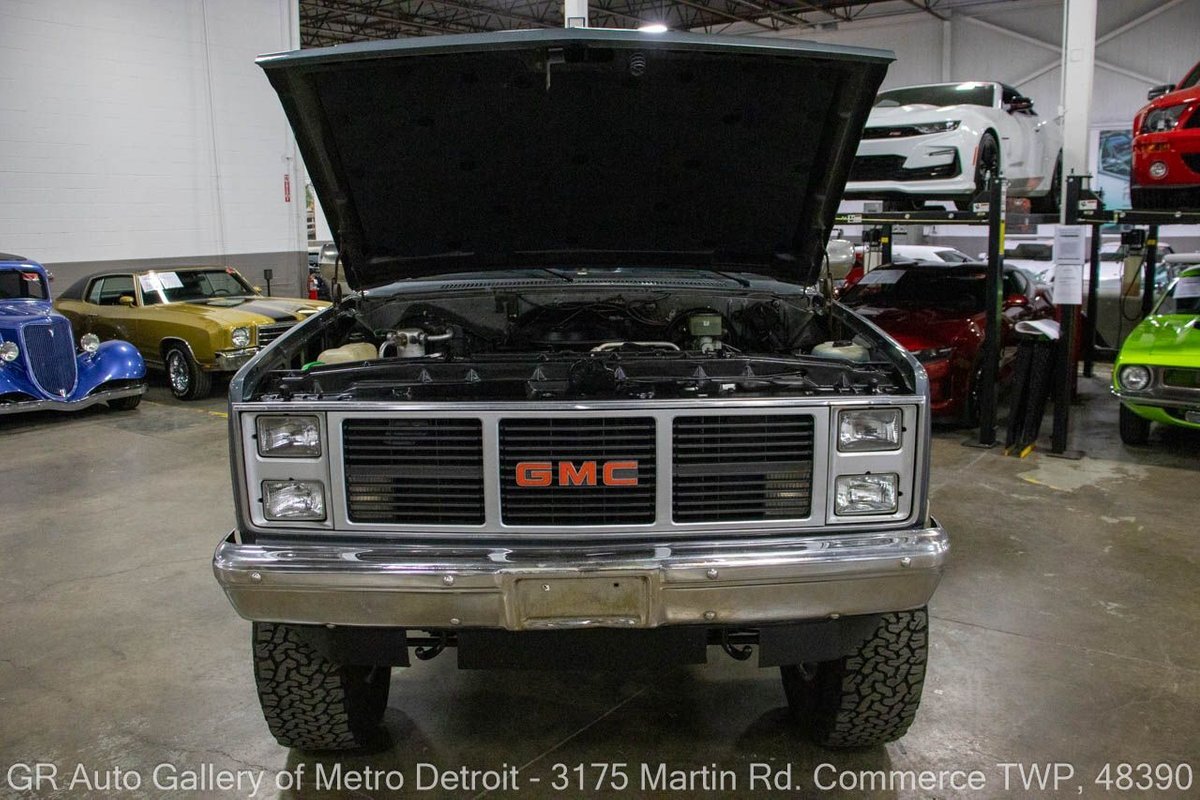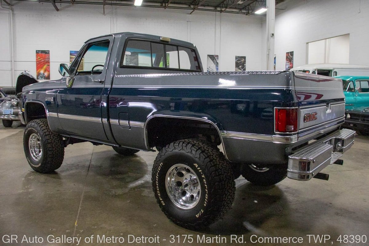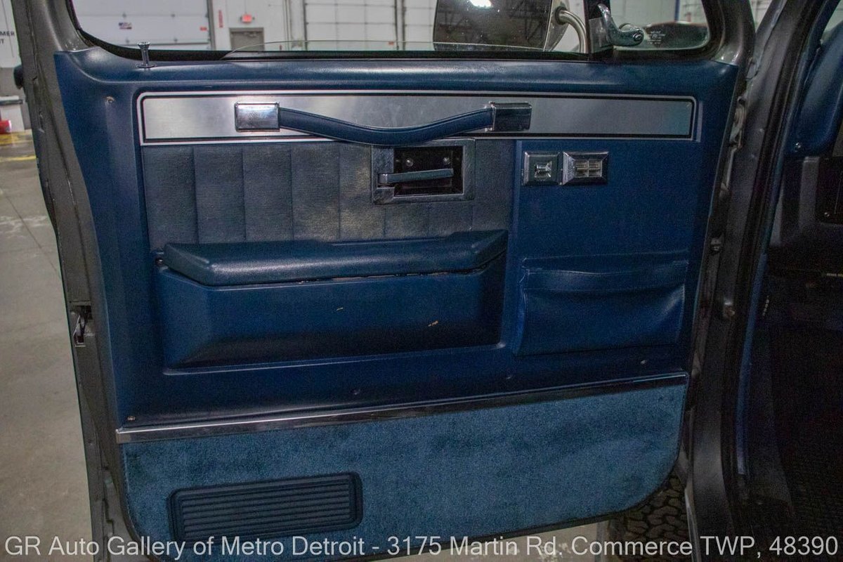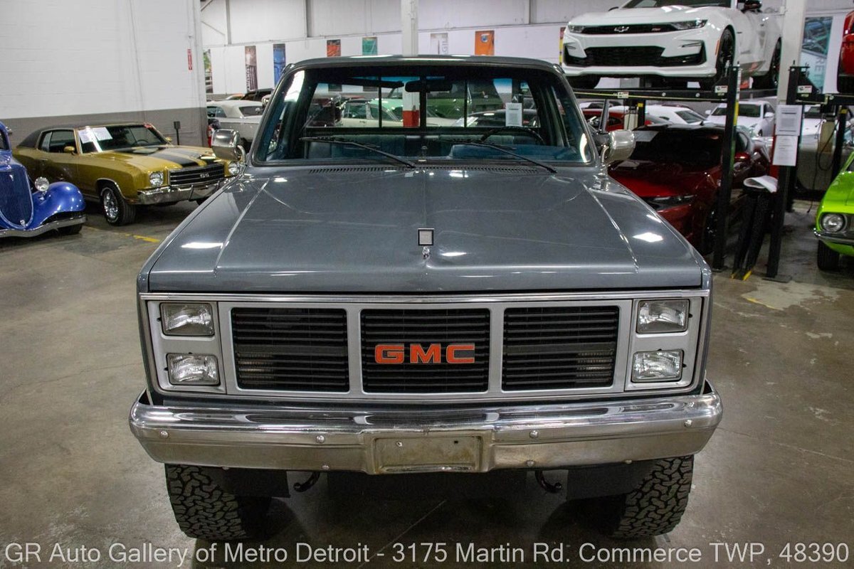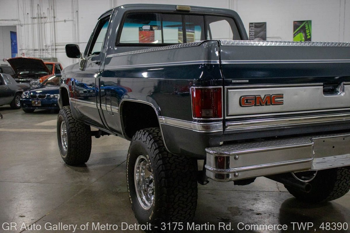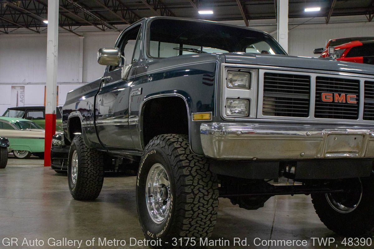 GR Auto Gallery is pleased to present this 1987 GMC V1500 1/2 Ton pickup for your consideration. This classic truck comes in a striking Blue and Gray metallic exterior, complemented by a blue interior. Under the hood, you will find a reliable 350 cubic inch V8 engine paired with a 700 R4 automatic transmission. This GMC V1500 is equipped with Bf good rich all terrain LT 315/75r16 127/124r tires mounted on M/T rims, rough country performance shocks, new battery, Sylvania halogens front headlights, and has been well-maintained to ensure exceptional performance both on and off the road. Drive this one out of our showroom or have us assist with shipping it to you anywhere in the United States! Don't hesitate to call us with any questions or for more information.