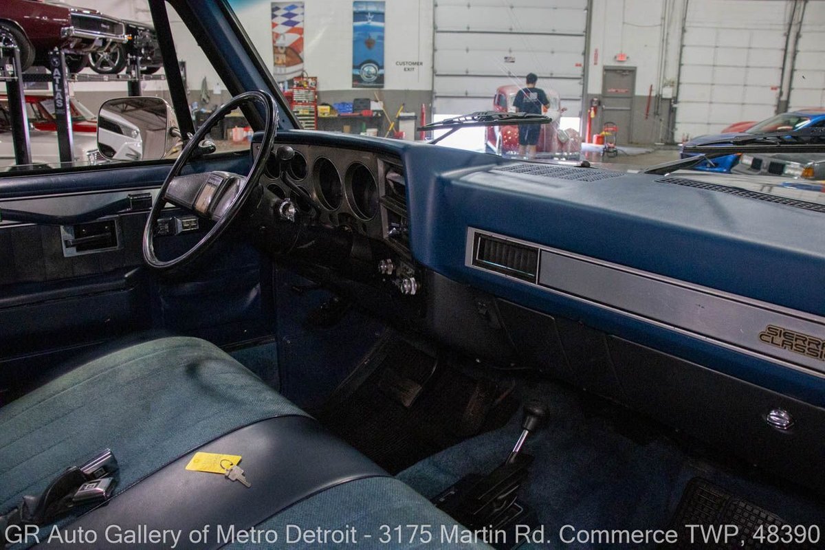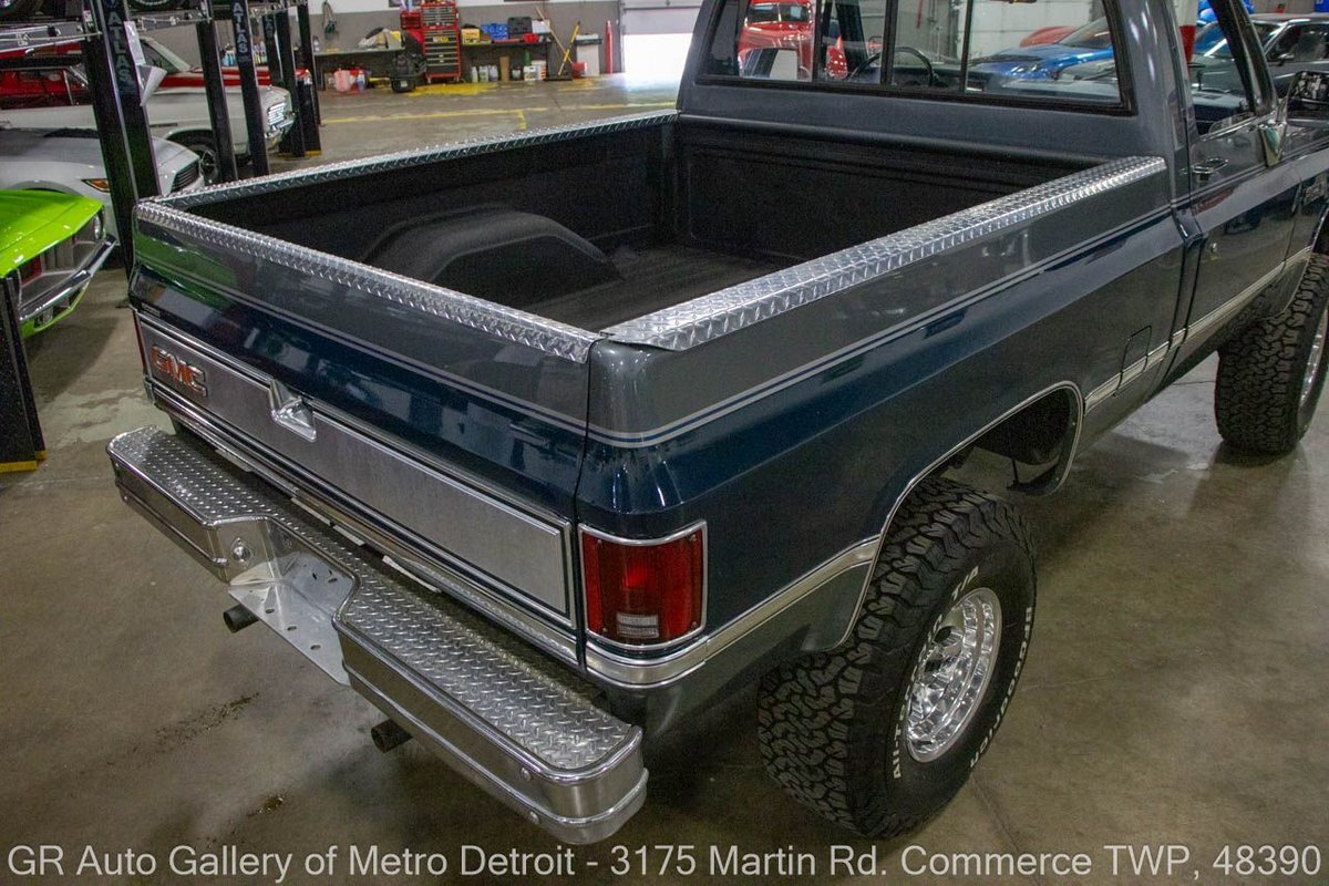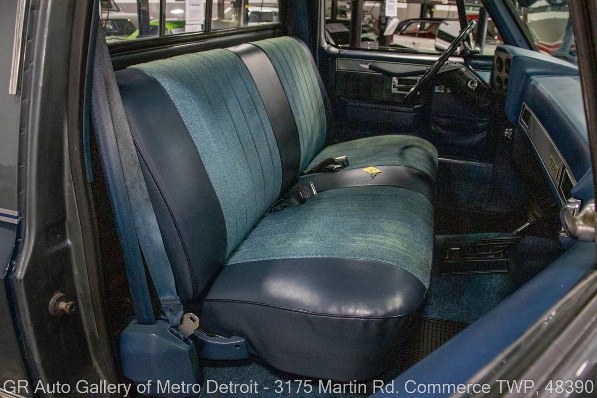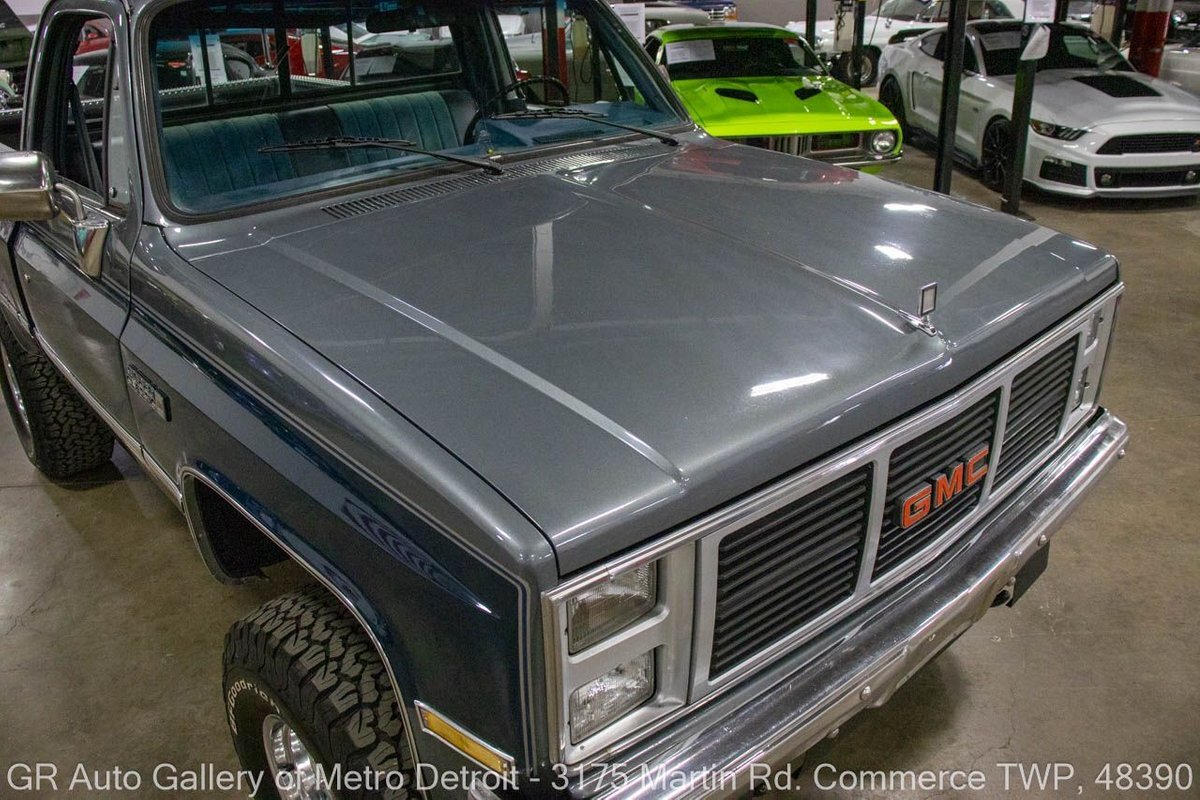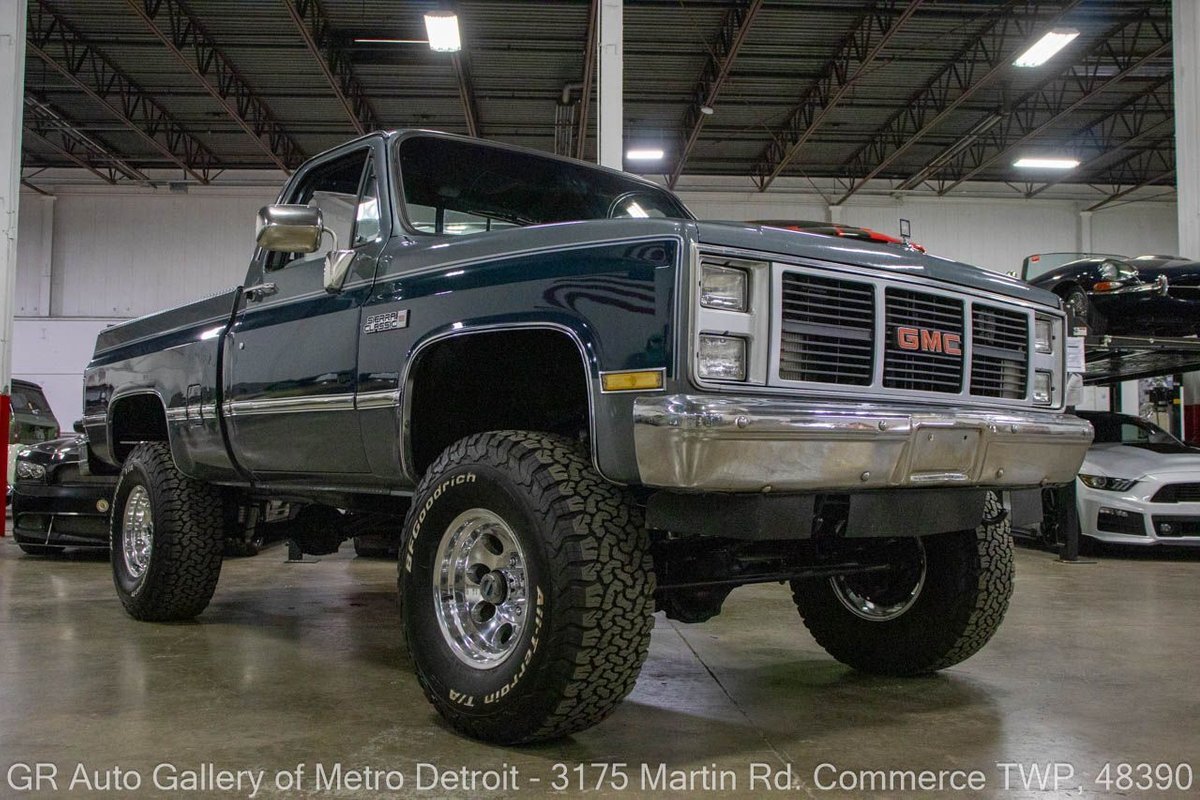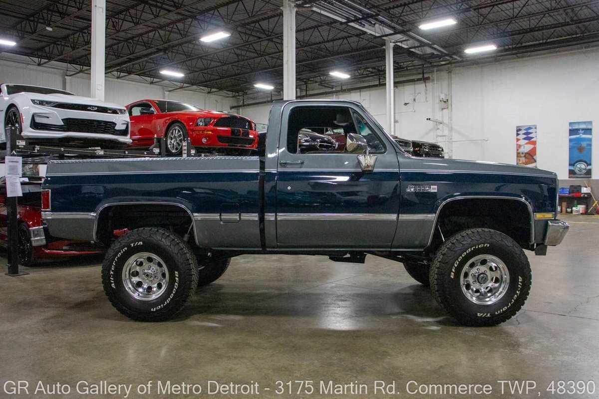 GR Auto Gallery is pleased to present this 1987 GMC V1500 1/2 Ton pickup for your consideration. This classic truck comes in a striking Blue and Gray metallic exterior, complemented by a blue interior. Under the hood, you will find a reliable 350 cubic inch V8 engine paired with a 700 R4 automatic transmission. This GMC V1500 is equipped with Bf good rich all terrain LT 315/75r16 127/124r tires mounted on M/T rims, rough country performance shocks, new battery, Sylvania halogens front headlights, and has been well-maintained to ensure exceptional performance both on and off the road. Drive this one out of our showroom or have us assist with shipping it to you anywhere in the United States! Don't hesitate to call us with any questions or for more information.