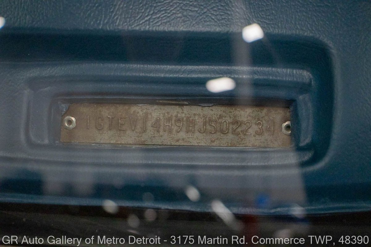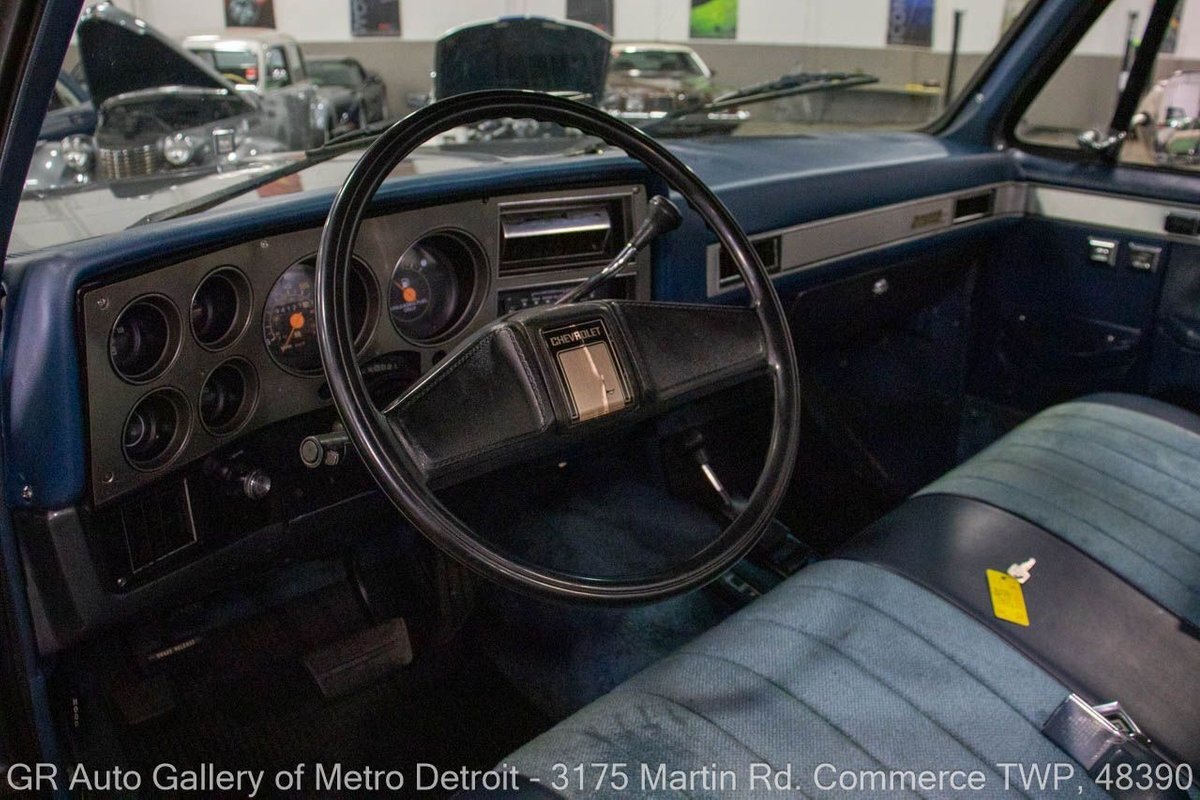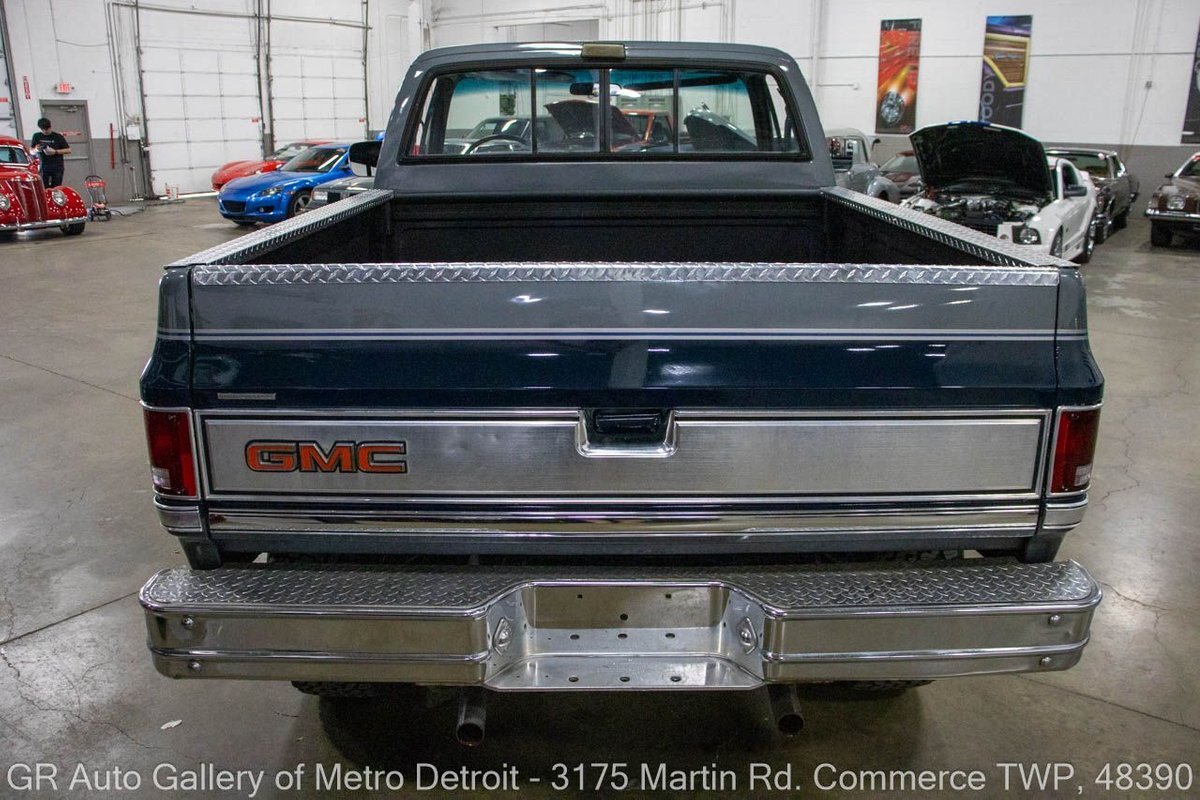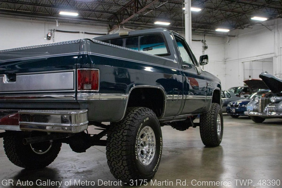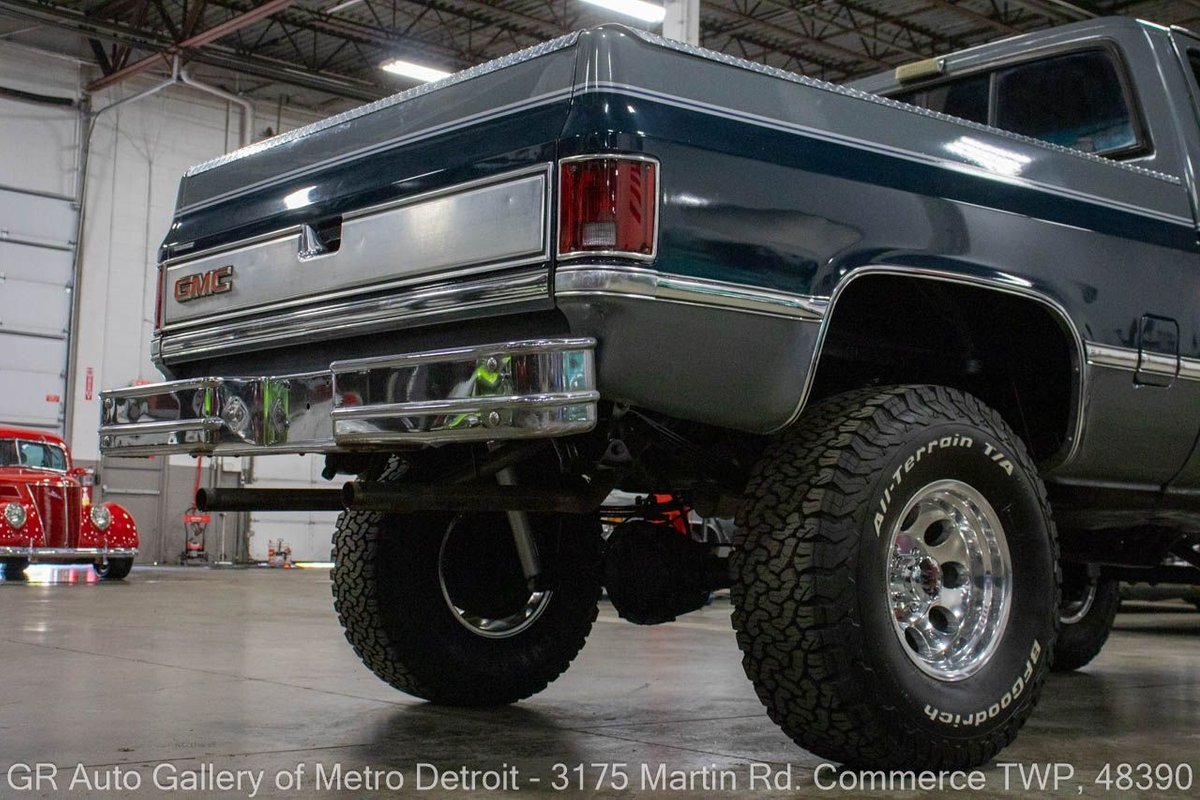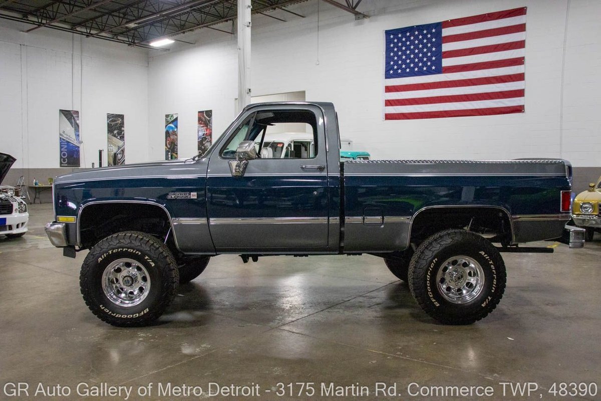 GR Auto Gallery is pleased to present this 1987 GMC V1500 1/2 Ton pickup for your consideration. This classic truck comes in a striking Blue and Gray metallic exterior, complemented by a blue interior. Under the hood, you will find a reliable 350 cubic inch V8 engine paired with a 700 R4 automatic transmission. This GMC V1500 is equipped with Bf good rich all terrain LT 315/75r16 127/124r tires mounted on M/T rims, rough country performance shocks, new battery, Sylvania halogens front headlights, and has been well-maintained to ensure exceptional performance both on and off the road. Drive this one out of our showroom or have us assist with shipping it to you anywhere in the United States! Don't hesitate to call us with any questions or for more information.