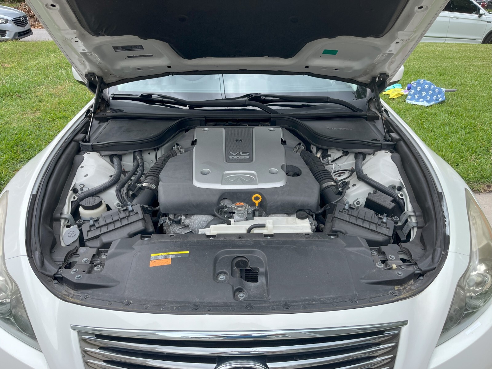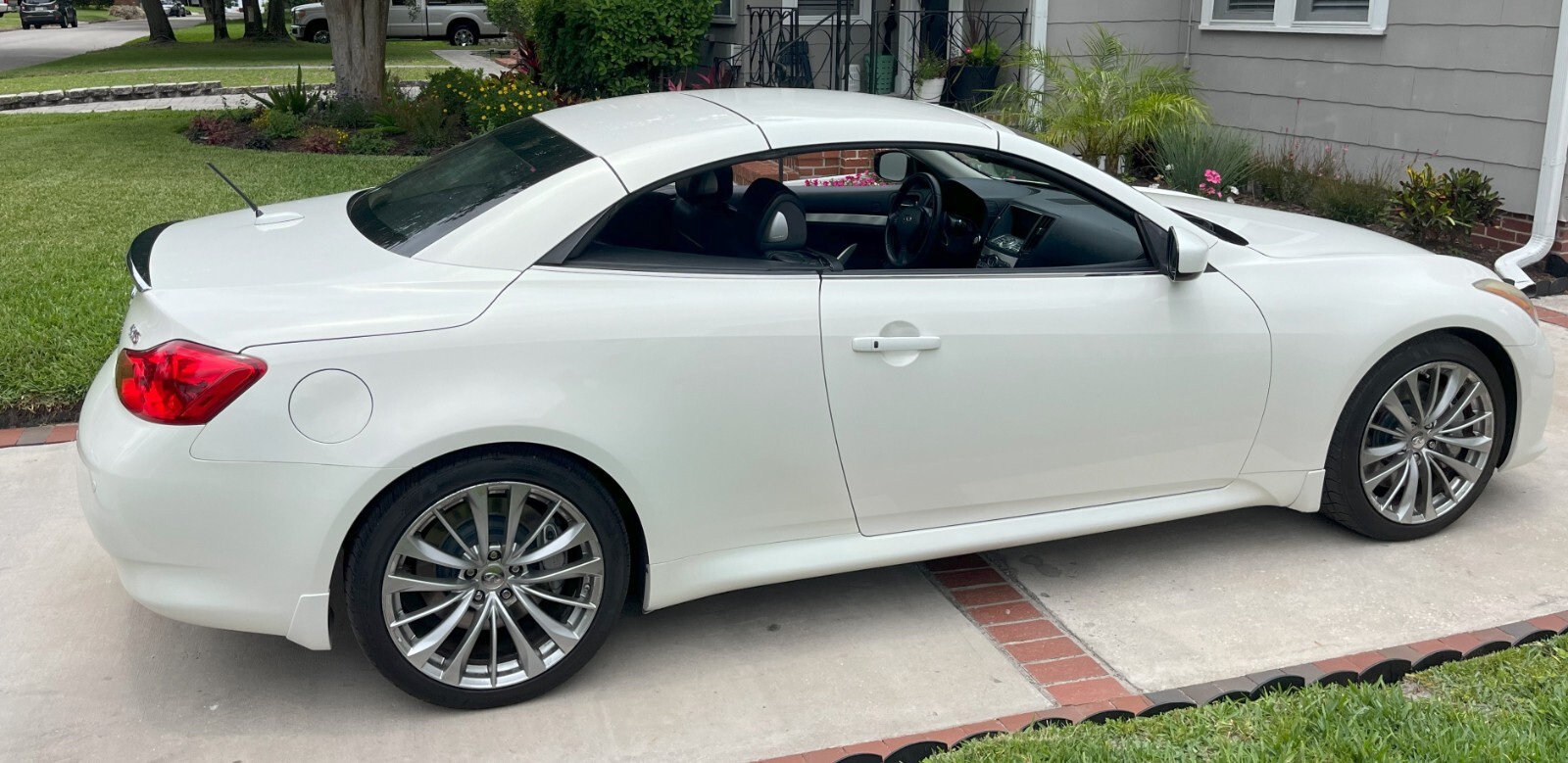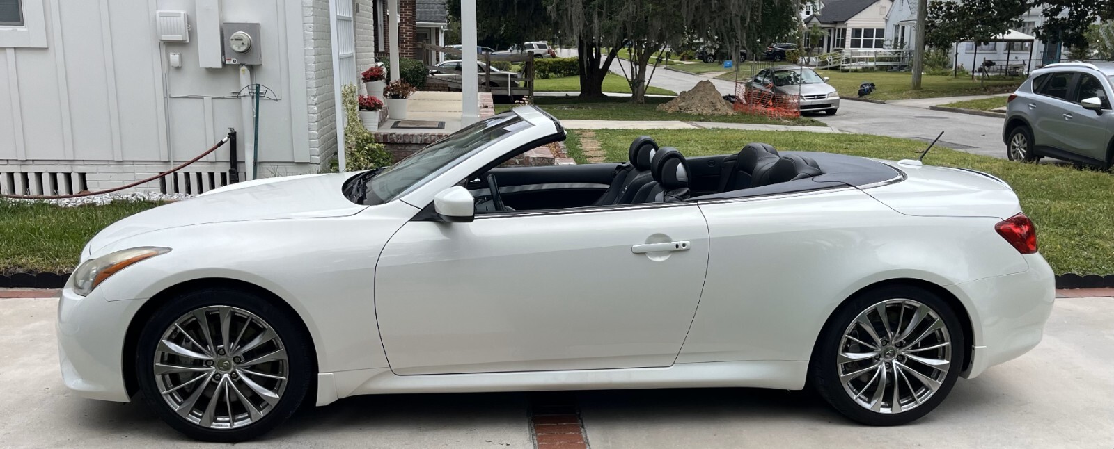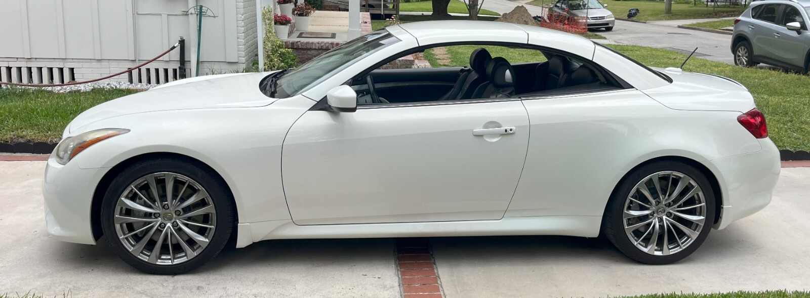 Exceptional 2 owner premium sport convertible, women owned and driven for last 8 years. Receipts on all recommended maintenance and work performed, new brakes and rotors 5/24, new tires, alignment 11/23, new convertible top motors and recalibration 11/21. The 2013 INFINITI G37 Sport Convertible presents an enticing combination of sleek design, open-air driving enjoyment, and refined luxury.