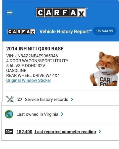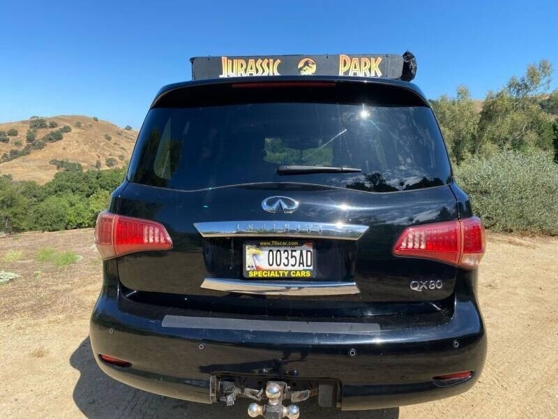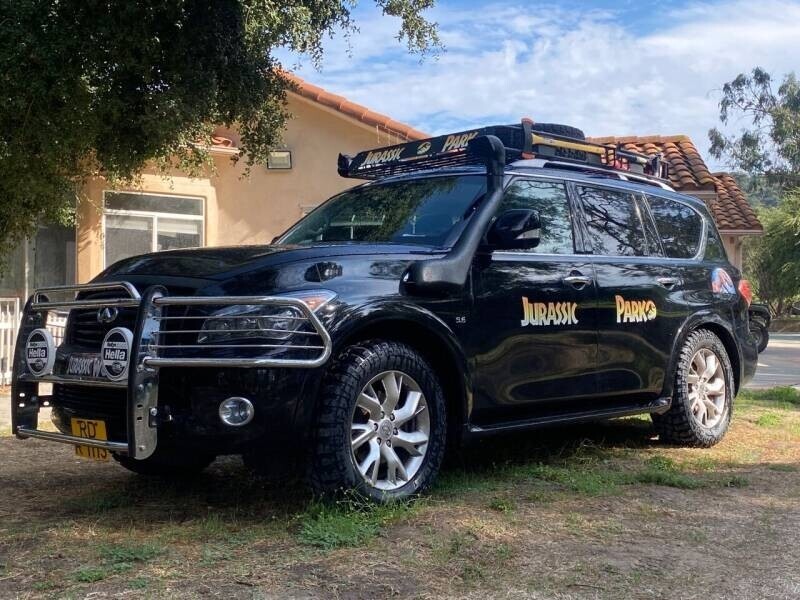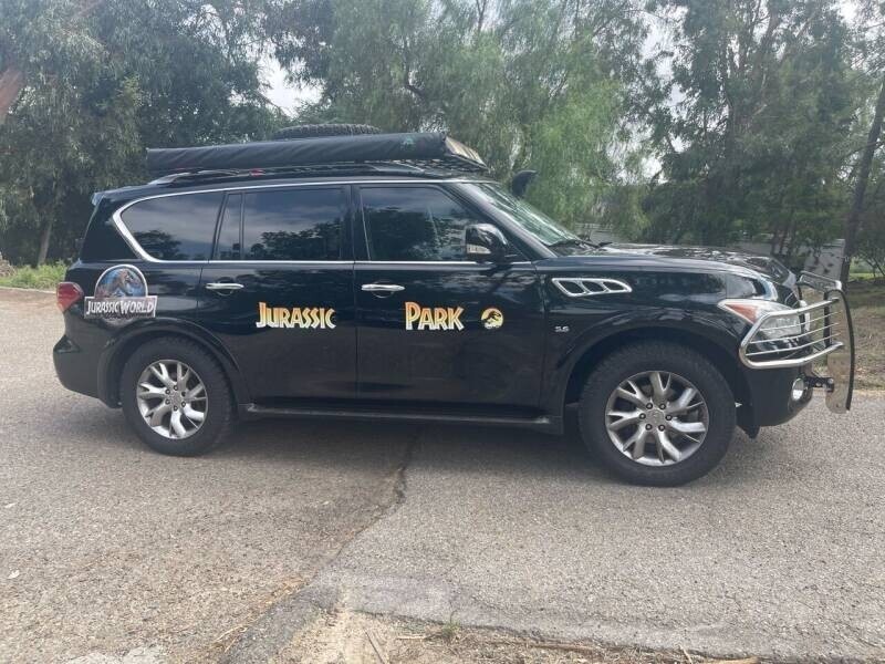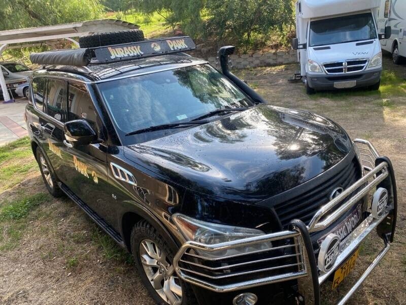 SPECIAL UNIVERSAL STUDIO Special JURASSIC PARK Tribute edition. 1 of a kind the only one in market. was custom made by the studio for JURASSIC PARK TRIBUTE SAFARI PACKAGE. As is . CLEAN TITLEThe QX80 is the best family truckster for this ski family of 6-7. The engine is incredibly powerful and climbs the mountains of BIG BEAR YOSEMITE with the greatest of ease. Plenty of room inside even in the third row for adults. we tow any vehicle or boat or camper....18 mpg hwy.Has all new brakes rotors battery oil filter cold ac non smoker soft leather, has tent for camping. 5 gal hard shel extra fuel tank. This car meant all my needs. Great family car, plenty of leg room, entertainment package very helpful for kids. Rides extremely well! Includes leather seats, heated seats front and back, top of the line sound system, entertainment pack with head phones, alloy wheels.