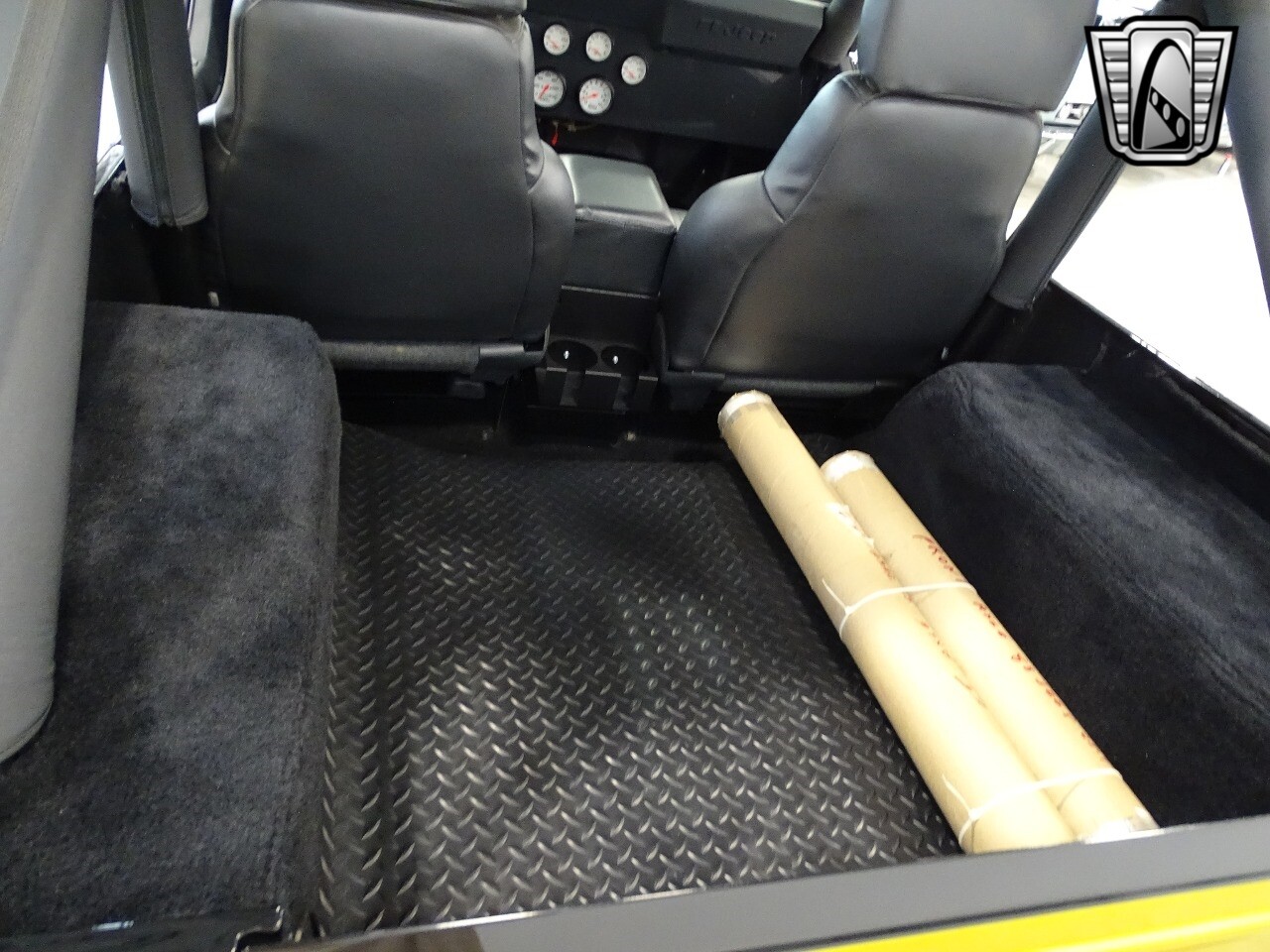 Under the hood of this CJ-7 is a Chevrolet 350 V-8 built with w/4-bolt mains, Edelbrock intake, mild cam, Quadra Jet four-barrel carburetor, ported cylinder heads, Corvette 2-1/2 Ranshorn exhaust manifolds, and an aluminum radiator. Highlighted additional features include front disk brakes, Rancho adjustable shocks, 2-1/2 aluminized exhaust with chrome glass pack mufflers The Pro-built Turbo 350 transmission comes with a B@M 2,400 stall converter and flex plate, attached to a Hurst Pro-Matic shifter. All powering the rear wheels through a Currie 9" rear differential with a 31 spline 373 Track Lock.