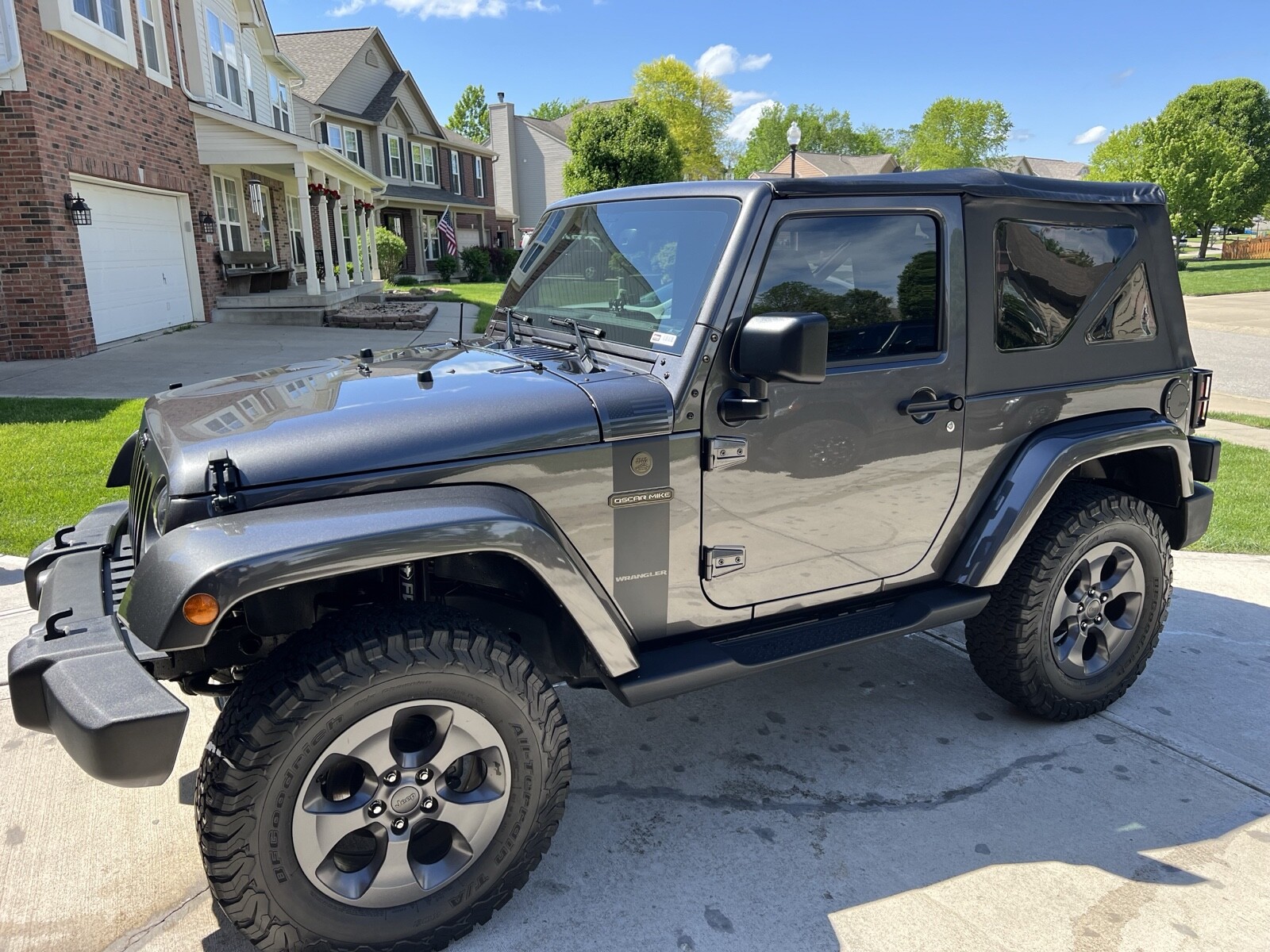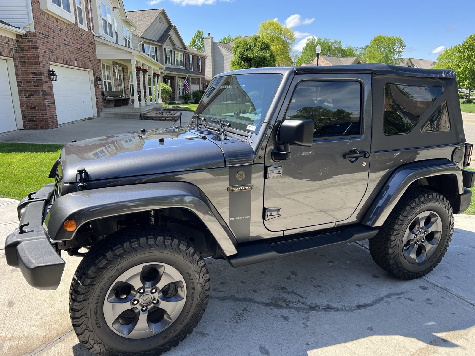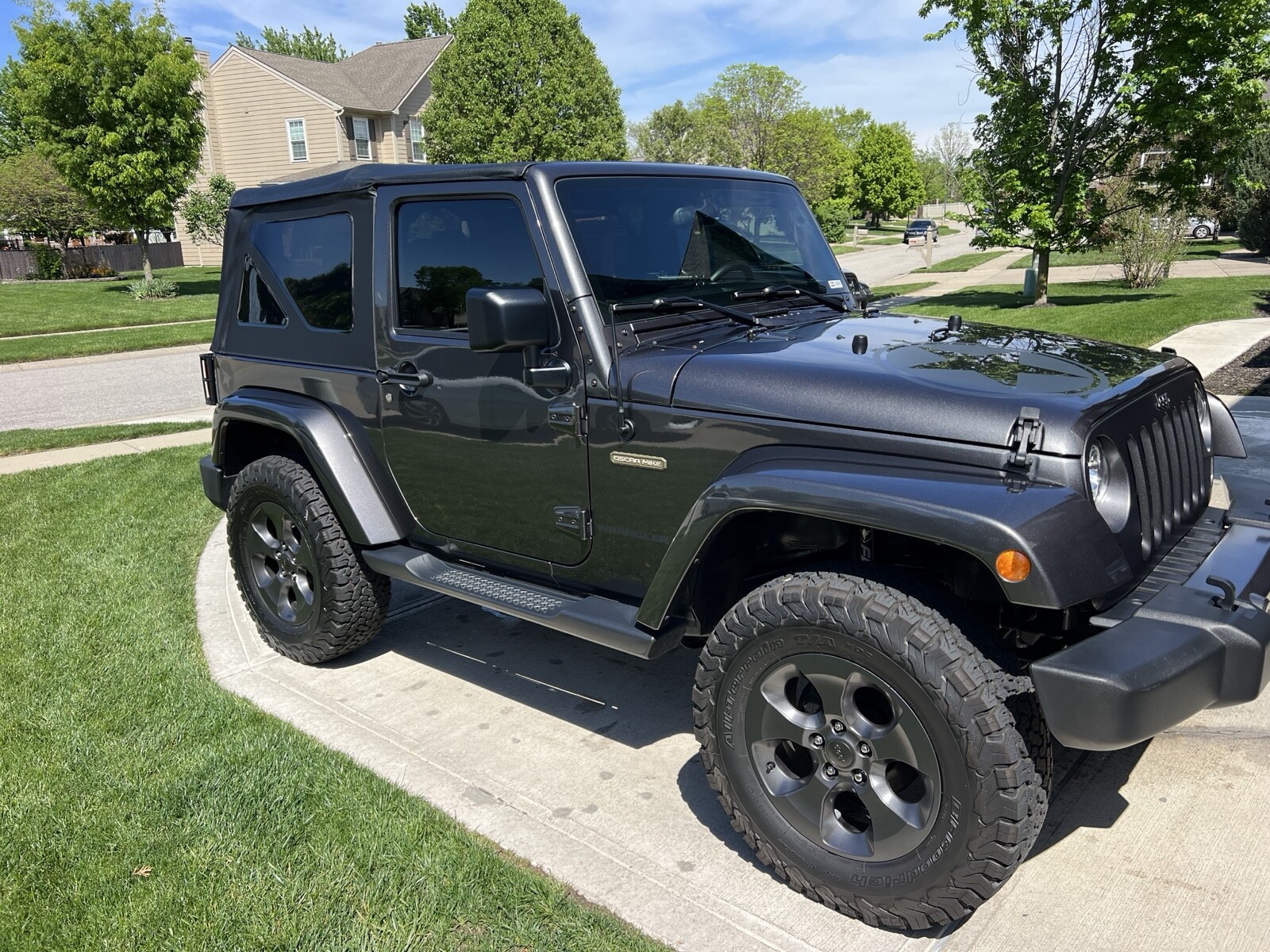 adapter,35k,automatic transmission,Dana 30 front axle,Dana 44 rear axle,with Upgraded Yucon Differential Covers.Back up camera with updated touchscreen Kenwood Stereo.Leather seats,LED headlights,Power mirrors,AC,New Spiderweb Sunshade.1.5 inch leveling kit suspension with new Rock Krawler front springs.Falcon shocks front & rear.New Battery,Newer BF Goodrich KO2 tires.Recently replaced front brake pads rotors and Calipers.Soft top is only a year old with tinted windows.Ceramic coated installed last year.Jeep needs nothing,ready to enjoy summer.Jeep is spotless inside and out.Must see in person.Located on the south east of Indianapolis.Asking $28,500.00 More pictures to come!