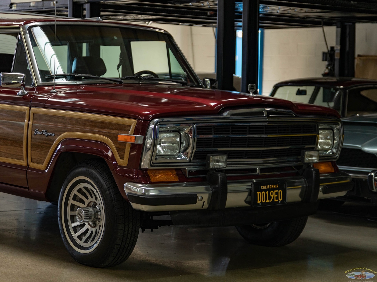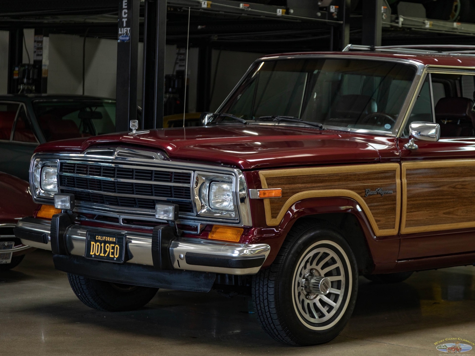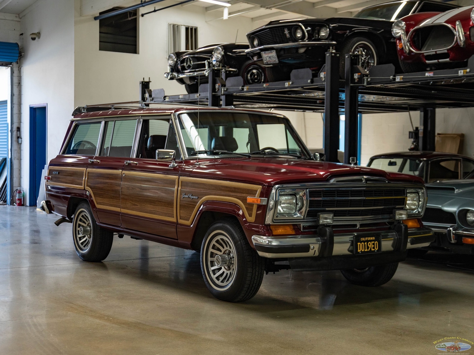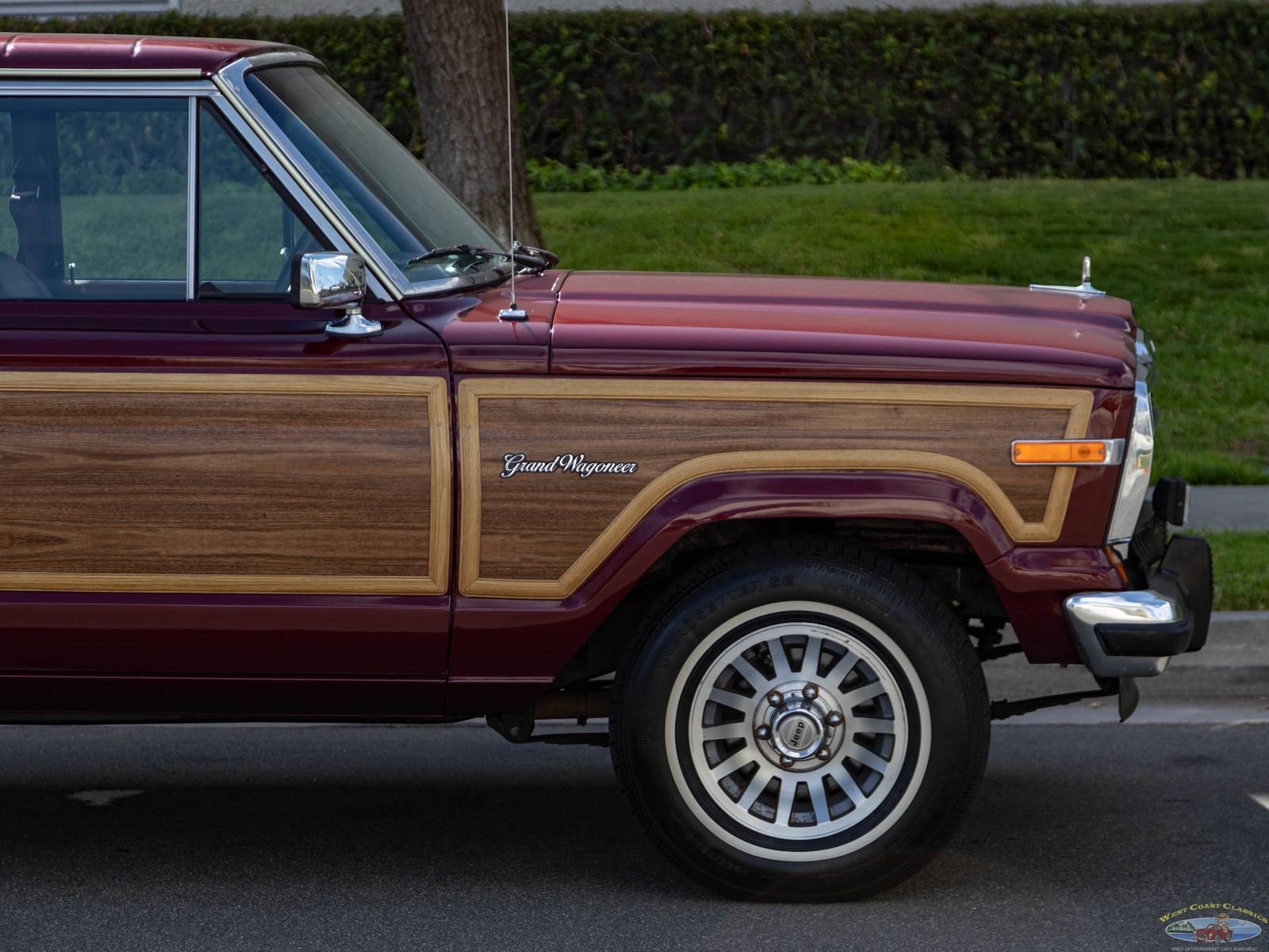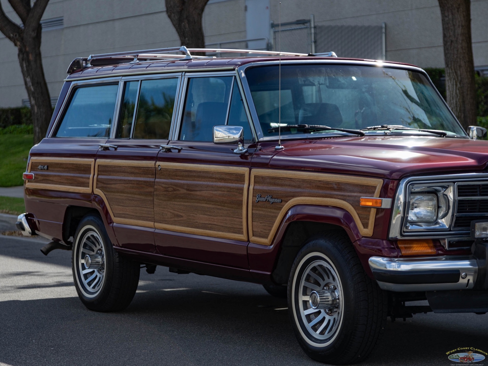 COLLECTIBLE & VERY DESIRABLE TWO OWNER 1991 JEEP GRAND WAGONEER 'FINAL EDITION' 4WD SUV WITH ONLY 71K ORIGINAL MILES!!West Coast Classics are proud to present an absolutely exceptional example of this rare and very desirable American Motors 'Final Edition' 1991 Jeep Grand Wagoneer 4WD 5.9L V8 Full Size SUV model with only 71K original miles and loaded with factory options including; including air conditioning, rear window defroster, power door locks and windows, power steering, power brakes, electric mirrors, tilt wheel, automatic transmission, 'Red' leather seats, tinted glass and power tailgate window!The Jeep Wagoneer was the first luxury 4X4 SUV, compared to its contemporaries such as the basic and utilitarian Land Rover and it only saw very minor mechanical changes throughout its 28 years plus production run, which was the longest production run in US automotive history and which was produced through several different name changes from 1963-1991. The Wagoneer was to replace the original 'Willys Jeep Station Wagon' which had been produced since 1946 and remained in production into 1965. For 1982, new luxury editions named Custom Wagoneer and Wagoneer Brougham were added, and the Wagoneer Limited was substantially upgraded with luxury equipment. Limited buyers got bucket seats with leather trim, a center armrest, and unique door panels; leather-wrapped steering wheel; extra thick carpeting; woodgrain overlay on the lower dash; wide woodgrain side and rear; roofrack; bright drip rail overlay; aluminum wheels (still 15 x 7); a tire upgrade; various moldings; standard air conditioning; power windows and locks; cruise; tilt wheel; FM stereo; the visibility group; electric remote control mirrors; bumper guards; six-way power front seats; and a rear window defogger. In 1984, the full-size Wagoneer line was consolidated into one offering and in 1987 Chrysler bought out American Motors and continued to build the Grand Wagoneer until 1991.These 1987-91 model years are considered the best of the breed due to a number of upgrades including upgraded wood sidings and modern aluminum wheels in 'Gunmetal Grey Metallic' and with two-stage base/clearcoat paint. The 1989-91 years also boasted a number of further improvements including a quality replacement for the air conditioning system, which was prone to leaks in the earlier models, an interior overhead console and compass and other welcome and general improvements in fit and finish.The end of the line came in 1991, after enjoying one of the longest production runs for any vehicle, with the powerful V8 engine and high towing capacity having proved the Grand Wagoneer to be the vehicle of choice for numerous repeat buyers. These late model Grand Wagoneers with low mileage have become a highly prized and coveted vehicle which routinely sell for more than their original sticker prices (see the renown Wagonmaster and other related cult sites for comparison pricing) more than two decades after rolling off the assembly line. In 1991 a total of only 1,560 SJ Grand Wagoneers were produced with an optional 'Final Edition Jeep Grand Wagoneer' badge on the dashboard and this particular example is one such model!This is a genuine two owner vehicle since new and is an absolutely pristine example of this fully loaded and legendary 1991 Jeep Grand Wagoneer 'Final Edition' with only 71K original miles. As previously stated these models have become highly sought after and collectible vehicles with enthusiasts around the world especially seeking out well maintained and low mileage examples of the rare 'Final Edition' like this one!As for the best way to describe the Grand Wagoneer ... large print ads in 1984 declared, Jeep Grand Wagoneer has no rival... why do you suppose its the solitary entry in the full-size, 4-wheel drive luxury wagon class?""The vehicle was always garage kept, by its original owners in Reno, Nevada from whom we purchased the vehicle in the year 2015 with 53,889 original miles and consequently sold to only its second, and now previous owners, in Newport Beach, CA. The vehicle is still virtually as new, there have been no accidents, & the vehicle has never been off road! The vehicle was originally always primarily dealer serviced at 'Land Rover' of Reno, NV and the car has a clean CARFAX report both confirming its ownership and mileage.The original and quite stunning 'Colorado Red' color paint with wood sidings is in excellent condition and the luxurious leather interior is also quite stunning and as new with beautiful original matching Red color leather front and rear seats with virtually no signs of any wear and all the power options and gauges are working as they should including the ice-cold A/C.This well maintained and low original 71K miles highly desirable 1991 'Final Edition' Jeep Grand Wagoneer 4WD 5.9L V8 SUV runs as if still brand new, the transmission shifts smoothly through all the gears, there are no oil leaks and the temperature always remains cool - drives exactly like such a well kept and maintained vehicle with such low miles should! You will surely look long and hard to find a finer or nicer driving and looking example of this legendary full size Jeep Grand Wagoneer, owned by only two very careful and mature non-smoking owners since new!