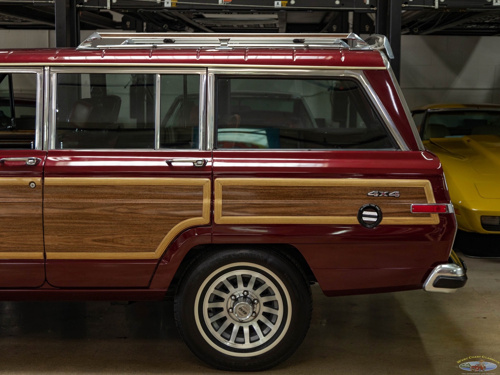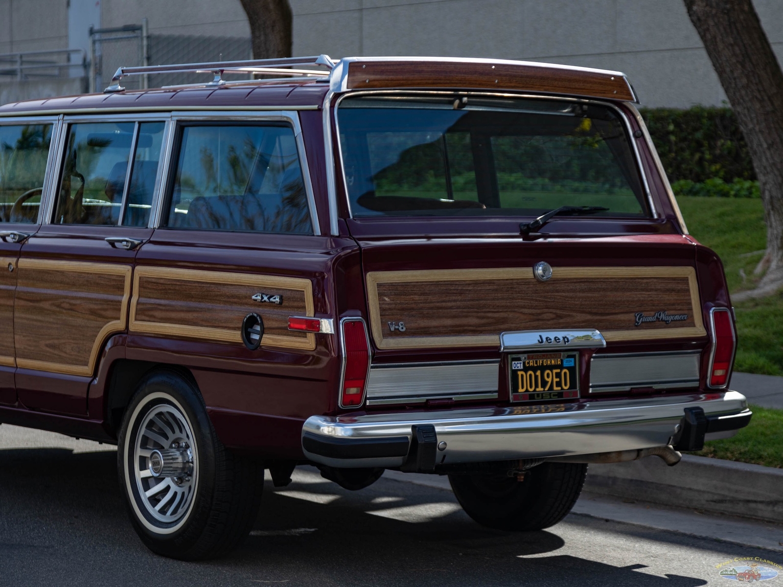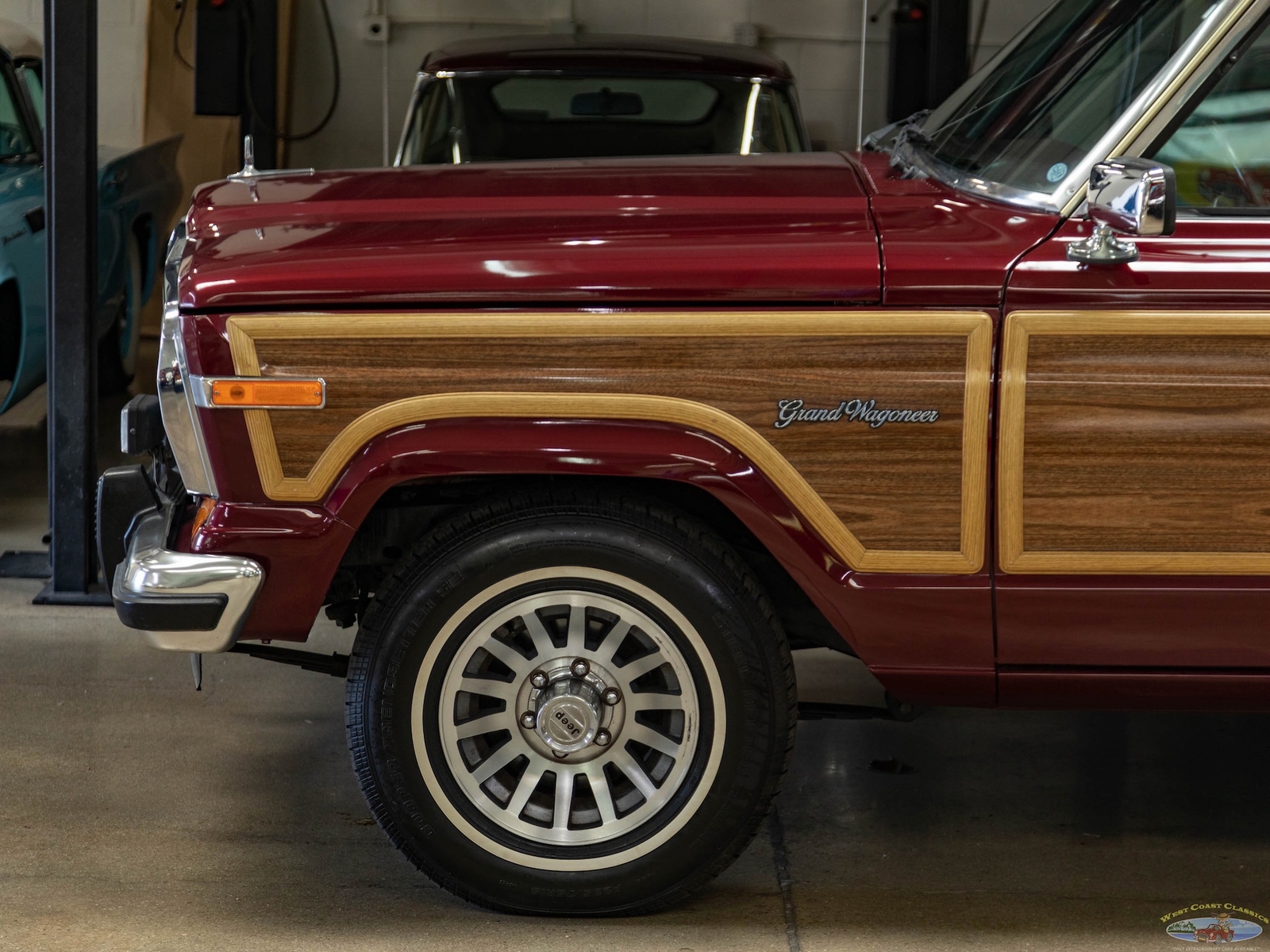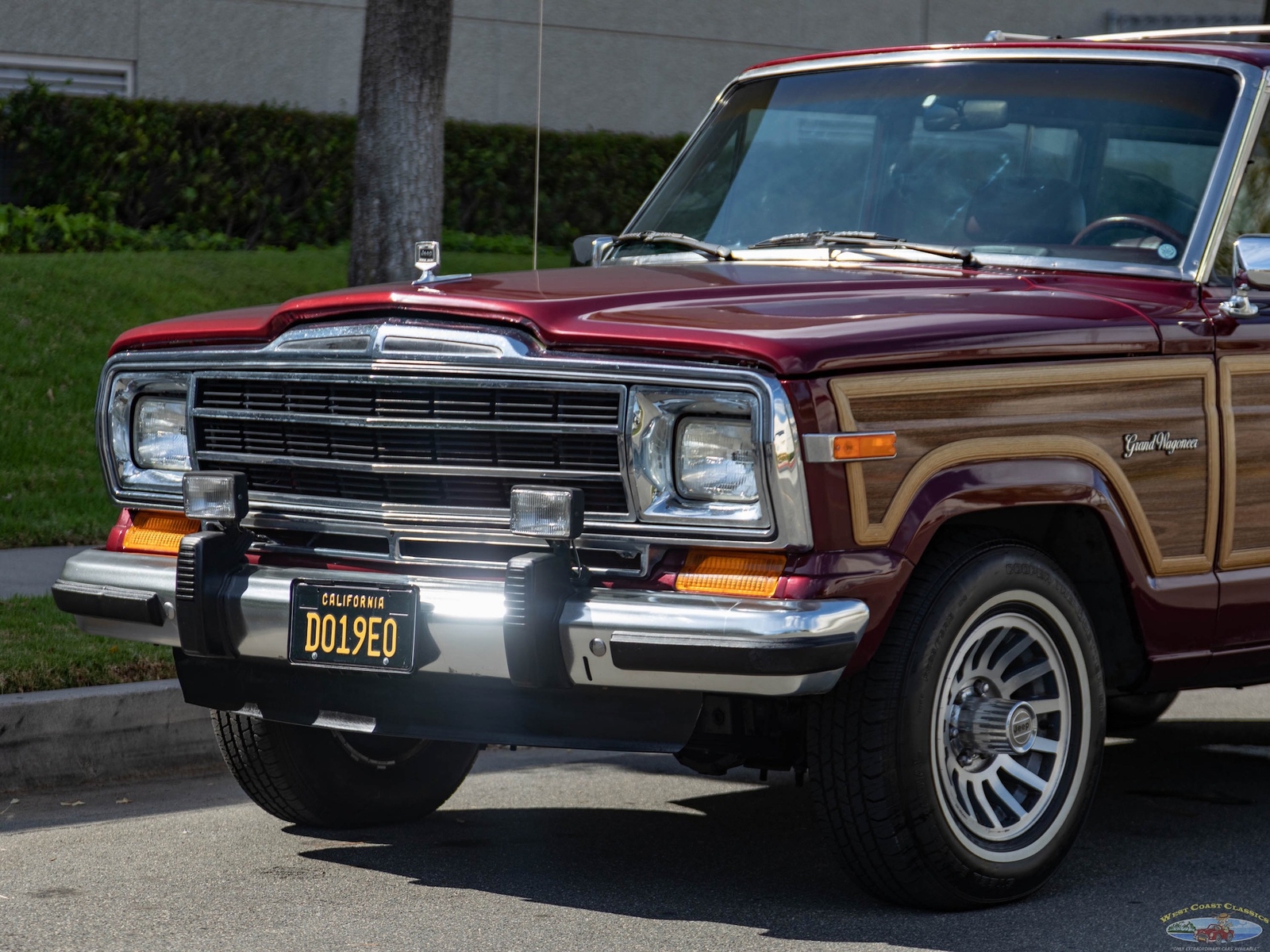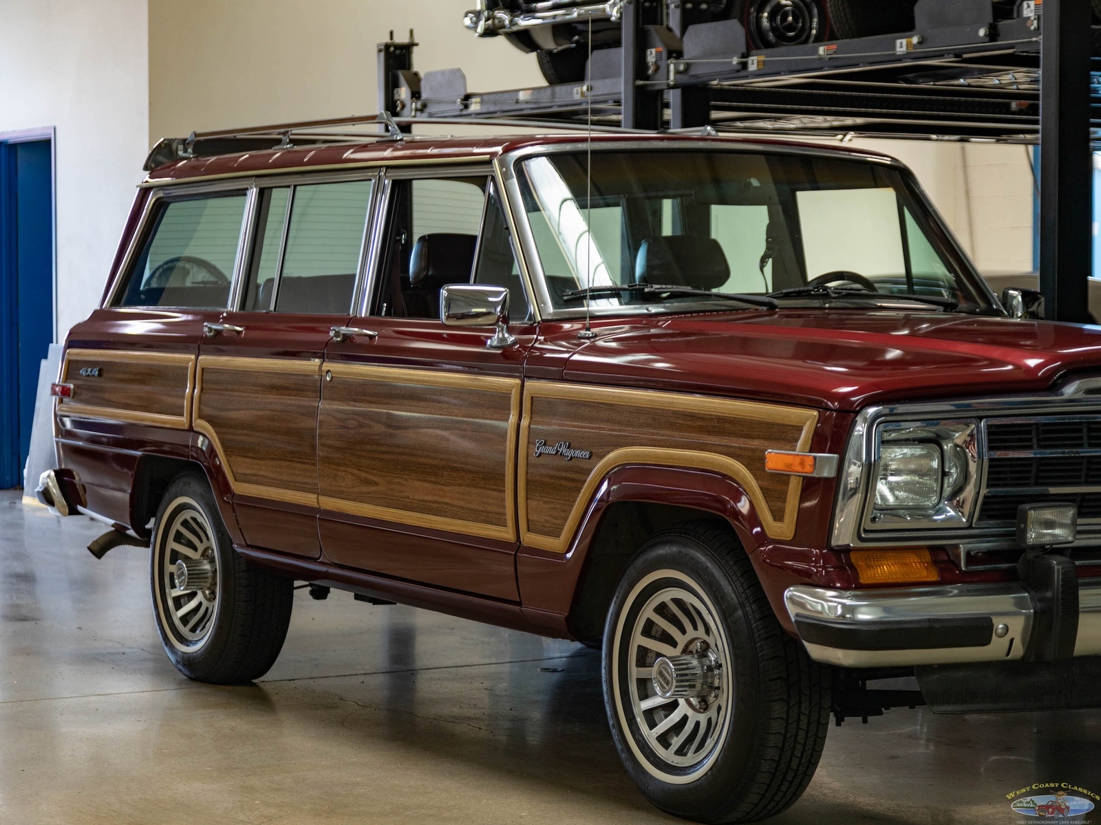 COLLECTIBLE & VERY DESIRABLE TWO OWNER 1991 JEEP GRAND WAGONEER 'FINAL EDITION' 4WD SUV WITH ONLY 71K ORIGINAL MILES!!West Coast Classics are proud to present an absolutely exceptional example of this rare and very desirable American Motors 'Final Edition' 1991 Jeep Grand Wagoneer 4WD 5.9L V8 Full Size SUV model with only 71K original miles and loaded with factory options including; including air conditioning, rear window defroster, power door locks and windows, power steering, power brakes, electric mirrors, tilt wheel, automatic transmission, 'Red' leather seats, tinted glass and power tailgate window!The Jeep Wagoneer was the first luxury 4X4 SUV, compared to its contemporaries such as the basic and utilitarian Land Rover and it only saw very minor mechanical changes throughout its 28 years plus production run, which was the longest production run in US automotive history and which was produced through several different name changes from 1963-1991. The Wagoneer was to replace the original 'Willys Jeep Station Wagon' which had been produced since 1946 and remained in production into 1965. For 1982, new luxury editions named Custom Wagoneer and Wagoneer Brougham were added, and the Wagoneer Limited was substantially upgraded with luxury equipment. Limited buyers got bucket seats with leather trim, a center armrest, and unique door panels; leather-wrapped steering wheel; extra thick carpeting; woodgrain overlay on the lower dash; wide woodgrain side and rear; roofrack; bright drip rail overlay; aluminum wheels (still 15 x 7); a tire upgrade; various moldings; standard air conditioning; power windows and locks; cruise; tilt wheel; FM stereo; the visibility group; electric remote control mirrors; bumper guards; six-way power front seats; and a rear window defogger. In 1984, the full-size Wagoneer line was consolidated into one offering and in 1987 Chrysler bought out American Motors and continued to build the Grand Wagoneer until 1991.These 1987-91 model years are considered the best of the breed due to a number of upgrades including upgraded wood sidings and modern aluminum wheels in 'Gunmetal Grey Metallic' and with two-stage base/clearcoat paint. The 1989-91 years also boasted a number of further improvements including a quality replacement for the air conditioning system, which was prone to leaks in the earlier models, an interior overhead console and compass and other welcome and general improvements in fit and finish.The end of the line came in 1991, after enjoying one of the longest production runs for any vehicle, with the powerful V8 engine and high towing capacity having proved the Grand Wagoneer to be the vehicle of choice for numerous repeat buyers. These late model Grand Wagoneers with low mileage have become a highly prized and coveted vehicle which routinely sell for more than their original sticker prices (see the renown Wagonmaster and other related cult sites for comparison pricing) more than two decades after rolling off the assembly line. In 1991 a total of only 1,560 SJ Grand Wagoneers were produced with an optional 'Final Edition Jeep Grand Wagoneer' badge on the dashboard and this particular example is one such model!This is a genuine two owner vehicle since new and is an absolutely pristine example of this fully loaded and legendary 1991 Jeep Grand Wagoneer 'Final Edition' with only 71K original miles. As previously stated these models have become highly sought after and collectible vehicles with enthusiasts around the world especially seeking out well maintained and low mileage examples of the rare 'Final Edition' like this one!As for the best way to describe the Grand Wagoneer ... large print ads in 1984 declared, Jeep Grand Wagoneer has no rival... why do you suppose its the solitary entry in the full-size, 4-wheel drive luxury wagon class?""The vehicle was always garage kept, by its original owners in Reno, Nevada from whom we purchased the vehicle in the year 2015 with 53,889 original miles and consequently sold to only its second, and now previous owners, in Newport Beach, CA. The vehicle is still virtually as new, there have been no accidents, & the vehicle has never been off road! The vehicle was originally always primarily dealer serviced at 'Land Rover' of Reno, NV and the car has a clean CARFAX report both confirming its ownership and mileage.The original and quite stunning 'Colorado Red' color paint with wood sidings is in excellent condition and the luxurious leather interior is also quite stunning and as new with beautiful original matching Red color leather front and rear seats with virtually no signs of any wear and all the power options and gauges are working as they should including the ice-cold A/C.This well maintained and low original 71K miles highly desirable 1991 'Final Edition' Jeep Grand Wagoneer 4WD 5.9L V8 SUV runs as if still brand new, the transmission shifts smoothly through all the gears, there are no oil leaks and the temperature always remains cool - drives exactly like such a well kept and maintained vehicle with such low miles should! You will surely look long and hard to find a finer or nicer driving and looking example of this legendary full size Jeep Grand Wagoneer, owned by only two very careful and mature non-smoking owners since new!